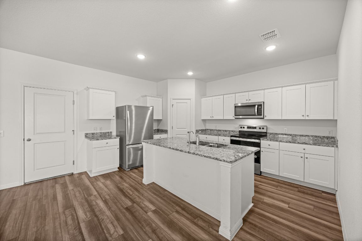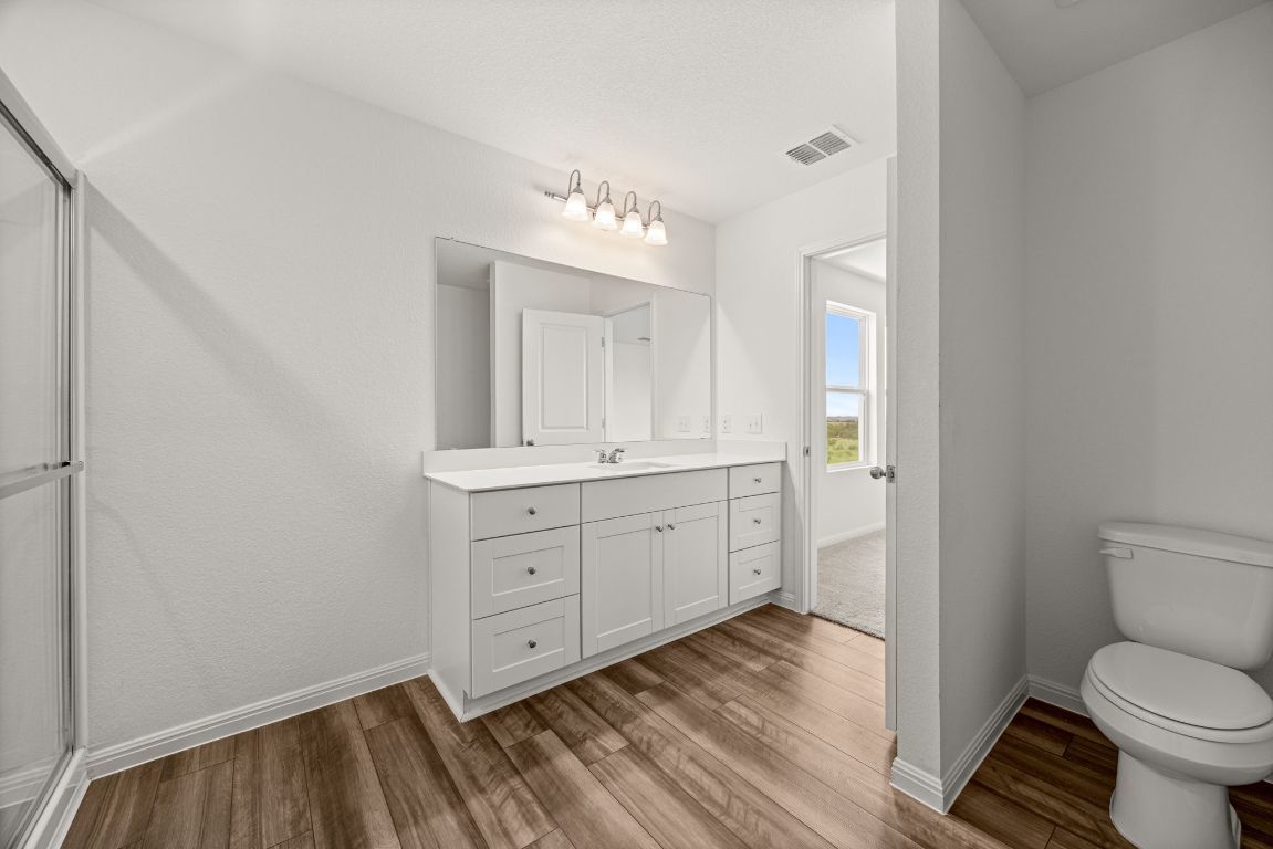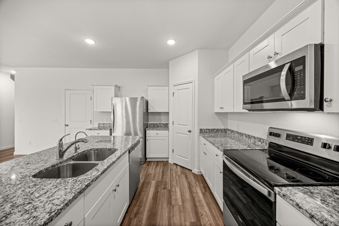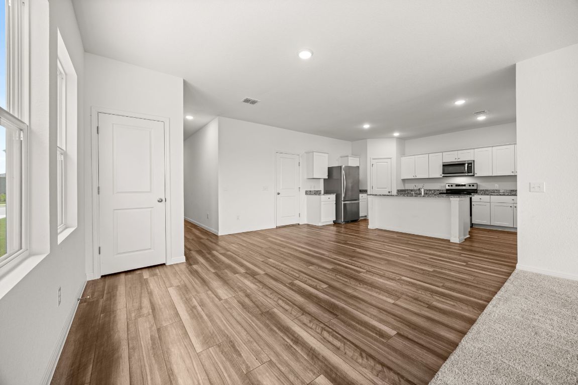 Immaculate home! Like new construction built in 2024 near the end of a no-outlet street with plateau views behind the home of a 79-acre ranch. This five bedroom home includes a full guest suite on the main level, perfect for those who can't climb stairs. A white kitchen with tasteful granite countertops is the centerpiece of the home and is open to the living and dining areas. A large living room overlooks the backyard and lets in an abundance of natural light. Head upstairs to find 4 more bedrooms, including the primary suite, plus a generous loft for extracurricular space. The laundry room is upstairs as well and features a washer and dryer that convey. Come see this pristine property in Cottonwood Farms, conveniently located off Limmer Loop for easy access in and out of Hutto.