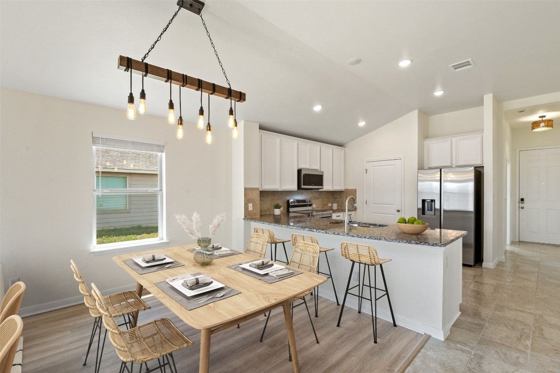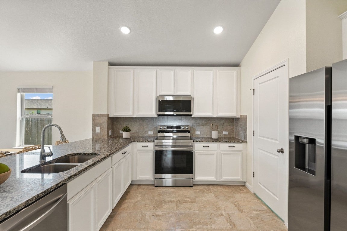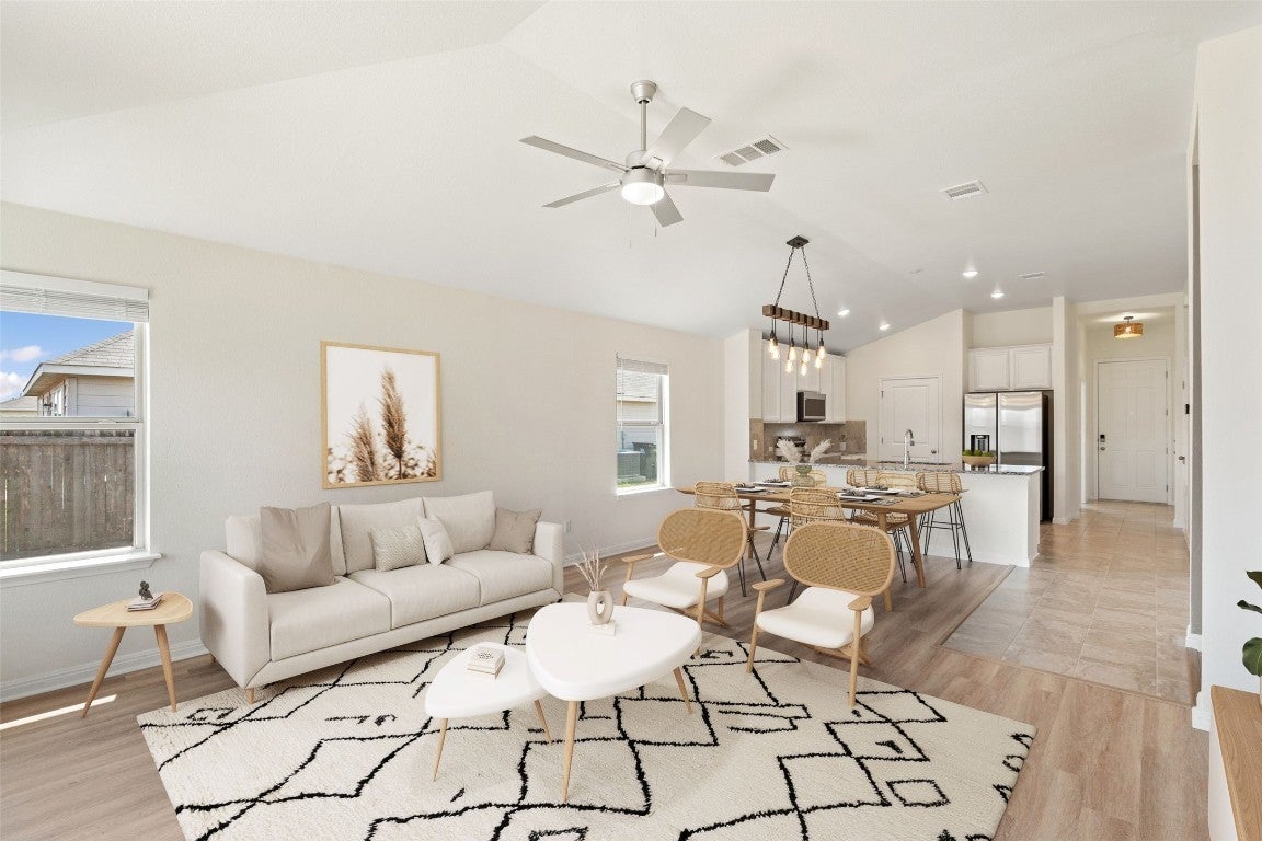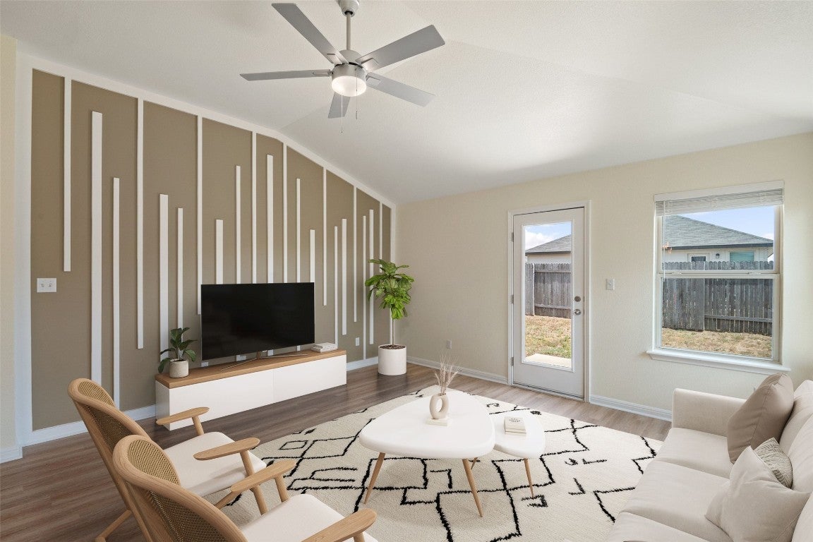 **This property qualifies for UP TO $17,500 in down payment and closing costs grants, see documents or ask agent for details.** Come experience this beautifully designed move-in ready home located in the desirable Woodlands Park community of Kyle, Texas. Situated on an oversized lot, this single story 4 bed/2 bath home boasts luxurious finishes & modern conveniences. As you enter, you are immediately drawn to the spacious open floor plan and abundant natural light that seamlessly connects the kitchen, dining and living areas. The layout provides the perfect blend of comfort and ample space for relaxation. Features of the home include brand new luxury vinyl plank flooring, recessed lighting, custom accent wall + board and batten entry, fresh interior paint, spray foam insulation and much more. The gourmet kitchen- a true focal point of the home, comes equipped with granite countertops, large peninsula breakfast bar, resurfaced cabinets, updated hardware, and brand new SS appliances. The spacious primary suite provides a relaxing retreat with high ceilings, a walk-in closet, ensuite bathroom featuring quartz countertops and a walk-in shower. Enjoy the private oversized backyard with plenty of space for outdoor activities, gardening, entertaining or simply unwinding in the fresh air. The home is ideally situated within walking distance to the community pool & playground and minutes away from downtown Kyle, HEB Plus, restaurants, shopping, I-35 & more. Don't miss the opportunity to make this exceptional property your own!