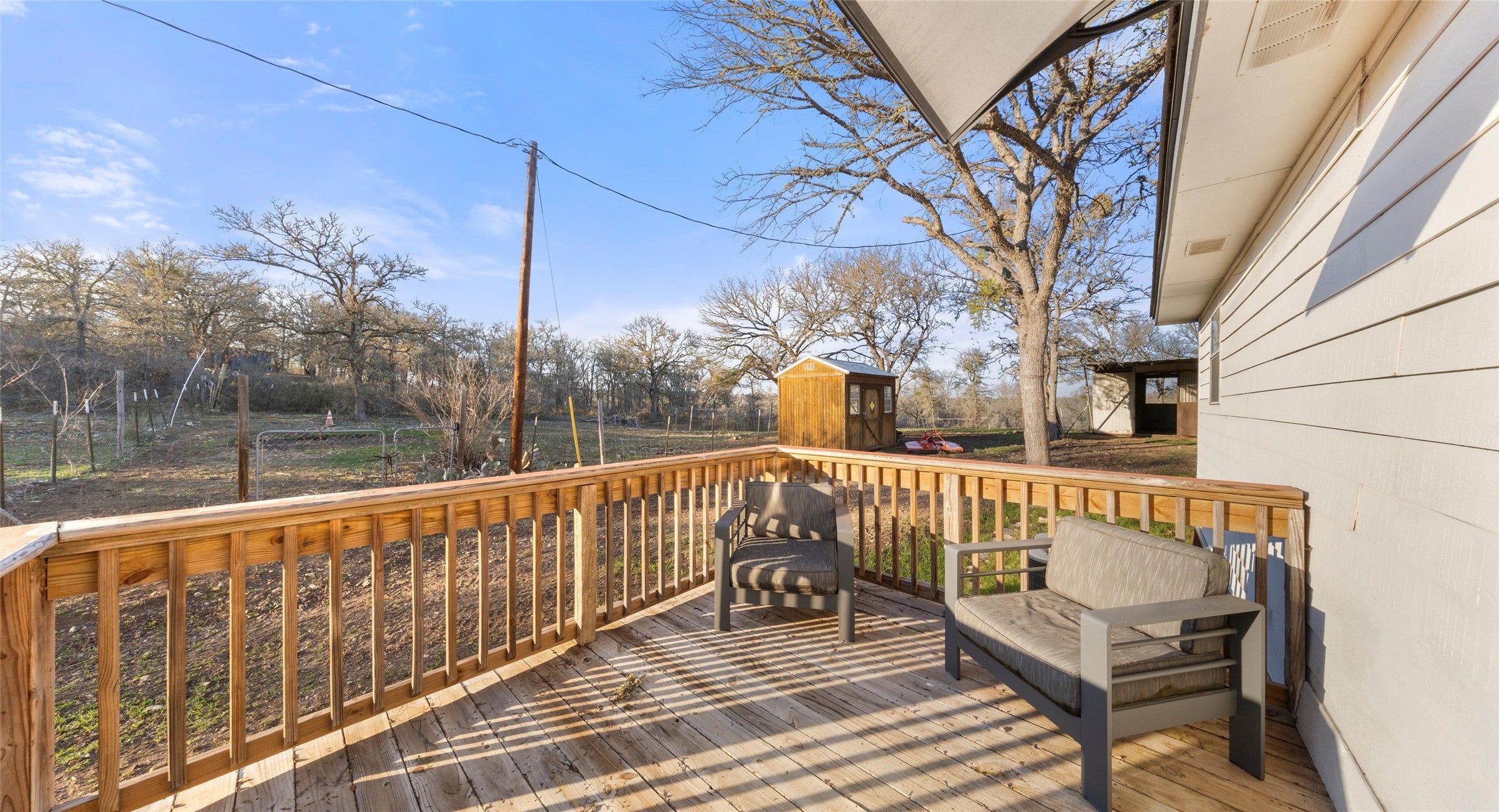 Set on a gentle rise across 4.5 acres, this Elgin property offers privacy, open skies, and space that’s increasingly hard to find. The land sits slightly higher than the surrounding area, with large neighboring tracts that create a true sense of separation and no close neighbors in sight, just room to breathe. The views offer regular sightings of local wildlife that make the setting feel peaceful and alive. The home is a thoughtfully laid out 3 bedroom, 2 bath residence with 1,048 square feet that lives efficiently and comfortably. Natural light fills the interior, while the surrounding landscape becomes part of the everyday experience. Designed with functionality in mind, the property includes an oversized two-horse barn with power and water hookup capability. The fully fenced property is thoughtfully divided into three distinct sections: a smaller enclosed area well suited for dogs, goats, or hobby livestock; a central homestead area with the residence, oversized garage, two-horse barn, and additional shed; and a separate fenced grazing paddock previously used for horses. The layout offers excellent flexibility for rotational grazing, gardens, or future expansion. The oversized detached three-car garage added in 2024 provides ample space for vehicles, equipment, tack, or a workshop setup. Located approximately 20 minutes from downtown Bastrop and about 40 minutes from Austin, this property offers a rare balance of privacy, land, and accessibility. Whether your vision includes horses, other animals, or simply wide-open space with long-term flexibility, this is a setting that supports it all.