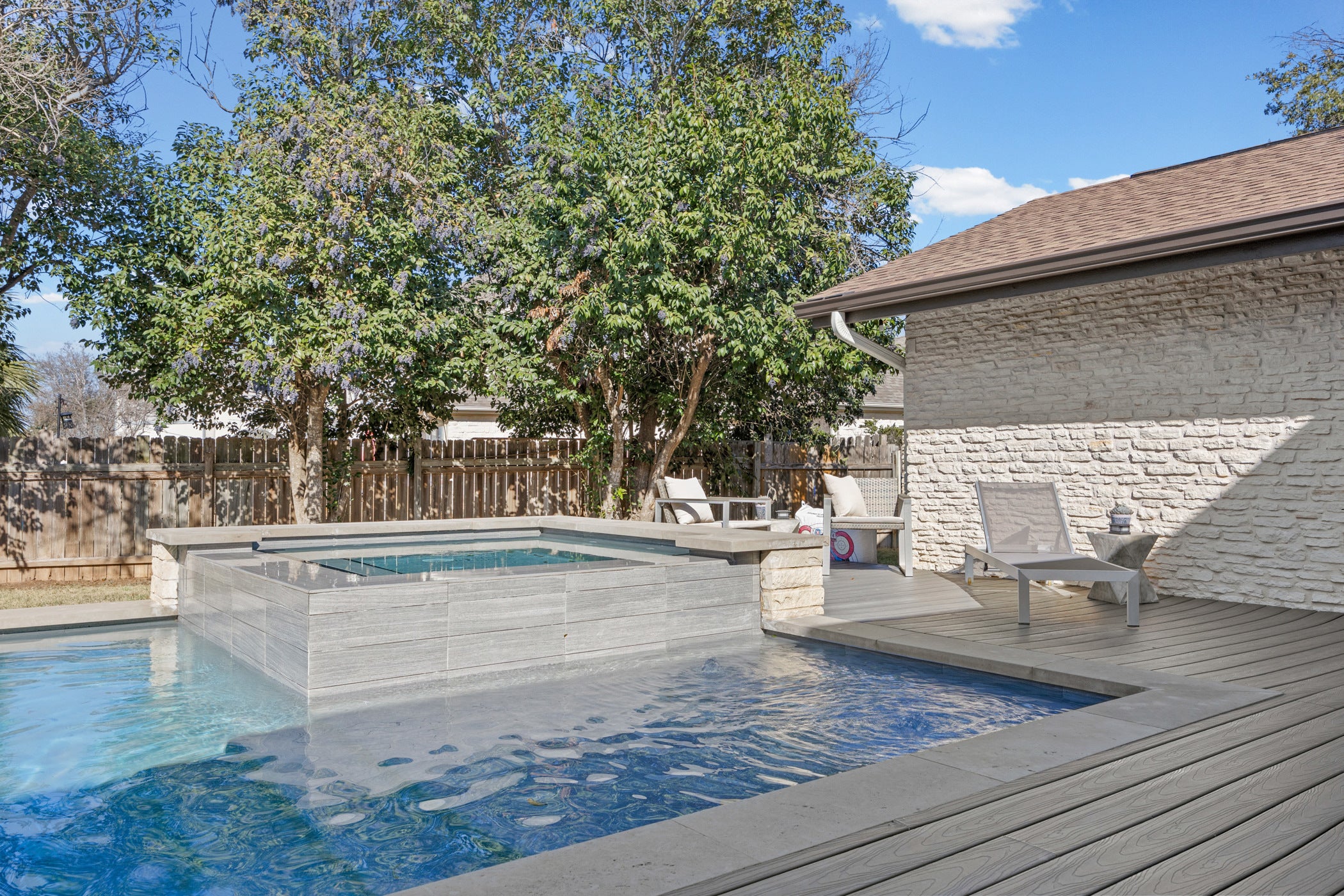 Welcome home! Stunning old Lakeway residence nestled in a quiet cul-de-sac. This home has it all and more. From the welcoming private courtyard entrance to the soaring ceilings, it's sure to impress. Primary Suite is located on the first floor along with the guest suite/ in law suite with no stairs! Office/nursery also located on the first floor. Upstairs you will find 2 other large bedrooms that share a hall bath, as well as a playroom/den with additional closet/storage attached. (could easily be a 5th bedroom) There is also a huge, private, covered, outdoor patio located upstairs. The backyard is an oasis with a modern heated pool and spa, with expansive low maintenance decking. There is still plenty of room for playscape! The garage is located around the back providing privacy and extended driveway parking. Bring your agents and your offers! This one won't last!