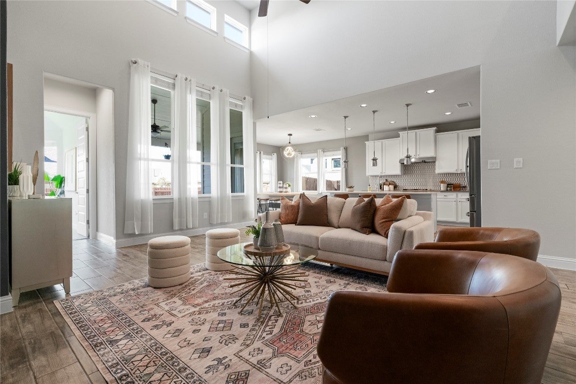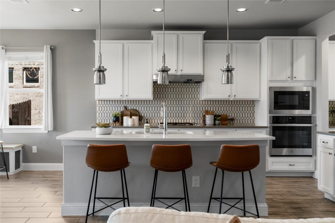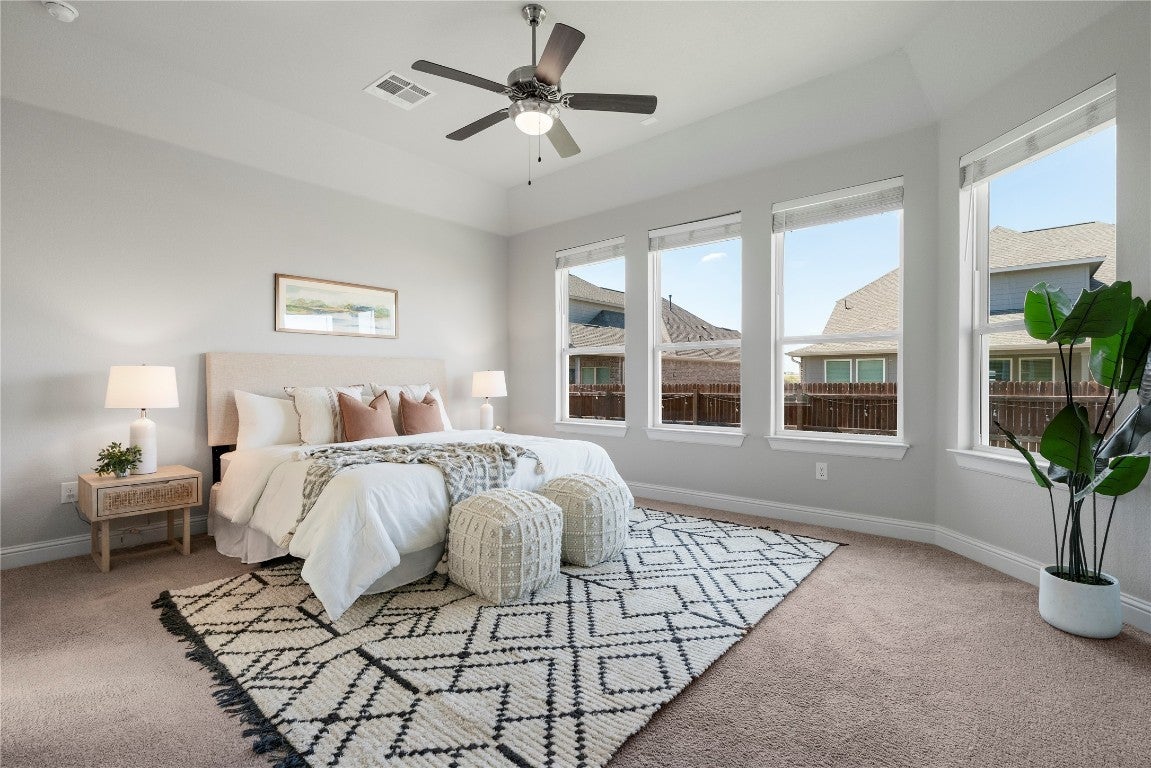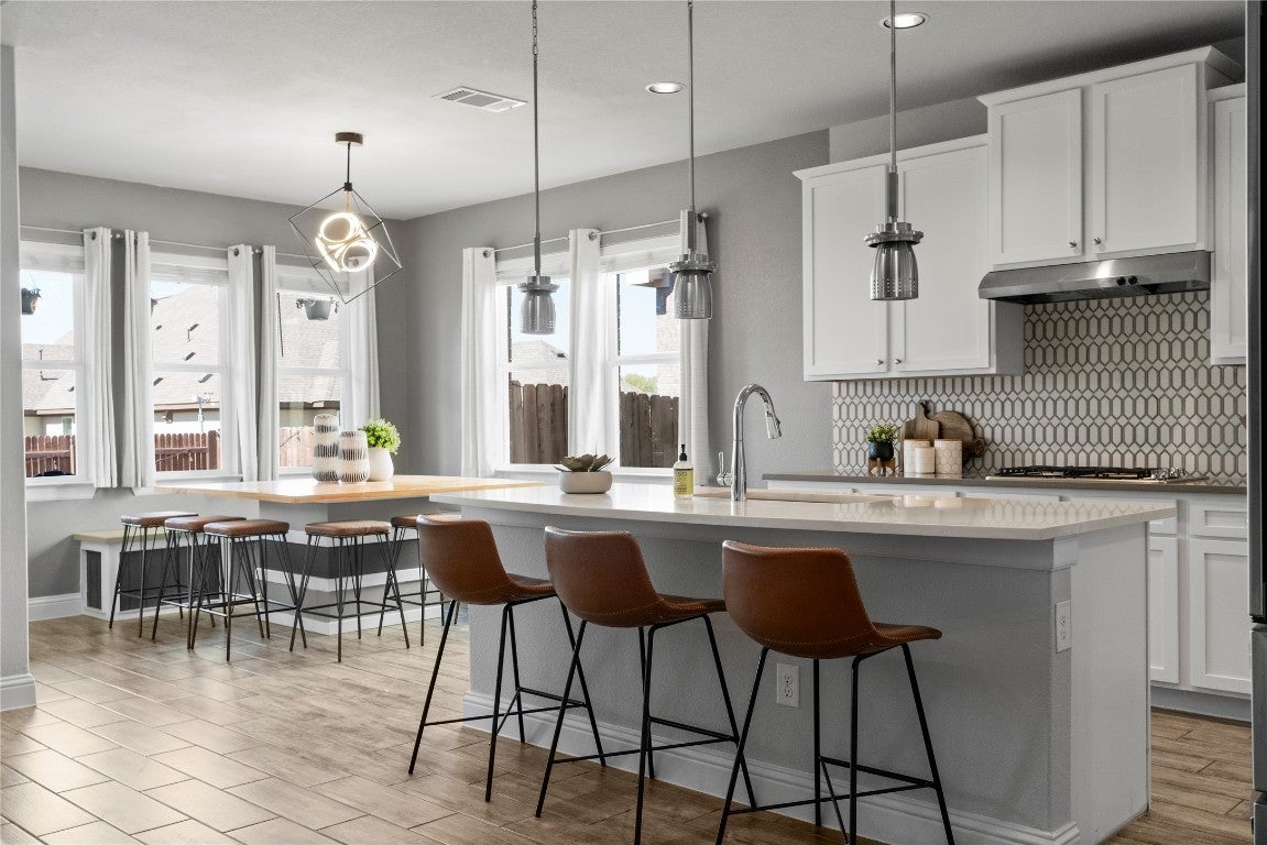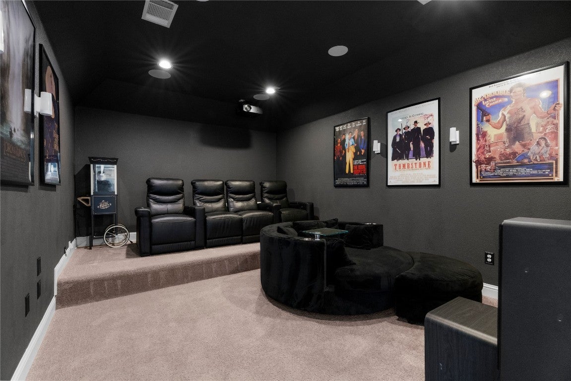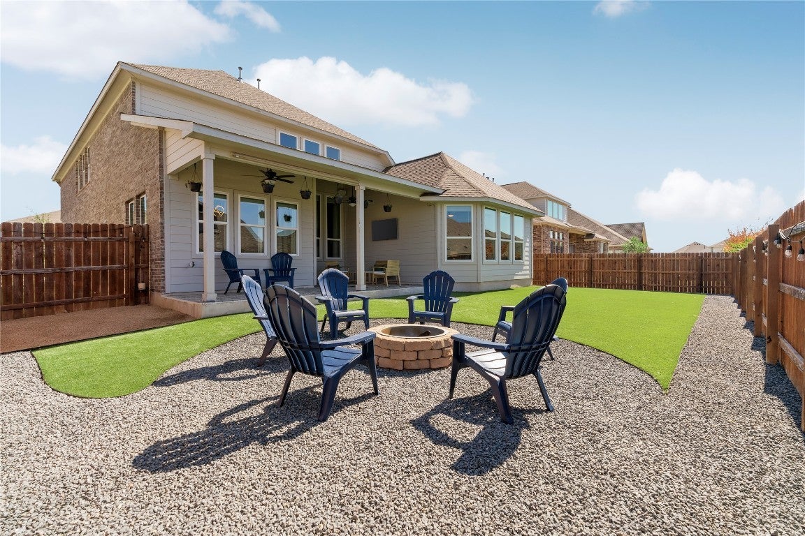 Assumable VA Loan at 3.25%. In the heart of Carmel West, this 5-bedroom, 4-bath home pairs generous spaces with flexible areas that work just as well for busy weekdays as they do for weekend gatherings. A three-car garage provides plenty of room for parking, storage, or even a workshop. Step inside to an open, light-filled layout with soaring two-story ceilings and a bold accent wall creating a striking focal point. The kitchen features quartz countertops, a decorative backsplash, an oversized island, and a butler’s pantry. A built-in dining nook with bench seating and a custom table for ten is perfect for family meals or entertaining, all opening to a covered patio with space to relax by the fire pit. The thoughtful floor plan offers true multigenerational living, with both the primary suite and an additional bedroom and full bath on the main floor. The primary suite includes a spa-like ensuite and custom walk-in closet, while the secondary bedroom provides flexibility for guests or extended family. A private office and formal dining room complete the main level. Upstairs, a large game room and a cinema-style media room with projector and tiered seating create the perfect setup for movie nights and fun with friends. Three more bedrooms and two full baths round out the upper floor. Outside, the backyard is designed for easy enjoyment with lush, low-maintenance turf, xeriscaping, and a cozy fire pit area for evenings under the stars. Schools are within walking distance, the neighborhood park and pool are just over a mile away, and Lake Pflugerville is minutes down the road. With quick access to TX-130, getting around the metro area or into Downtown Austin is effortless. From its versatile layout to its easy-care outdoor living, this home blends comfort, convenience, and style in one perfect package. Buyer to verify all information.