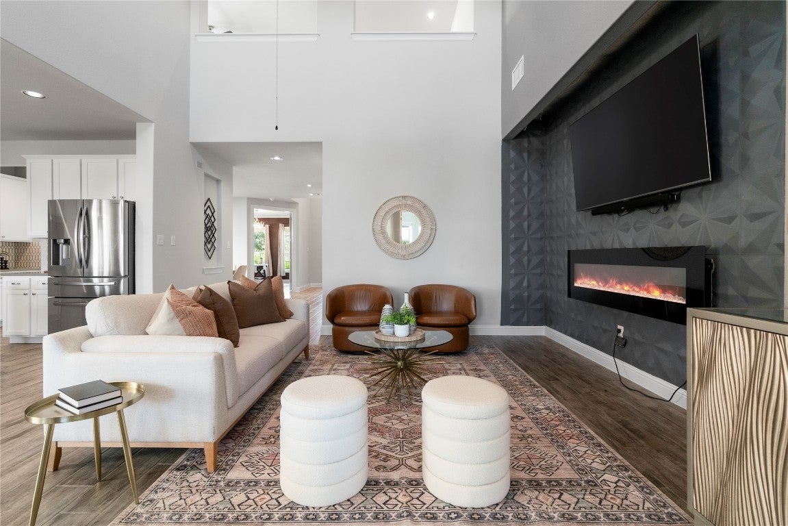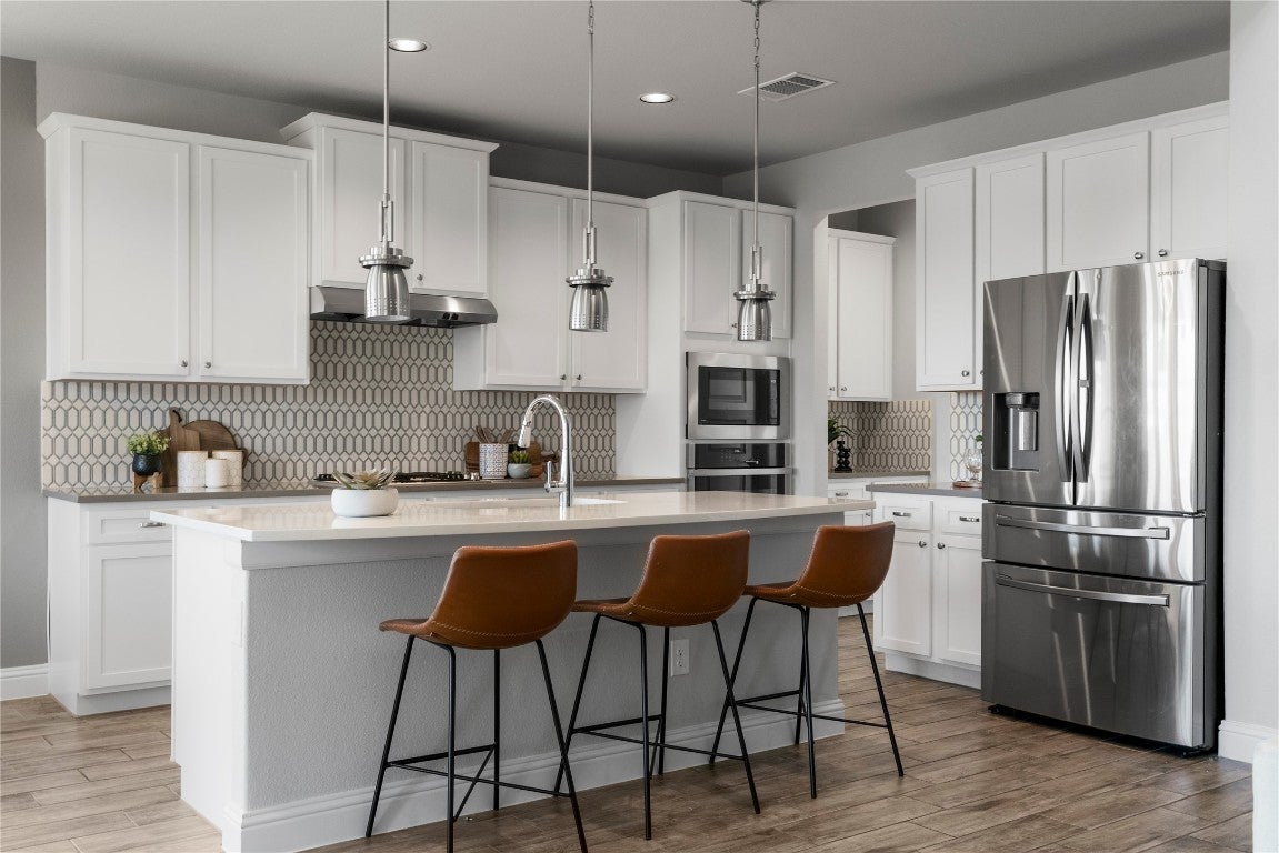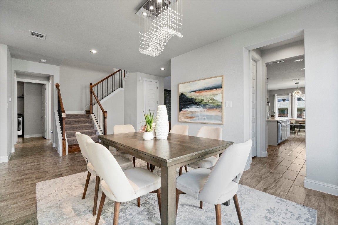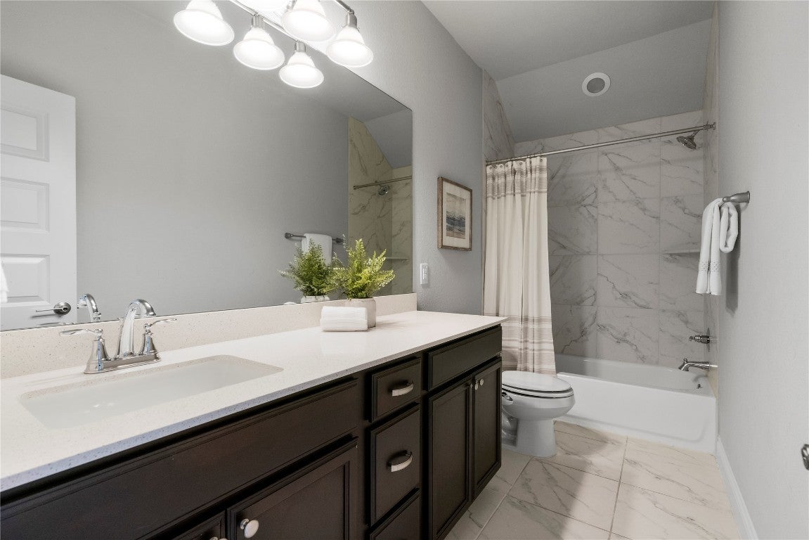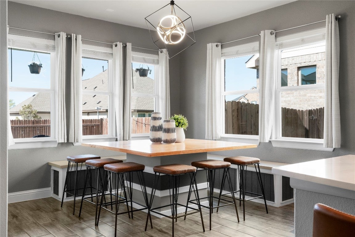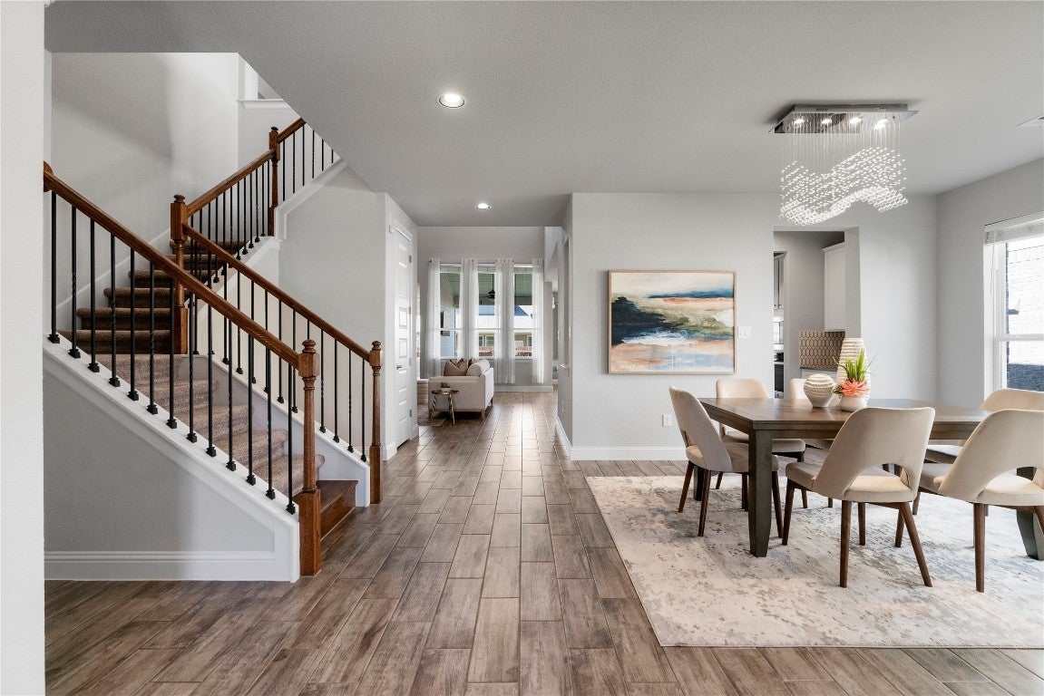 Assumable VA Loan at 3.25%. In the heart of Carmel West, this 5-bedroom, 4-bath home pairs generous spaces with flexible areas that work just as well for busy weekdays as they do for weekend gatherings. A three-car garage provides plenty of room for parking, storage, or even a workshop. Step inside to an open, light-filled layout with soaring two-story ceilings and a bold accent wall creating a striking focal point. The kitchen features quartz countertops, a decorative backsplash, an oversized island, and a butler’s pantry. A built-in dining nook with bench seating and a custom table for ten is perfect for family meals or entertaining, all opening to a covered patio with space to relax by the fire pit. The thoughtful floor plan offers true multigenerational living, with both the primary suite and an additional bedroom and full bath on the main floor. The primary suite includes a spa-like ensuite and custom walk-in closet, while the secondary bedroom provides flexibility for guests or extended family. A private office and formal dining room complete the main level. Upstairs, a large game room and a cinema-style media room with projector and tiered seating create the perfect setup for movie nights and fun with friends. Three more bedrooms and two full baths round out the upper floor. Outside, the backyard is designed for easy enjoyment with lush, low-maintenance turf, xeriscaping, and a cozy fire pit area for evenings under the stars. Schools are within walking distance, the neighborhood park and pool are just over a mile away, and Lake Pflugerville is minutes down the road. With quick access to TX-130, getting around the metro area or into Downtown Austin is effortless. From its versatile layout to its easy-care outdoor living, this home blends comfort, convenience, and style in one perfect package. Buyer to verify all information.