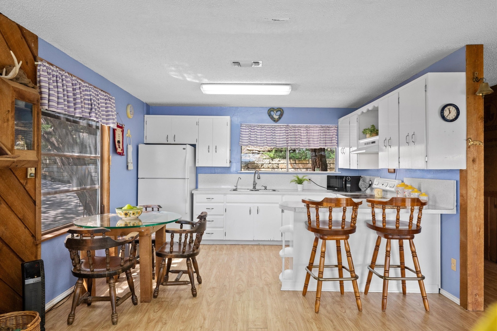 Welcome to 20926 W Lakeshore Dr., a short drive from Austin but a long way from city life. This deep-side water-front property promises you are never more than a few steps from Lake Travis, even when other properties are left high and dry. The rustic and cozy home offers beautiful views of the lake from two decks, as well as from the living room, dining room, and upstairs bedroom. A second bedroom, modest bathroom, and spacious kitchen provide everything you need for your relaxing getaway. A wood-burning stove adds warmth on those cold hill-country winter evenings, and a water-filtration system ensures a reliable source of pure water for drinking and bathing. A detached 2-car garage with extra storage in the rafters, and a single-slip boat dock with a roof-top deck, complete this unique and engaging property. A GREAT WORKING BOAT HOUSE AND DOCK CONVEY WITH THE PROPERTY! If you are looking for luxury and upscale amenities, this property is not for you; but if you value character, charm, and convenient lake access, you need look no more. This home has provided the owner’s family with 40+ years of cherished memories. Begin creating your own memories and make this peaceful sanctuary yours today.