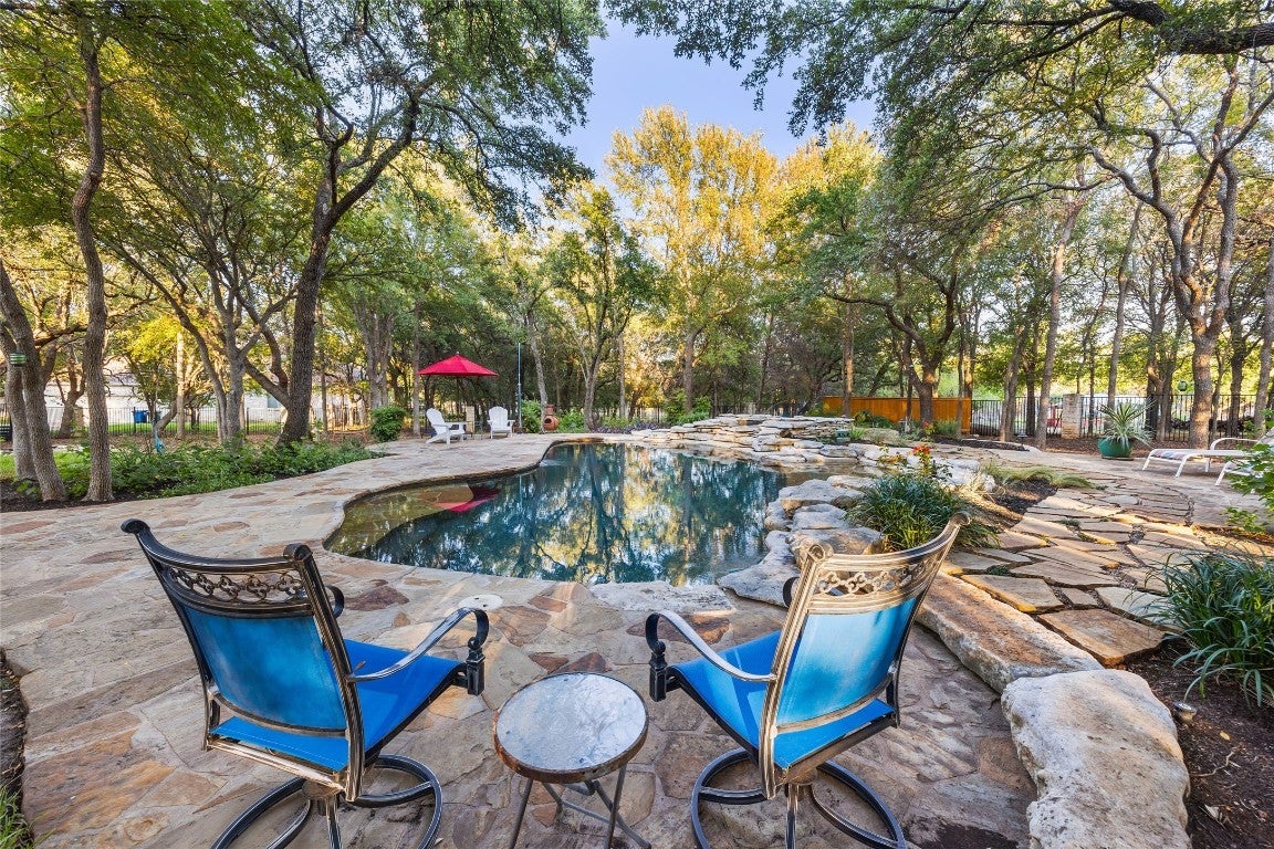 Experience the ultimate private retreat in this stunning, turn-key estate, perfectly situated on 1.4 serene acres. This home offers a beautiful balance of modern efficiency and classic high-quality design. Enjoy total peace of mind with major recent updates, including a new roof, new AC units, a new water heater, and a whole-home reverse osmosis system. Inside, beautiful wood floors flow throughout the elegant, open-concept layout. The floorplan is thoughtfully designed for privacy: the spacious primary suite is separated from the three secondary bedrooms, which are located on the opposite side of the house. You also gain essential functionality with a dedicated private office space. The gourmet kitchen is a chef's dream, featuring a high-end Wolf gas range and a custom wood breakfast bar, ideal for entertaining near the formal dining room. The generous flex space provides excellent customization, perfect as a library, media room, second living area, or game room. Outside is a lovely entertainer's space: a sparkling saltwater pool and spa surrounded by lush, secluded landscaping. Complete with a three-car garage, this home delivers the ultimate combination of privacy, quality features, and worry-free living. Welcome home! ***Mortgage savings may be available for buyers of this listing. Inquire with listing agent for details.***