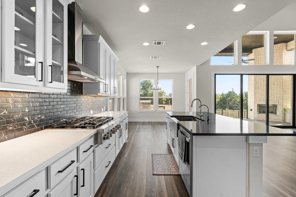 Welcome to this exquisite, newly built home that masterfully combines modern luxury with everyday comfort, located on a private cul-de-sac. Thoughtfully designed, it features a contemporary open-concept layout that enhances the spaciousness and flow, perfect for entertaining or daily living. At the heart of the home is a stunning kitchen with commercial-grade stainless steel appliances, custom designer cabinetry, a large center island, and quartz countertops, all opening to the bright main living area. The expansive outdoor living space is seamlessly integrated with the indoors through a three-panel sliding glass door, offering a beautiful fireplace and built-in kitchen, perfect for year-round gatherings. This sought-after floor plan boasts 5 bedrooms, 4 full bathrooms, a dedicated media room, a main-level office, and a generous game/family room. With over $100K in upgrades, this home checks every box! You won’t want to miss out on this exceptional home that offers endless upgrades on a large lot. Plus, the impressive 4-car garage provides plenty of room for vehicles, workshop projects, and extra storage.