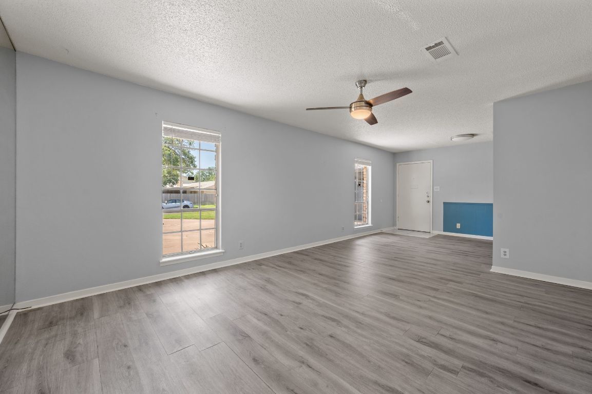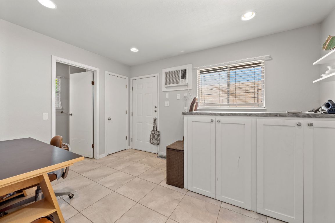 Don't miss this clean and ready duplex, located in the heart of 183 and Burnet Rd. with easy access to MOPAC and 360 & lots of restaurants and shopping nearby. This duplex offers 3 bedrooms, 2 1/2 baths, in side A. Tile floors in the large living, dining & kitchen areas & recessed lighting. The kitchen features Quartz countertops, gas cooktop, microwave & garbage disposal(2024) refrigerator w/ice maker, and white cabinets. Large utility room with room for a desk or folding table. Side B has wood-look grey laminate floors throughout. Recent dishwasher, Carrier HVAC in March 2025. Each unit has a 1 car garage with multiple extra parking. Roof shingles were installed in 2024. 9ft. Concrete cinder-block wall for privacy for both backyard patio's.