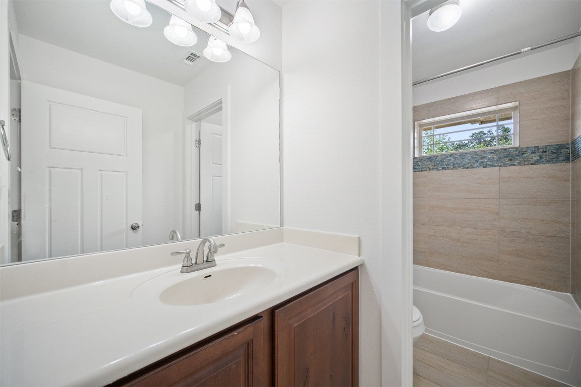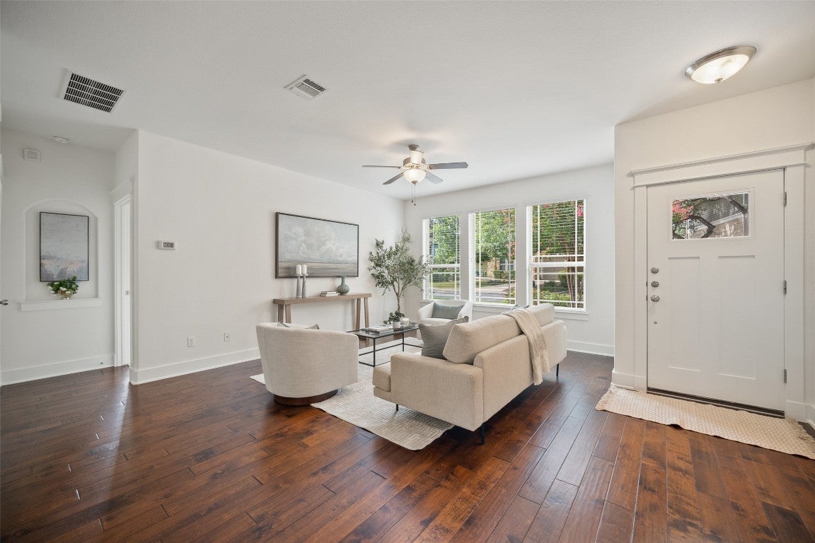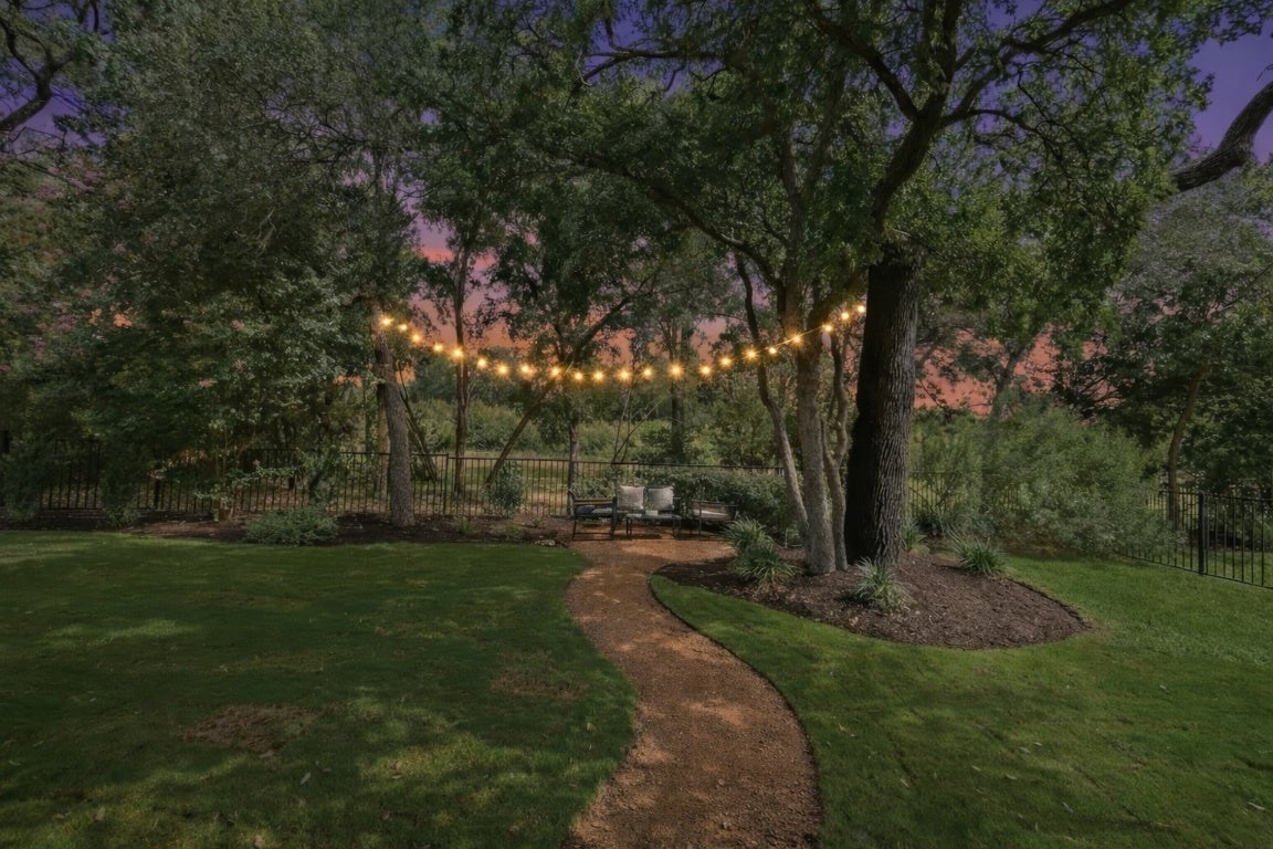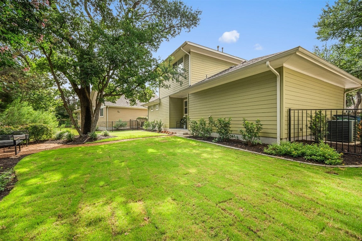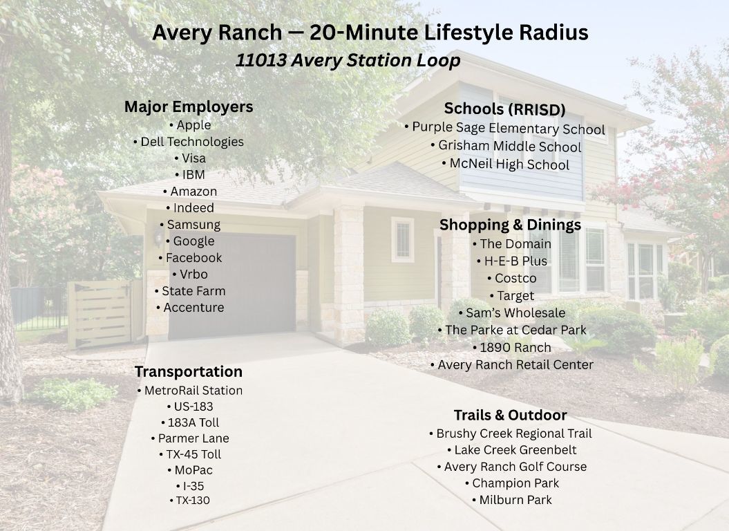 Tucked behind the gates of The Cottages @ Northwoods in Avery Ranch, this former model home sits on one of the most peaceful, coveted greenbelt lots — the kind rarely released to the market. Its prime location near the front of the community gives you effortless access while still offering quiet, private views that make the home feel worlds away. The HOA handles full yard care year-round, so weekends can be spent relaxing instead of maintaining — your outdoor spaces always look beautifully manicured and flow naturally into the serene greenbelt behind. Inside, sunlight pours through tall windows, highlighting the designer finishes and inviting warmth that instantly feels like home. Wood floors, stone counters, stainless appliances, custom cabinetry, and even a built-in pet suite reflect the quality and thoughtfulness of a builder’s showcase property. The main-level primary suite is positioned for privacy, overlooking the trees with a spa-style bath and generous walk-in closet. Upstairs, two additional bedrooms and a full bath offer ideal flexibility for guests, work, or hobbies. Step outside to a backyard with no rear neighbors — perfect for quiet mornings, evening conversations, and effortless entertaining. Living here means access to the community pool, amenity center, miles of Brushy Creek trails, and nearby Metro Rail for easy adventure and commuting. Zoned to highly rated Round Rock ISD, this home delivers the rare combination of lock-and-leave convenience, scenic greenbelt living, and the sought-after Avery Ranch lifestyle.