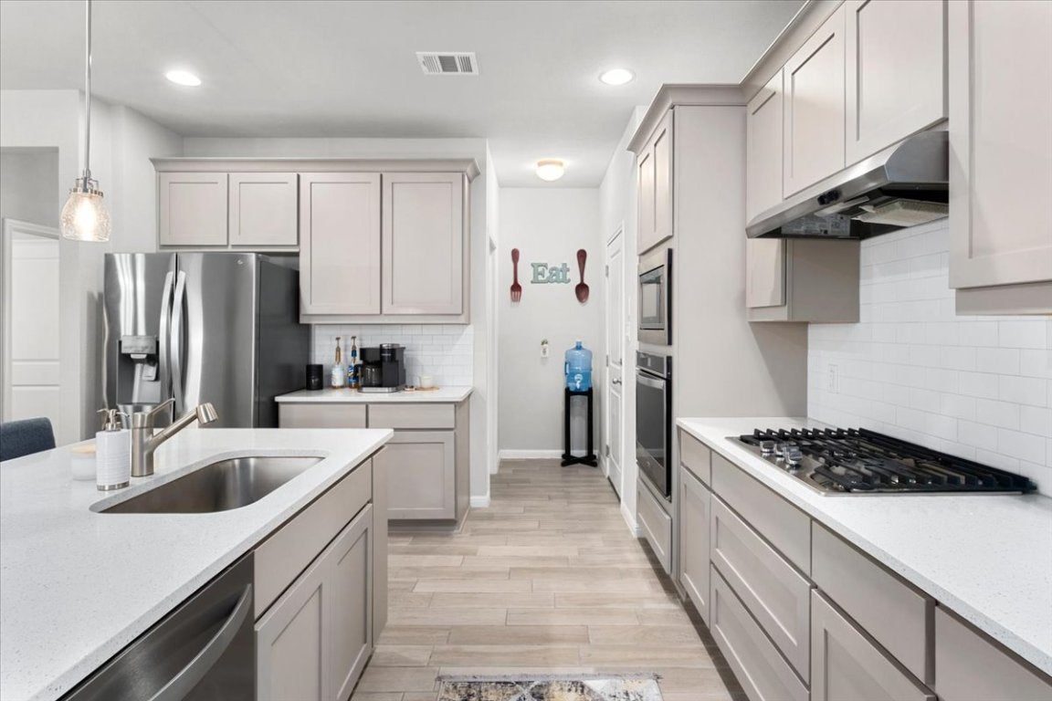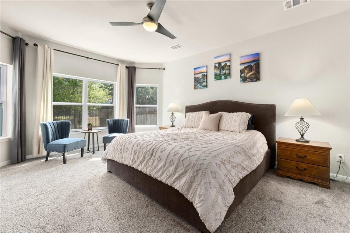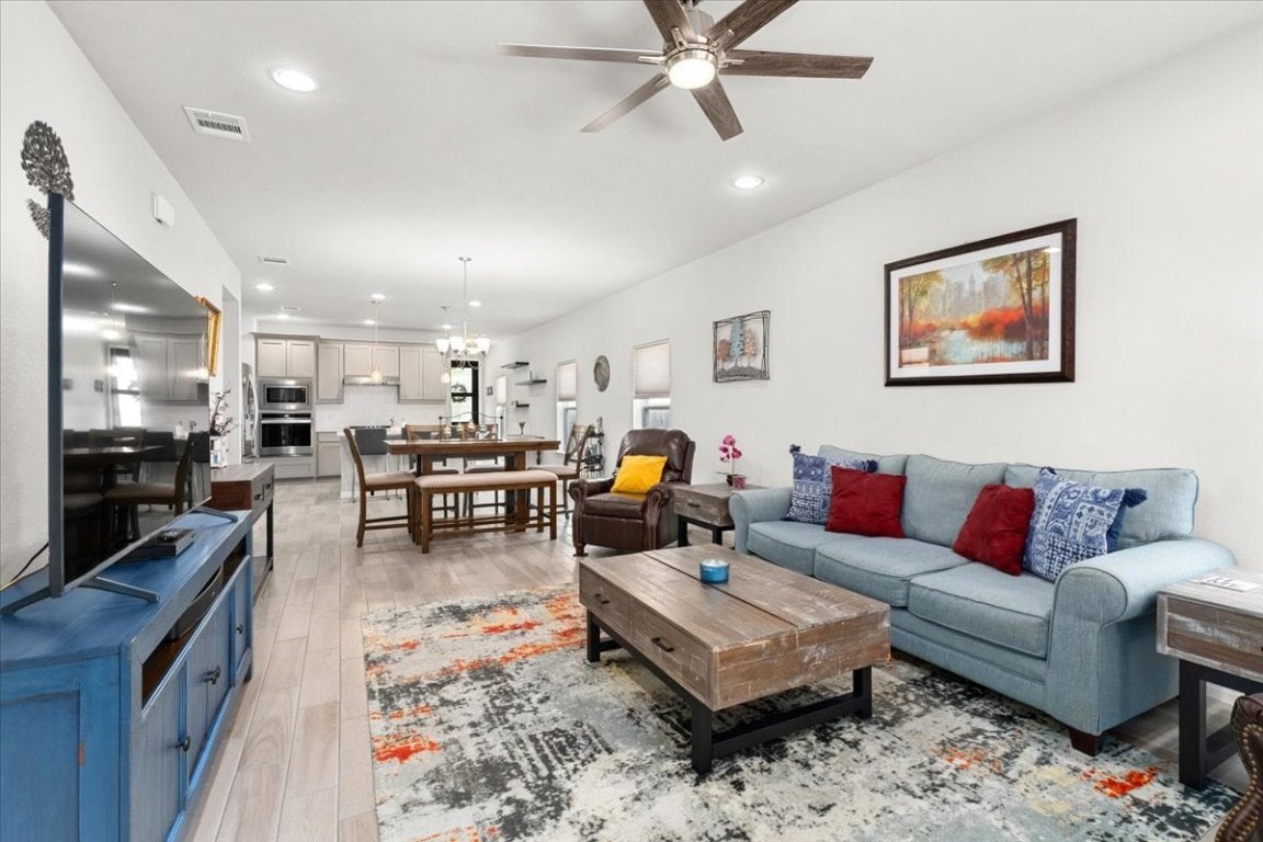 Huge price improvement!! Charming Home in Sought-After Blanco Vista – Modern Comfort Meets Natural Beauty! Welcome to this beautifully maintained 3-bedroom, 2-bath home with an additional, versatile office/flex space, ideally located in the desirable Blanco Vista community. Step inside and discover a thoughtfully designed interior featuring luxury vinyl plank flooring, a serene living area, and panoramic views of the greenbelt and trails just beyond your backyard. The chef-inspired kitchen boasts a spacious quartz island, stainless steel appliances, tankless water heater, and an oversized pantry – perfect for entertaining or quiet family meals. The open-concept layout seamlessly connects the kitchen, dining, and living areas for effortless living. Retreat to the expansive primary suite with a charming bump-out wall, large windows overlooking the tranquil backyard oasis, and direct views of the lush greenbelt. Nature lovers will appreciate the mature trees, visiting songbirds, and peaceful outdoor ambiance. Located minutes from shopping, top-rated schools, Austin, and Bergstrom International Airport, this home offers the perfect balance of convenience and calm. Don’t miss your chance to own this slice of Hill Country paradise! Schedule your private showing today!