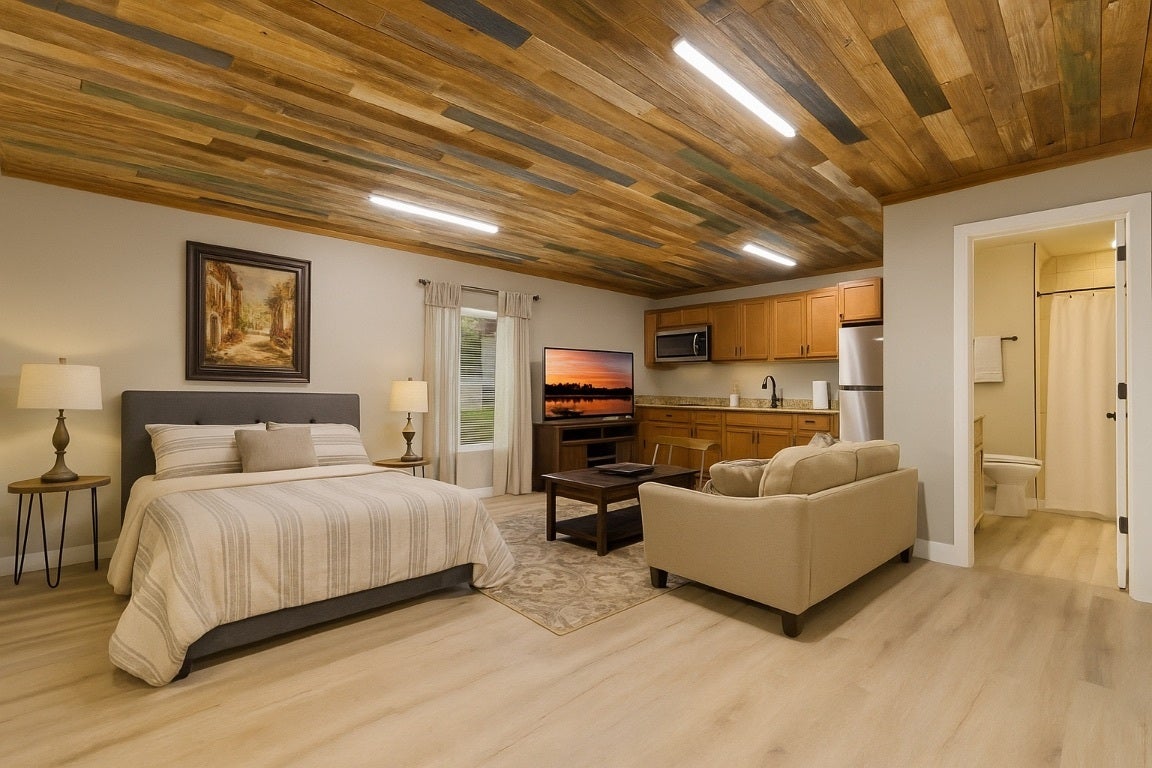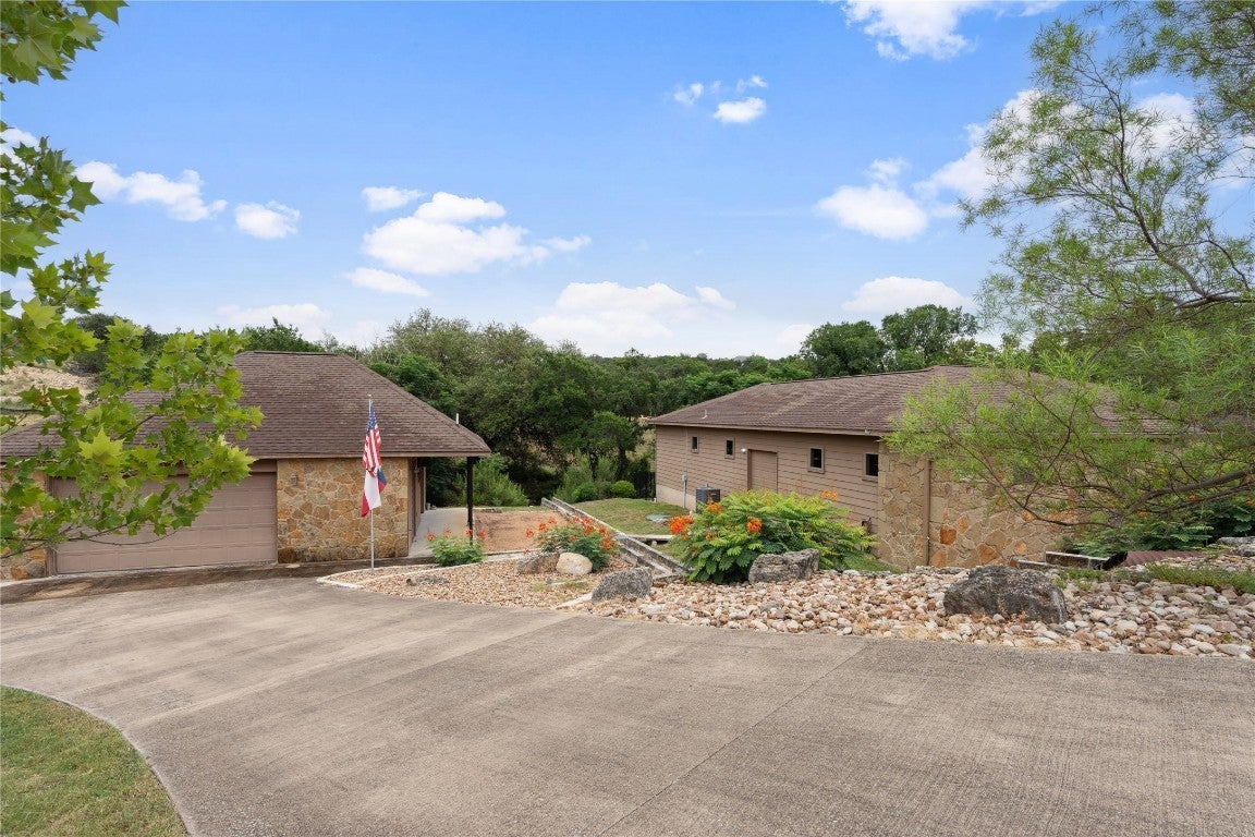 Located in the scenic lake community of Lago Vista, this exceptional property offers rare privacy and serene Hill Country living. Set on over .62 acres and backing to a seasonal creek run-off and the inactive golf course, the home enjoys a peaceful backdrop with no rear neighbors. Inside, the thoughtfully designed layout includes three bedrooms, two and a half baths, a dedicated office or study, and a media or secondary living space. An open-concept floorplan invites abundant natural light, enhanced by plantation shutters throughout. Outdoors, the beautifully landscaped grounds are designed for easy maintenance and provide the perfect setting for quiet evenings under the Texas sky. Adding to the property’s versatility is a second structure—ideal for a workshop or garage, or easily adaptable into a private casita, its own entrance, and separate driveway. This flexible space lends itself well to multigenerational living, guest accommodations, or potential rental income. Ownership in Lago Vista also includes access to an impressive array of amenities, including 7 waterfront parks, multiple boat ramps, a fishing well, playgrounds, tennis and pickleball courts, a community pool, and an active public golf course. Whether you’re drawn to peaceful surroundings or an active outdoor lifestyle, this home delivers the best of both worlds.