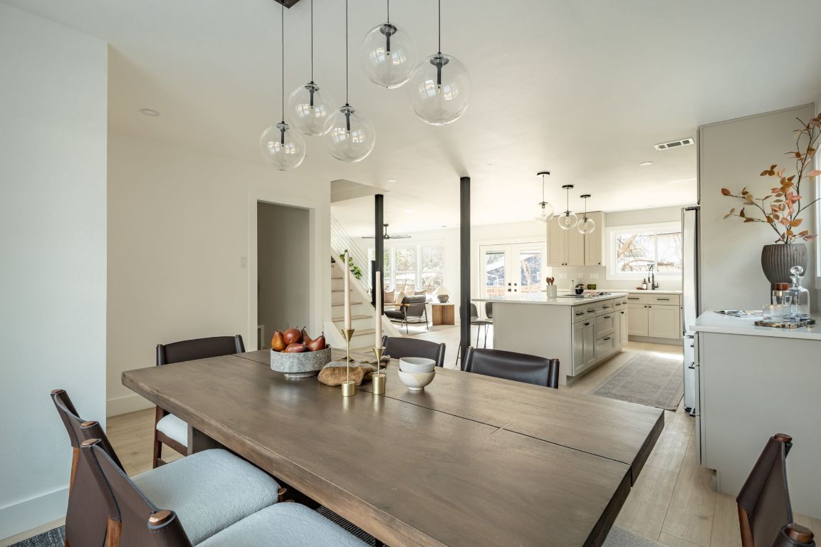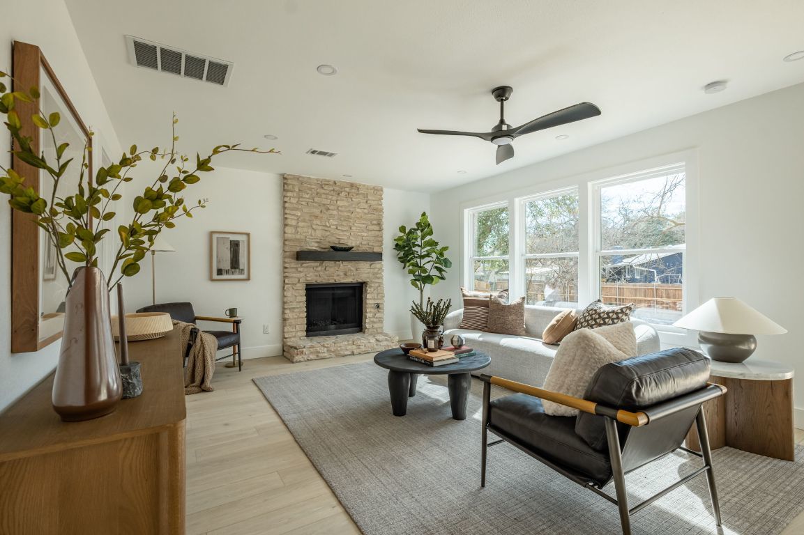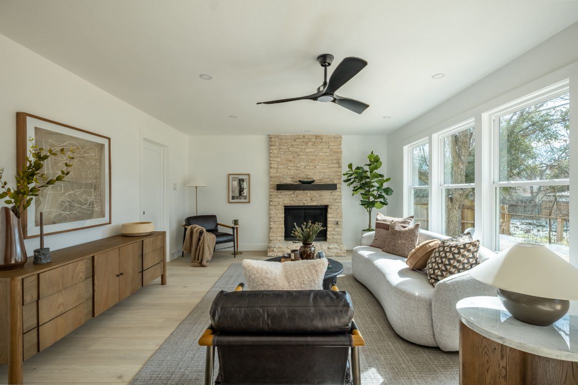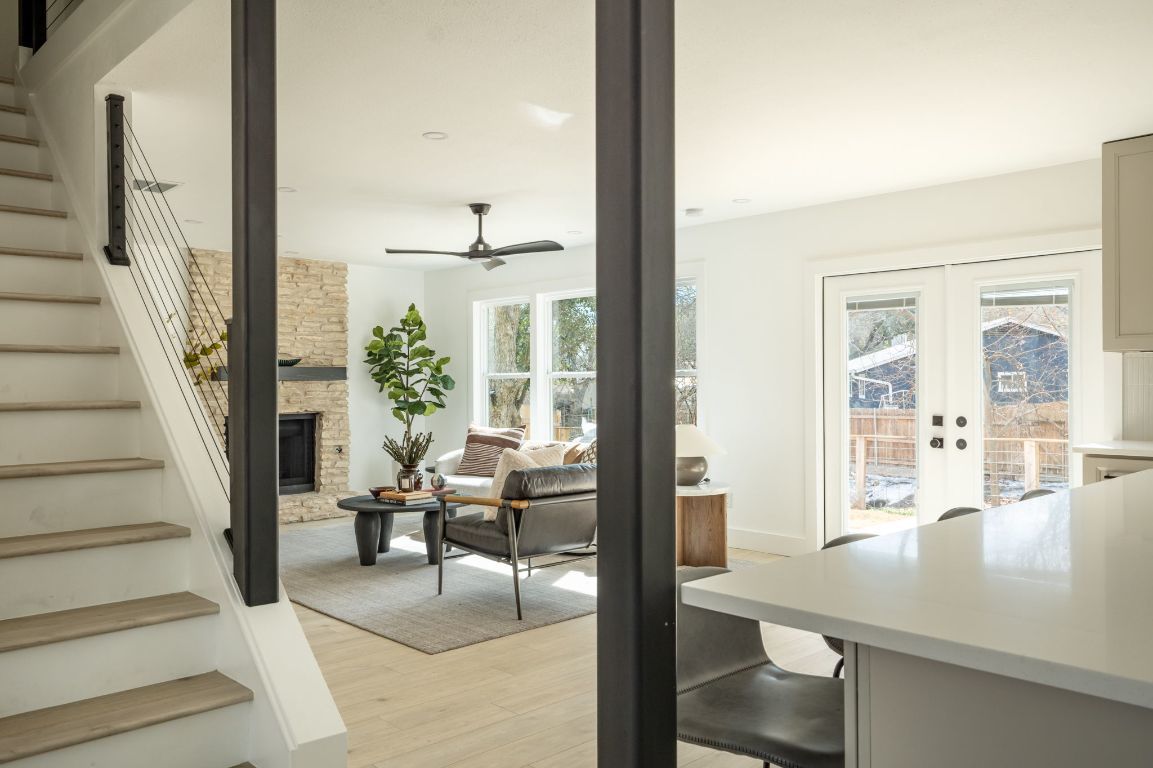 Welcome to the ultimate South Austin retreat! This completely remodeled, open-concept home is a true entertainer’s dream, perfectly blending modern luxury with that sought-after 78745 vibe. The heart of the home is the expansive chef’s kitchen, designed for both function and style. It features a massive island equipped with pop-up outlets and USB ports, a sleek induction cooktop with a downdraft vent, a convection oven, and under-cabinet lighting that highlights the ample storage. The living space flows seamlessly from the kitchen, anchored by a cozy gas fireplace that sets the mood for any gathering. When it’s time to unwind, retreat to the large Primary Suite, which feels like a boutique hotel thanks to a custom backlit accent wall. The en-suite bathroom is a showstopper, boasting a massive, spa-inspired wet room that redefines relaxation. Practicality is also a priority here; the home includes a dedicated mudroom and has been updated with a new roof, new energy-efficient windows, fresh paint, and a tankless hot water heater. Step outside to discover your private backyard sanctuary. A brand-new deck overlooks a peaceful wet weather creek, ensuring you have no backyard neighbors—just a serene view. Despite the quiet setting, you are in the center of the action. You are just 15 minutes from Downtown Austin, 20 minutes to the airport and a quick 5-minute ride to the legendary Menchaca entertainment district. Whether you’re grabbing coffee at The Hive, drinks at Moontower Saloon, or catching live music at Sam’s Town Point, the best of the city is at your doorstep.