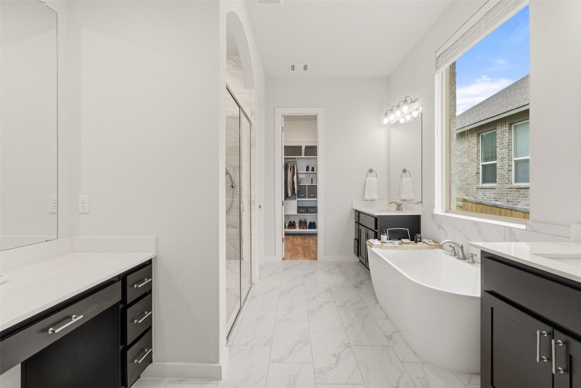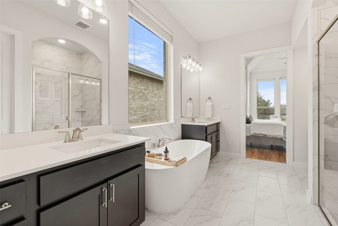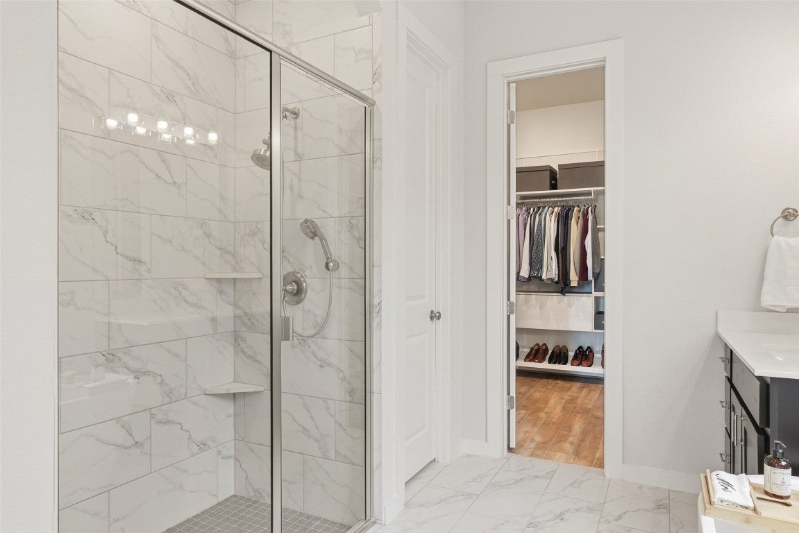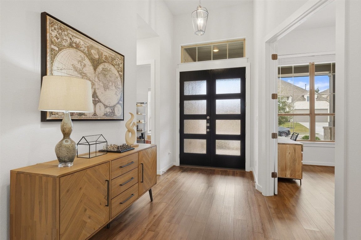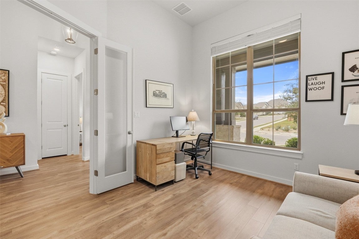 This home comes equipped with a complete solar panel array and Tesla Powerwall battery backup system — more than $120,000 in sustainable infrastructure already in place and fully operational and paid for. The new owner benefits immediately, enjoying dramatically reduced or eliminated electricity bills, seamless backup power during outages allowing the owner to continue working and run all household systems and appliances, and round-the-clock clean energy storage! From the moment you arrive, the expansive front entry makes a statement! Dual front doors open to a space that feels both grand and inviting, setting the tone for a home that has been immaculately cared for and thoughtfully curated. Maintenance-free luxury-level flooring throughout offers the warmth and look of real wood while remaining easy to care for. At the heart of the home, the kitchen showcases ultra-high-end finishes and exceptional storage. Level 4 quartz countertops, premium cabinetry, and elevated material selections reflect the depth of investment. One secondary bedroom currently serves as a second office and includes a full bath and walk-in closet - ideal for guests or evolving needs. The primary suite features a custom closet, an approximately $15,000 upgrade that highlights the owners’ attention to detail and long-term value. Additional spaces include a light-filled mud room with four windows, currently used as a home gym and dog space, and a media room perfect for movie nights or relaxed gatherings. Out back, the reimagined yard features approximately $40,000 in premium landscaping, hardscaping, and re-sodding, backing to a greenbelt for added privacy. Located in Six Creeks, a welcoming community near South Austin, Buda, Wimberley, and Dripping Springs, this home blends Hill Country charm with everyday convenience. 503 Painted Creek Way is defined by care, investment, and elevated living!