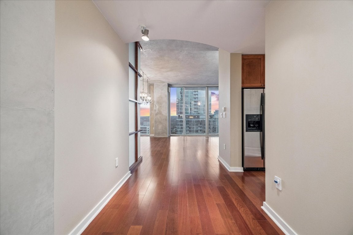 Over $100k price reduction!! Rare 4 Bedroom floor plan at 360 Condominiums spanning over 2,000 sq ft! This unique developer combined condo lives like a penthouse with stunning panoramic views of Downtown, Lady Bird Lake and the Hill Country from every angle. Enjoy 3 balconies spanning the entire condo with floor to ceiling windows and endless amounts of natural light. The spacious open living room and kitchen is perfect for entertaining and can be arranged in many different ways. Interior features include hardwood flooring throughout, custom built ins in the walk in pantry and guest rooms, granite counters, surround sound system and more. Two of the guest rooms have custom built ins that are perfect for home offices, but can also easily be used as guest bedrooms. The oversized primary ensuite is filled with custom cabinetry and the spa like bath features a jetted tub and walk in shower. This side of the condo features a separate entrance to the primary ensuite for added guest privacy. Spacious primary bedroom surrounded by floor to ceiling windows, a private balcony and panoramic views. Amazing opportunity to make this expansive 4 bed / 2 bath condo your own! Conveys with 4 PARKING SPOTS & 7 ft x 6 ft PRIVATE STORAGE UNIT! Building amenities include 24 hour concierge, owner's lounge, resort style pool and grilling areas, conference room, game room and dog park. Just steps to Lady Bird Lake, Seaholm District, Trader Joe's, Whole Foods, 2nd St District, West 6th St and all that Downtown Austin has to offer. Building also offers FREE high speed internet.