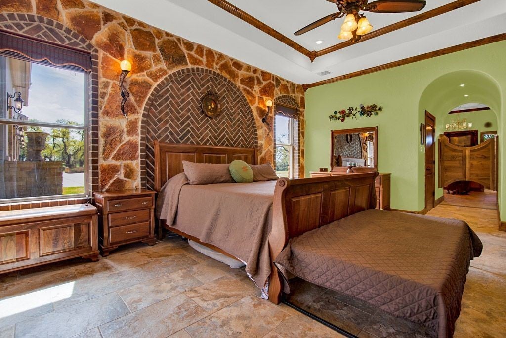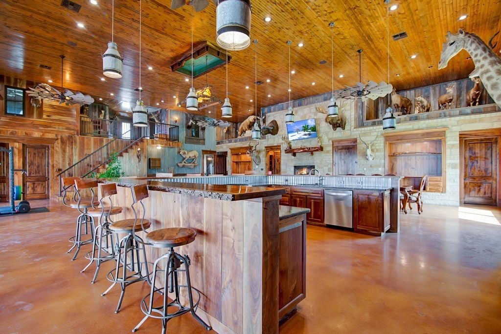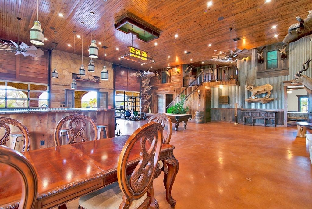 Large estate on 38.9 acres. Completely fenced with a 12-foot game fence and grand rock entrance. Live the life of luxury in this almost 9,000 sqft of living space with 8 bedrooms 8 full baths and 3 half baths. Custom built in every nook and cranny with Texas stone, hardwood, and granite cabinetry. Two large fireplaces, swimming pool, outdoor basketball court, indoor RV parking garage, indoor and an outdoor bar with complete catering setup, or just relax in your own private movie theatre. Other outdoor amenities include dog kennels, livestock pens, barns, and sheds. Large backyard area - fully fenced with wrought iron fencing. Gorgeous Views and beautiful sunsets right from your oversized covered porch. Super unique feature - your own private natural cave that you can explore! Centrally located in the heart of Texas Hill Country right next to the Wimberley Junction on R12 and FM 32. Estate is at the end of the gated subdivision of Trails End Ranch. Less than 30 minutes to Canyon Lake, Wimberley, San Marcos, or New Braunfels. Looking for country living near the big cities? You are less than an hour away from Austin or San Antonio! This is the Texas Hill Country Ranchette you have been waiting for!