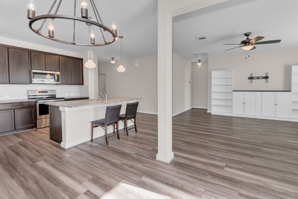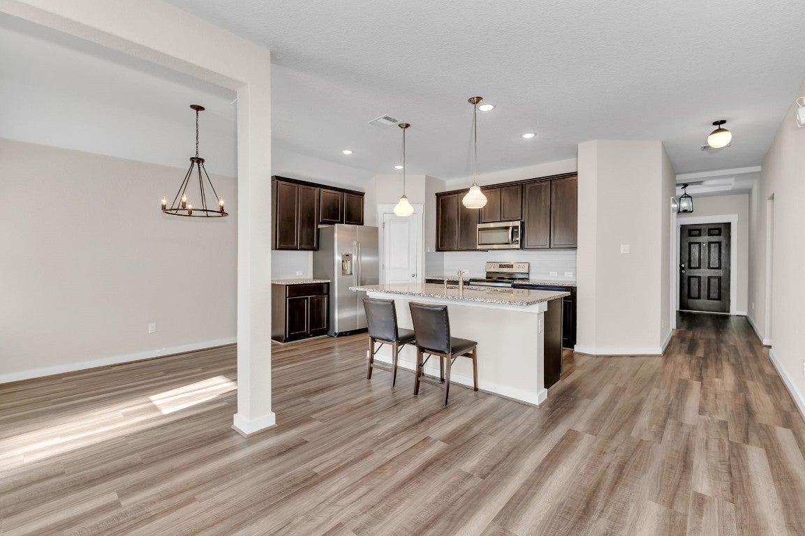 Exquisite 4-bed, 2-bath home on a spacious corner lot. Revel in the open floor plan, granite countertops, and a sizable backyard with an extended Trek deck - an ideal setting for entertaining or savoring morning coffee. Enjoy modern living with brand-new appliances, including a refrigerator, washer, and dryer. This smart home boasts the latest technology, featuring a smart thermostat, sprinkler system controller, smart locks on all exterior doors, ADT security system (available for subscription) and garage door opener. Community amenities include a park, sport courts, and scenic trails. Just a quick 6-minute drive from downtown Hutto, offering easy access to shopping and dining delights.