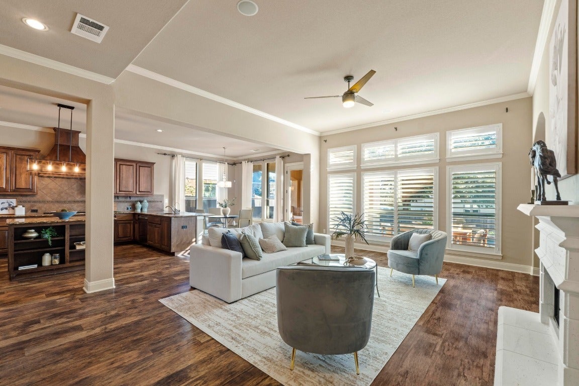 Welcome to 3913 Obsidian Lane, a stunning 4-bedroom, 4-bath home in the highly sought-after Walsh Ranch community of Round Rock. With 3,682 sqft of beautifully designed living space, this home blends luxury, function, and Texas charm. The open-concept main floor features a spacious living area with soaring ceilings, elegant flooring, and a cozy fireplace. The chef’s kitchen is equipped with granite countertops, stainless steel appliances, and an inviting breakfast bar, perfect for both everyday meals and entertaining. The primary suite is conveniently located downstairs, along with a dedicated office and an additional main-level flex room. Upstairs, you’ll find three large bedrooms and a game room that offers plenty of space for family or guests. Step outside to your private resort-style backyard, complete with a pool and spa, a covered outdoor living area with fireplace and TV, and an extended patio for entertaining year-round. Recent updates include a new roof, fresh paint, tankless water heater and new sod in front and back yards. Located in a top-rated school district and a prime section of Walsh Ranch, this property truly delivers the best of suburban luxury, minutes from major employers, dining, and shopping.