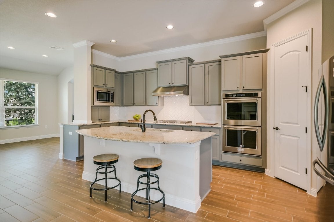 Built-In Electric Oven, Built-In Oven, Double Oven, Dishwasher, Gas Cooktop, Disposal, Gas Water Heater, Microwave, Water Softener Owned, Stainless Steel Appliance(s)