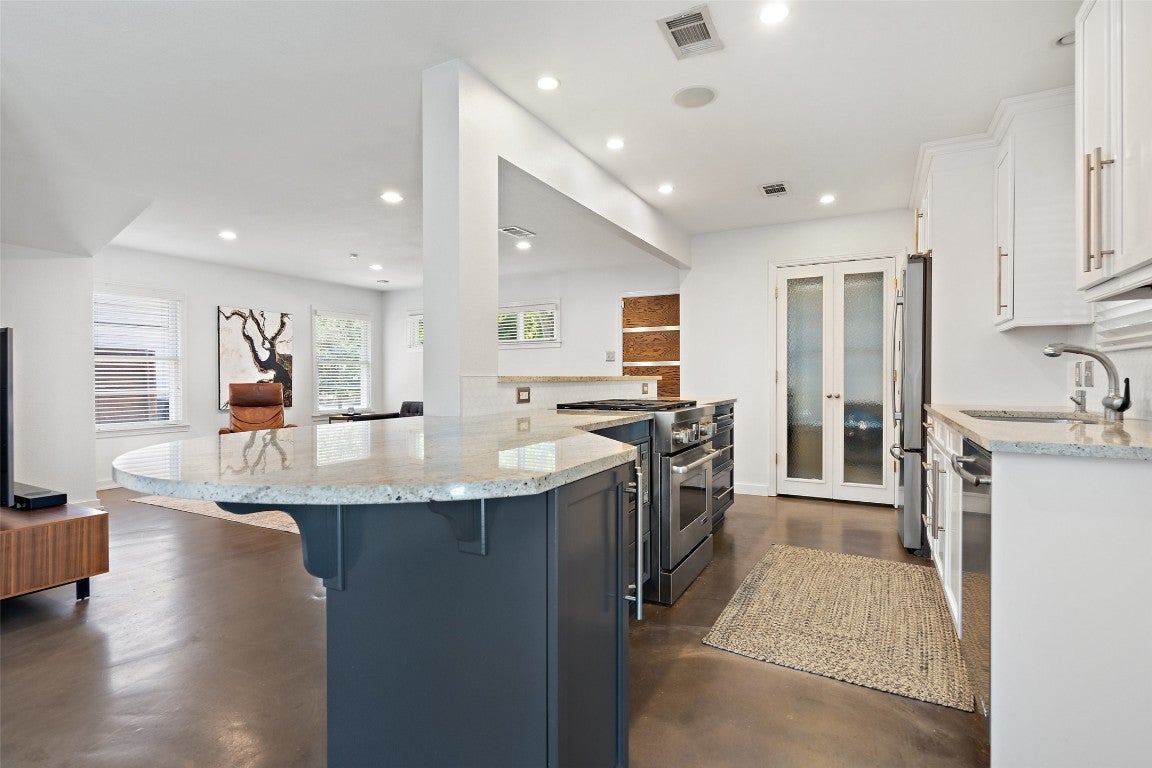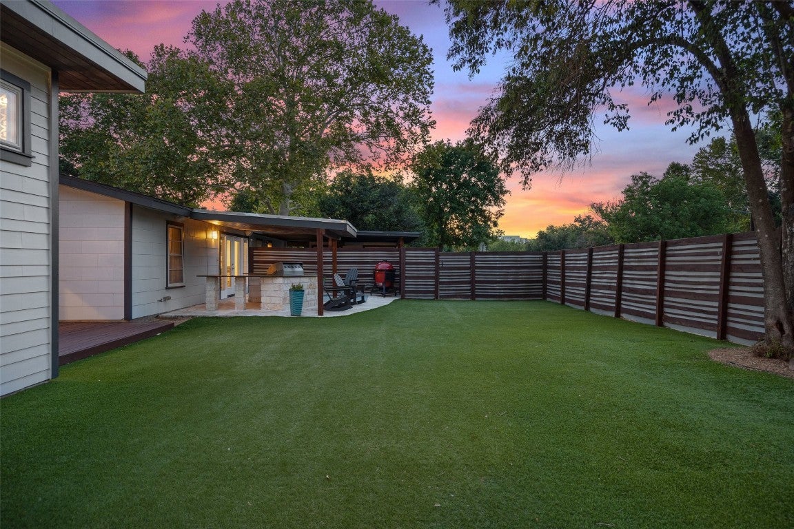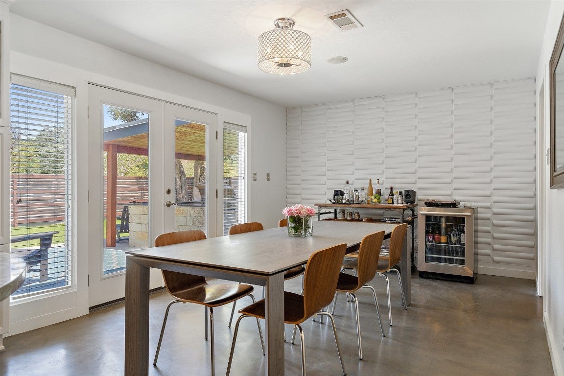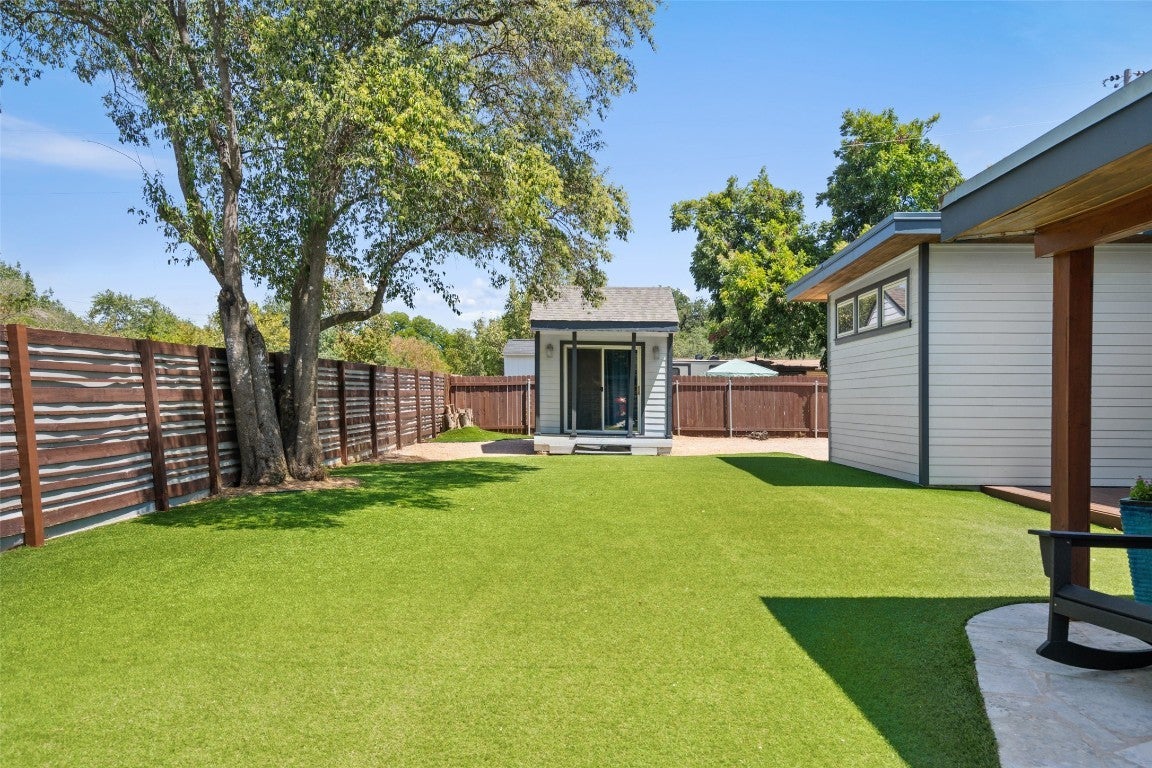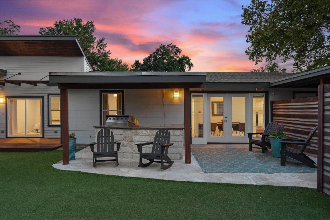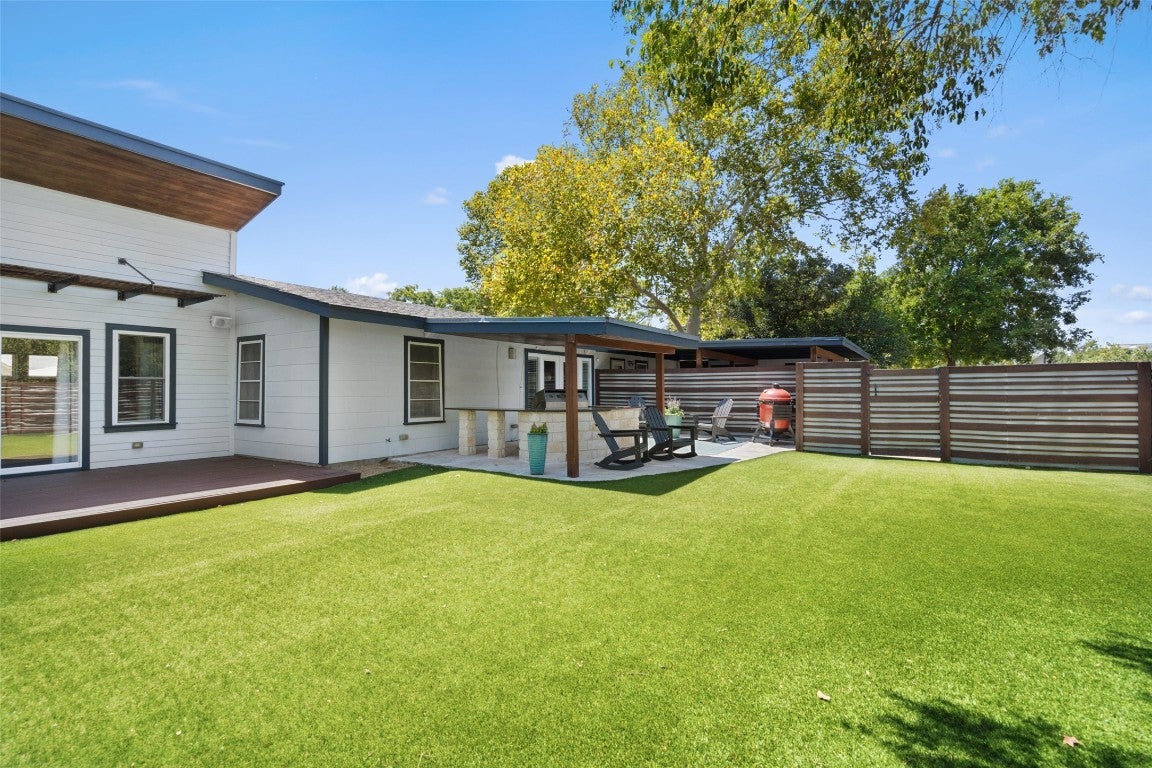 New 30 year roof installed Nov 2025! Nestled on a corner lot w/towering trees in the heart of Crestview, this home seamlessly blends clean modern lines w/authentic details in a prime location. The home features a light & bright open living space w/a generous living room, polished concrete floors, granite island kitchen w/stainless appliances, modern hexagonal backsplash and gas range. The dining room affords plenty of room for hosting and is anchored by an architectural accent wall. French doors lead to the incredible flagstone patio, where a covered outdoor kitchen houses a built-in grill, granite counters and stainless ice basin for refreshments. The yard has low maintenance turf and is great for outdoor play and also includes a bonus studio that is perfect for an office, hobby room, storage or play space. The 2-car covered carport, a rarity in Crestview, can easily be converted into a garage. The spa-like primary bath offers dual vanities, high ceilings, modern fixtures and a huge walk-in frameless shower w/dual rain shower heads and built-in benches. The real showstopper, however, is the magazine worthy walk-in closet complete w/full height built-in storage, glass accent doors, designer wallpaper and a crystal chandelier. 2 guest bedrooms and bathrooms feature original American Oak flooring which complement the clawfoot tub and other vintage bath details that pay homage to the home’s history. Venture out and enjoy the superb location by visiting over 15 restaurants within walking distance. Play ball at Northwest District park, take a bike ride w/the UT Cycling Team on their weekly Friday fun ride, Austin FC Soccer games, the “Shoal Creek Shootout” or go shopping at the Domain less than 10 mins away. Enjoy fine dining at Bartlett’s around the corner, Japanese omakase at Dip Dip Tatsu-Ya, a smoothie at Juiceland or go back in time with a visit to Top Notch Burgers, made famous by the movie Dazed and Confused.