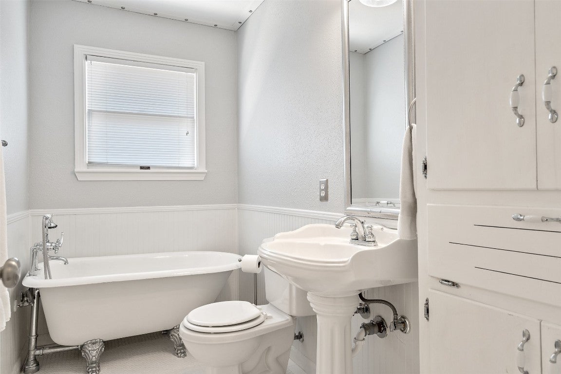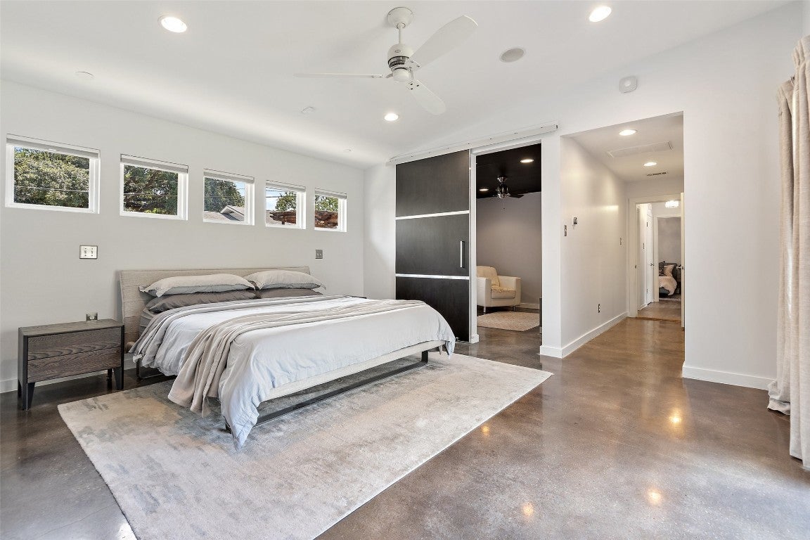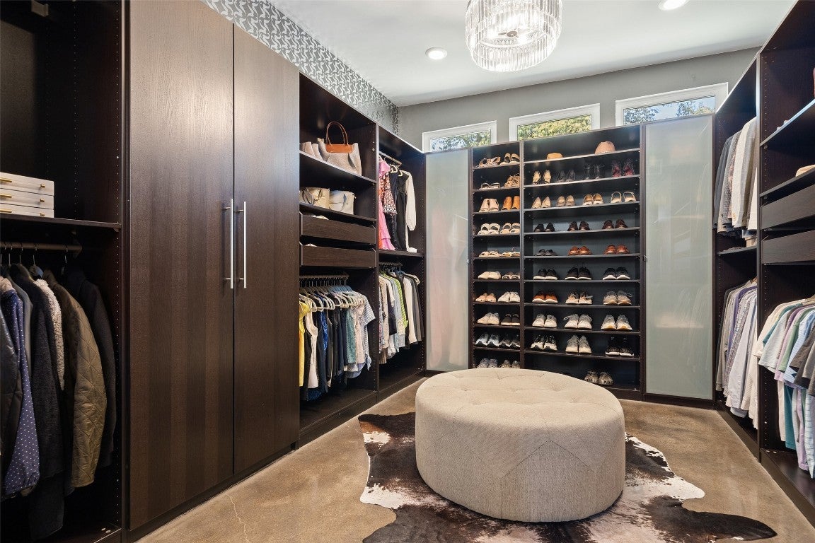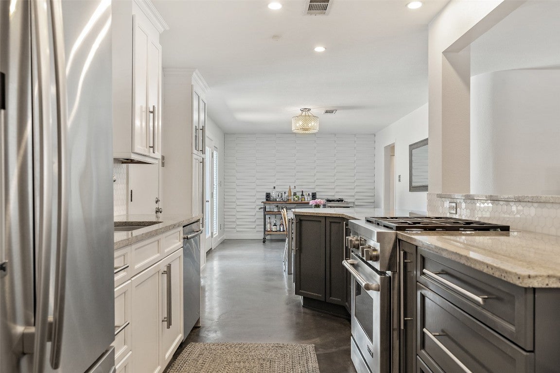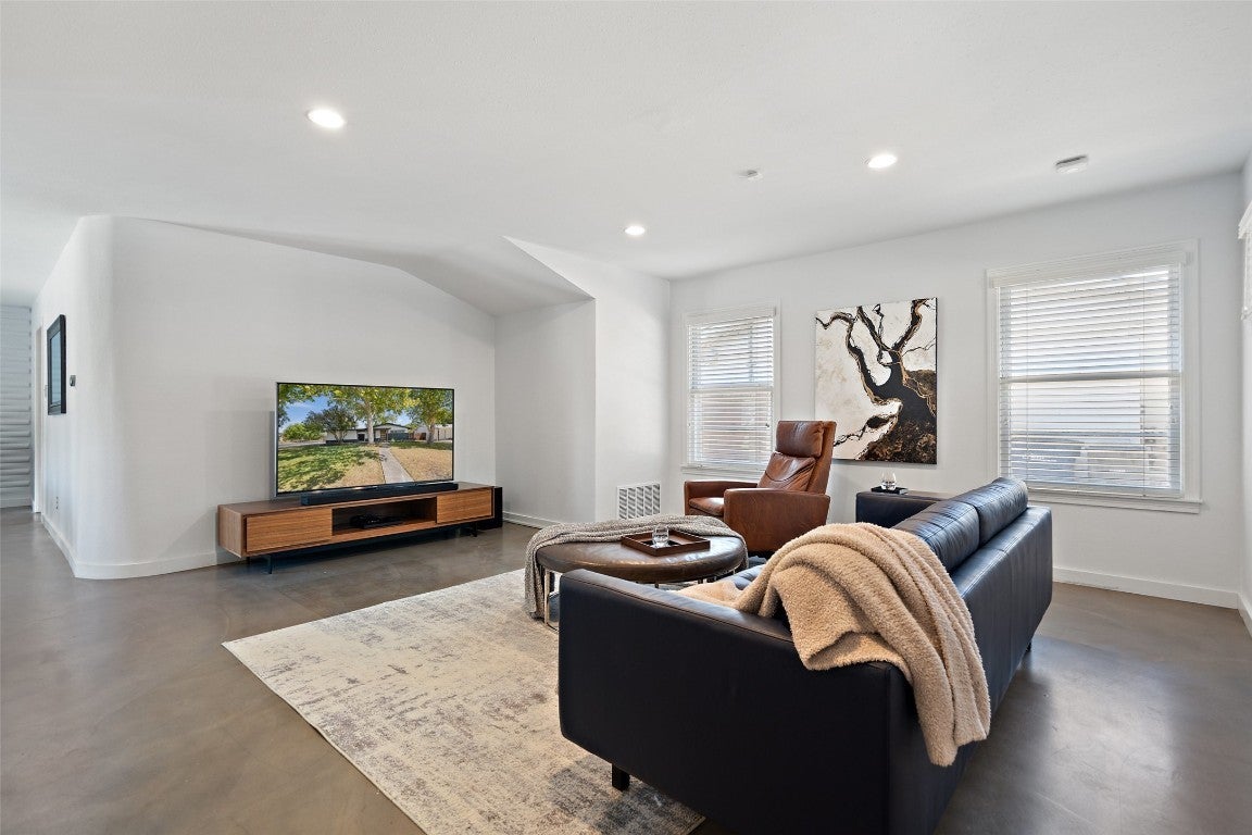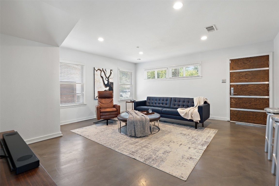 New 30 year roof installed Nov 2025! Nestled on a corner lot w/towering trees in the heart of Crestview, this home seamlessly blends clean modern lines w/authentic details in a prime location. The home features a light & bright open living space w/a generous living room, polished concrete floors, granite island kitchen w/stainless appliances, modern hexagonal backsplash and gas range. The dining room affords plenty of room for hosting and is anchored by an architectural accent wall. French doors lead to the incredible flagstone patio, where a covered outdoor kitchen houses a built-in grill, granite counters and stainless ice basin for refreshments. The yard has low maintenance turf and is great for outdoor play and also includes a bonus studio that is perfect for an office, hobby room, storage or play space. The 2-car covered carport, a rarity in Crestview, can easily be converted into a garage. The spa-like primary bath offers dual vanities, high ceilings, modern fixtures and a huge walk-in frameless shower w/dual rain shower heads and built-in benches. The real showstopper, however, is the magazine worthy walk-in closet complete w/full height built-in storage, glass accent doors, designer wallpaper and a crystal chandelier. 2 guest bedrooms and bathrooms feature original American Oak flooring which complement the clawfoot tub and other vintage bath details that pay homage to the home’s history. Venture out and enjoy the superb location by visiting over 15 restaurants within walking distance. Play ball at Northwest District park, take a bike ride w/the UT Cycling Team on their weekly Friday fun ride, Austin FC Soccer games, the “Shoal Creek Shootout” or go shopping at the Domain less than 10 mins away. Enjoy fine dining at Bartlett’s around the corner, Japanese omakase at Dip Dip Tatsu-Ya, a smoothie at Juiceland or go back in time with a visit to Top Notch Burgers, made famous by the movie Dazed and Confused.