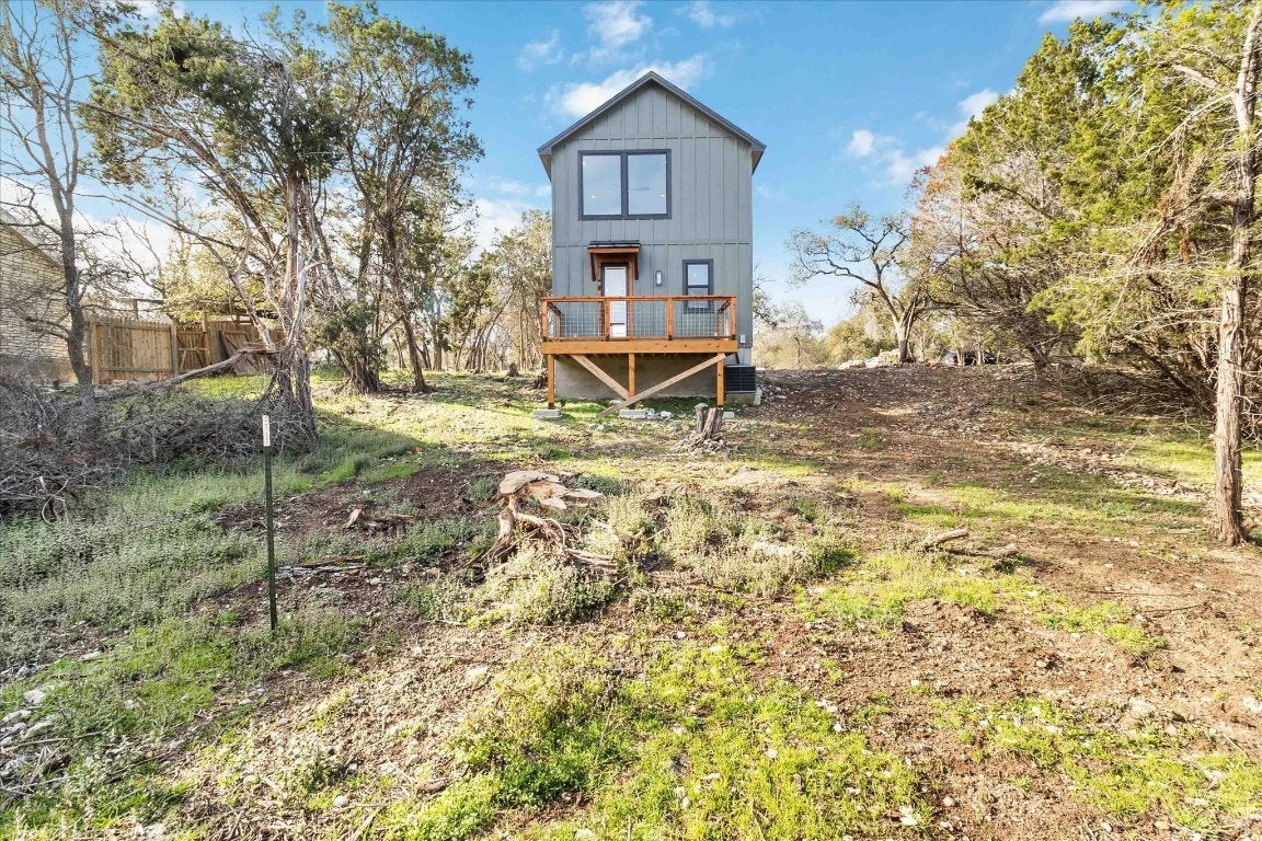 UPDATE: FENCING ADDED IN BACKYARD AVAILABLE FOR LEASE!!… Introducing a captivating new listing in Wimberley, Texas! Immerse yourself in a thoughtfully designed Hill Country lifestyle with this innovative, newly constructed (2023) residence by CTHC Builders. This 3-bedroom, 2.5-bathroom home offers approximately 1,554+/- sq ft of luxurious living space, where warm modern finishes blend seamlessly w/comfort & function. Upon arrival, the home’s modern curb appeal sets the tone - metal roofing, board & batten siding, and cedar-accented front porch details combine to create a striking & welcoming first impression. Inside, the open-concept layout is highlighted by polished concrete floors & abundant natural light. The heart of the home is the oversized quartz centerpiece island in the kitchen - paired with a custom white Samsung appliance package, ample cabinetry & stylish finishes, it’s the perfect space for culinary creativity or casual gatherings. The flow continues effortlessly to the rear deck area, ideal for entertaining or dining under the stars. The primary suite is a private retreat featuring two oversized picture windows w/serene treetop views, a double vanity, quartz countertops, and a walk-in shower wrapped in vertical subway tile and enclosed in frameless glass. Two additional bedrooms share a secondary bath w/custom tile extending to the ceiling, black fixtures, and a sleek, slim-framed mirror—creating a cohesive, elevated aesthetic throughout. Additional highlights include a designer half bath with wallpaper accent & under-stair storage. Positioned just minutes from Downtown Wimberley, this home provides easy access to the town’s charming shops, art galleries, acclaimed restaurants, and natural attractions—delivering both convenience and a true Hill Country experience. Photos may depict a similar home built by the same Builder with the same floor plan; finishes may vary. All information is deemed reliable but not guaranteed.