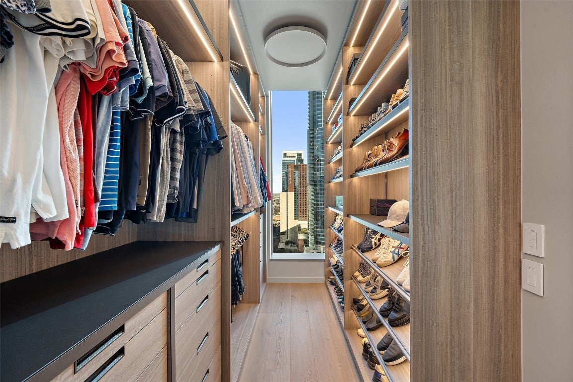 South-facing 2 bed / 2.5 bath corner unit at The W Austin Residences, fully renovated in 2023, offering unobstructed views of South Congress, South First, and Town Lake. This thoughtfully designed 1,953 SF home features a 202 SF private balcony and seamless indoor-outdoor living. The chef’s kitchen is outfitted with custom Molteni & Co Dada cabinetry and a premium suite of Thermador appliances, including refrigerator, freezer, dual dishwashers, convection oven, wall oven, gas cooktop, microwave, wine refrigerator, and built-in coffee maker, plus a Sub-Zero under-counter beverage refrigerator. Living and dining spaces are enhanced by a remote-controlled fireplace, Sonos in-ceiling speakers, Crestron home automation, Lutron wifi lighting, and Lutron wifi roller shades. Both bedrooms feature custom Molteni&Co Closets, while the spa-inspired bathrooms include elevated finishes and a Toto electric toilet. A rare powder bath provides added convenience for guests. Custom steel and glass doors by Presidio, custom millwork, and built-in storage add architectural detail throughout. Additional highlights include a 3-car private garage with custom cabinetry and a XL private storage unit, also outfitted with custom cabinets—exceptional amenities for downtown living. Residents enjoy the true "Whatever/Whenever" lifestyle with full access to the W Hotel pool, gym, steam room, yoga, and Away Spa. A turnkey, design-forward residence offering iconic views, intelligent technology, and the signature lifestyle of The W Austin Residences.