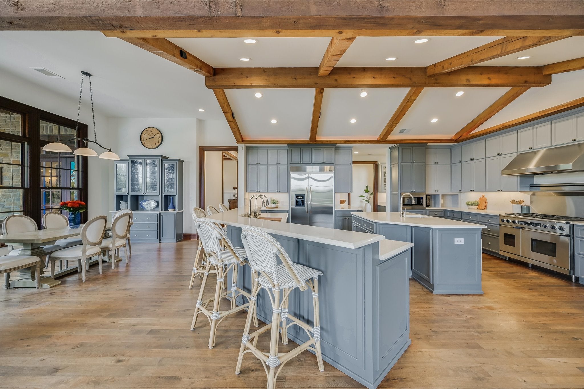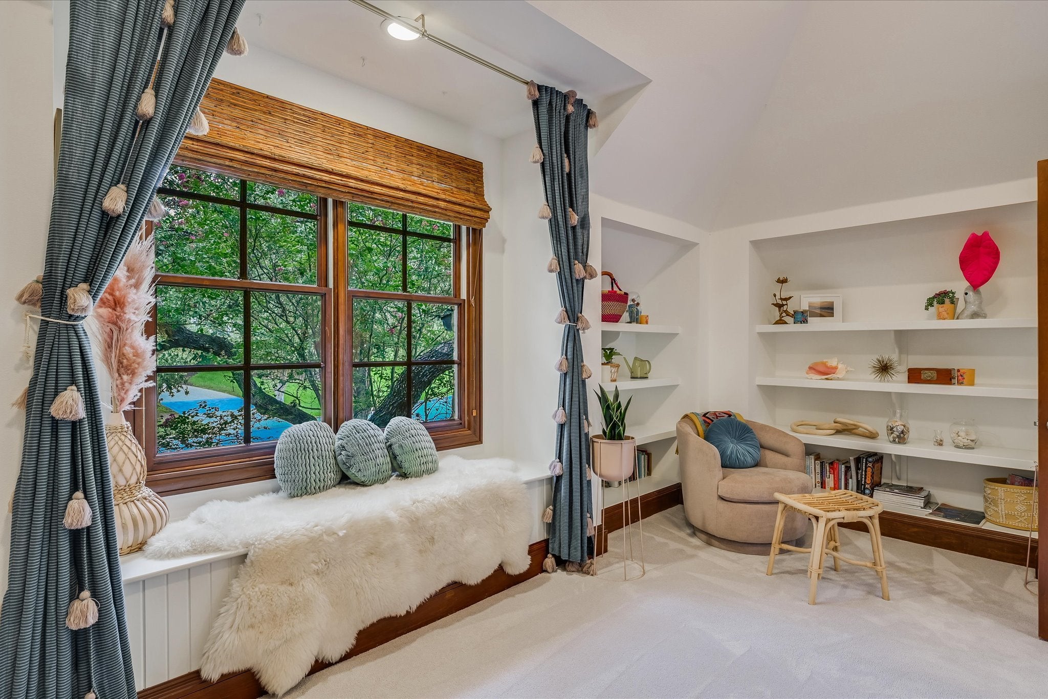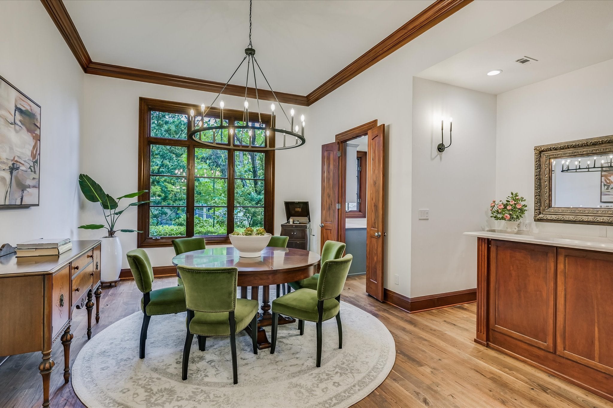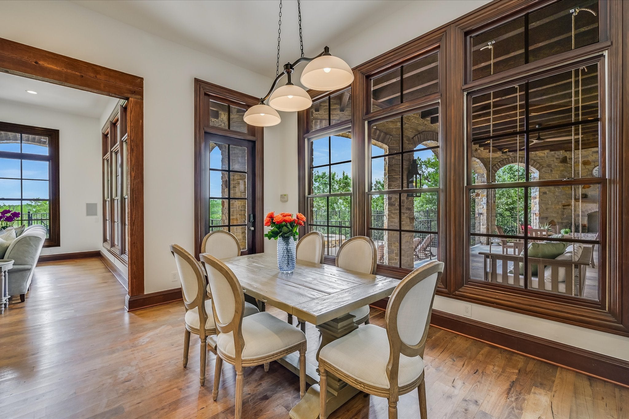Welcome to this stunning estate tucked in one of Austin's most coveted private neighborhoods. Set on lot backing to a greenbelt, this classic home blends rich woodwork, timeless stone finishes, & transitional charm – offering endless flexibility for both grand entertaining and cozy everyday living. The great room invites you in with soaring coffered ceilings w/exposed wood beams, large gas fireplace overlooking the outdoor patio, pool, and spa. Stone floors and masterful hardwood accents carry throughout the home, creating warmth and sophistication at every turn. The chef’s kitchen is truly expansive, with 2 islands, dual dishwashers, 2wine fridges, 2 sinks, a 6-burner rangetop, butler’s pantry, & abundant cabinetry – designed for effortless entertaining. A spiral staircase just off the kitchen leads to a dramatic 1500 bottle wine cellar and tasting room with ample space for dining and bottle storage. The main level also features a private guest suite, den, a large formal dining room, and a breakfast room that opens directly to the pool area. Upstairs, the primary suite is a true retreat – featuring a fireplace, large dual closets, a spa-like bathroom with soaking tub, and dual vanities. Step out onto the private balcony for serene views of the backyard oasis and your custom built 6 person sauna. The expansive view includes the UT tower and Mount Bonnell. Each additional bedroom includes its own bathroom and walk-in closet. A media room (optional 6th bedroom) w/ full bath, dual offices, a playroom with built-in desks, and an additional flex space accommodate every lifestyle. The home has been recently upgraded with lighting updates, Sonos, water filtration, HVACS, security system, and a cedar sauna. Outdoors, enjoy a view of the greenbelt from your private, fully equipped outdoor living space, including a resort style pool/spa, covered patio, and dining area. All information deemed reliable but not guaranteed. Buyer to confirm all information.