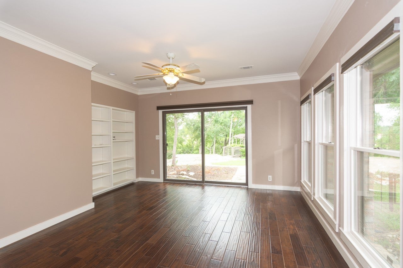 Discover one of Round Rock's Best Hidden Gems located on quiet street with majestic trees and Panoramic Views of Brushy Creek from your backyard. Remodeled and updated with space for everyone including private guest quarters. Five bedrooms with Spectacular Primary Suite, Two large Secondary bedrooms, and Three baths on main level. Great Room with solid wood beam ceiling, scraped Brazilian wood floors , gas log fireplace, wall of natural light that opens to Tranquil Outdoor Beauty. Chef’s. Dream. Kitchen with giant granite center island, wine cooler, stainless appliances, cabinets galore opens to breakfast area, sitting area with gas log fireplace and pass through to formal dining and wet bar. The Utility Room and Office/ Flex area is unbelievable. Upstairs has spacious game room with wet bar and refrigerator. Plus two bedrooms, one with balcony view and one bath. The Backyard is Breathtaking from the covered brick patio , extensive stone area and steps lead to Brushy Cree. So many, many special features. Designed for Entertaining Family and Guests.