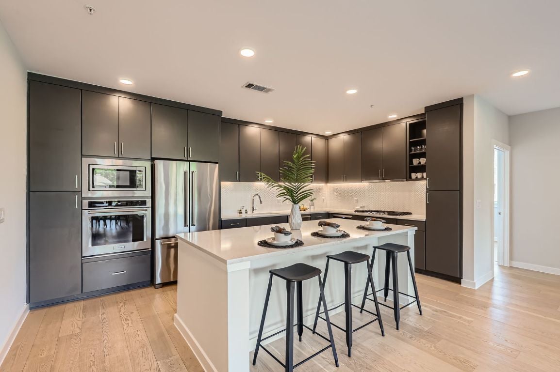 Live effortlessly in this impeccably crafted 3-bedroom, 2-bath nestled a condo nestled under a canopy of iconic live oak trees in one of Austin’s most desirable central neighborhoods. Designed for those who value elevated design and intentional living, this residence offers a rare blend of natural serenity and urban sophistication. Step inside to soaring ceilings, wide-plank flooring, and expansive windows that flood the space with natural light. The spacious kitchen anchors the open layout with quartz countertops, custom cabinetry, and top-tier stainless appliances—ideal for hosting or simply enjoying quiet mornings at home. The primary suite is full of natural lighting and walk-in closet. An additional bedroom provides flexibility for guests, remote work, or a wellness sanctuary. Signature Amenities: • Secured underground parking + electric vehicle charging • Rooftop lounge with skyline views, BBQ grills, and elegant entertaining areas • Pet-friendly grounds with wash station • Private storage unit and fitness studio • Co-working space for seamless work-from-home Located just moments from Austin’s culinary hotspots such as iconic Austin landmark Home Slice Pizza, Aba, Terry Black's and Odd Duck, boutique shopping, and Auditorium Shores at Town Lake less than a mile away, this residence puts the city’s best at your doorstep—while offering a tranquil, tree-lined escape above it all.