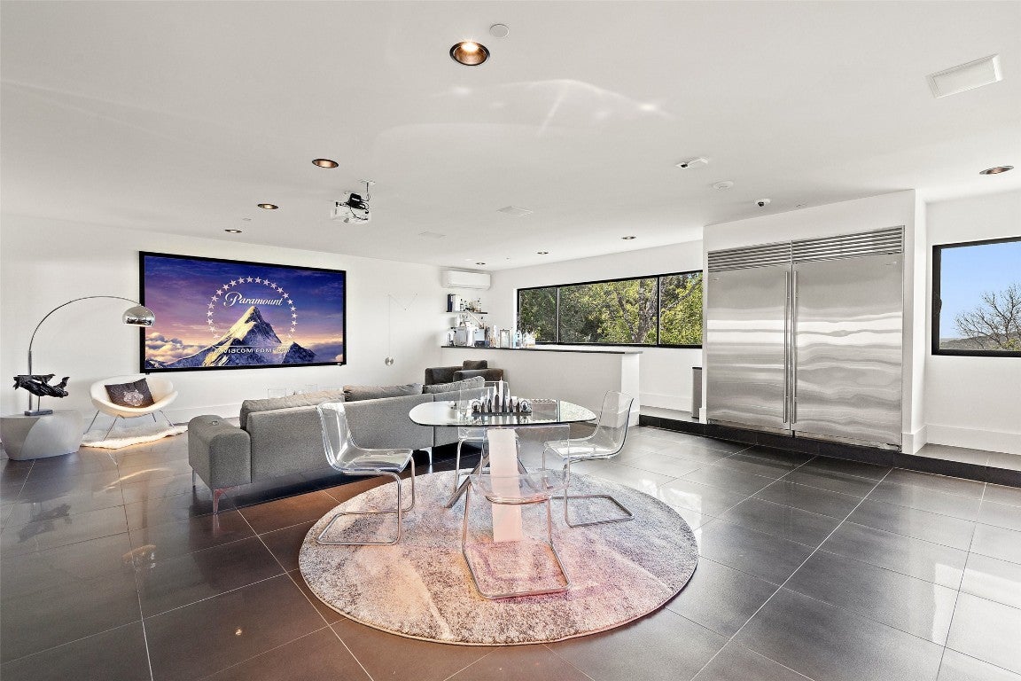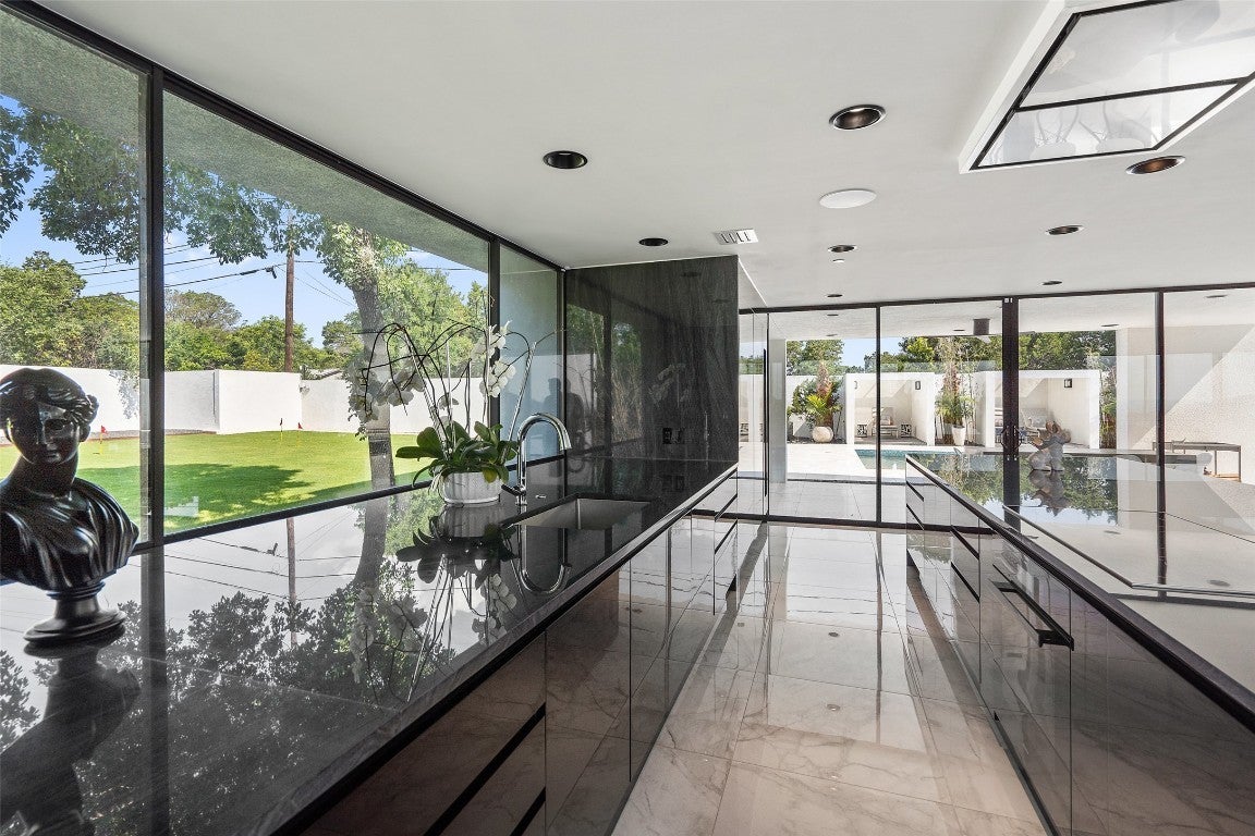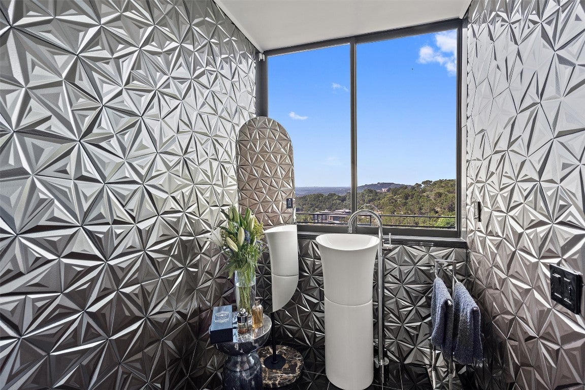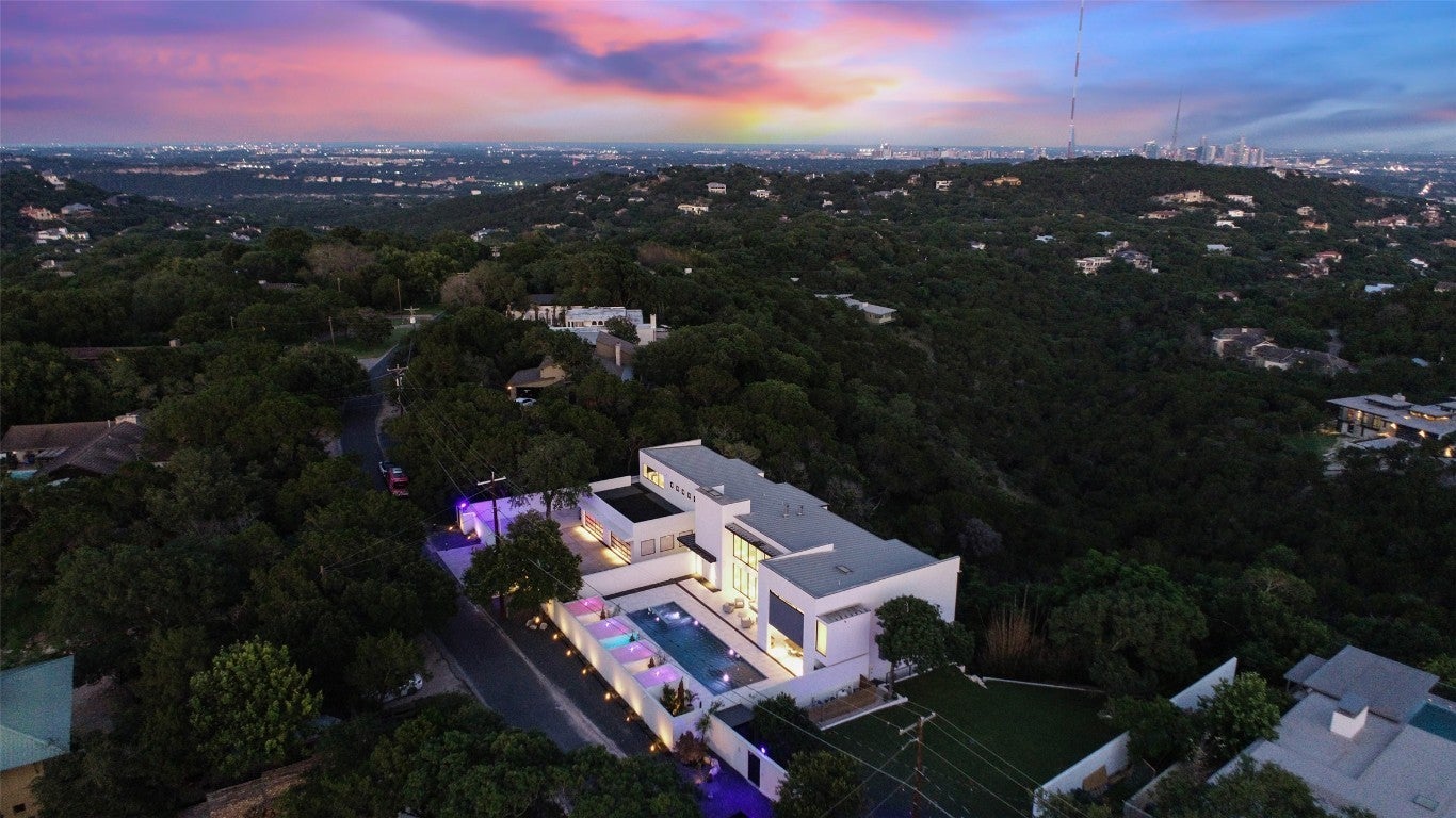 The pinnacle of modern luxury, this unparalleled contemporary estate has been exceptionally designed and extensively renovated. Nestled in the hills of Westlake Highlands and zoned to highly rated & highly sought-after Eanes ISD. Privately situated behind a stucco privacy wall, a gated entrance opens to reveal the impressive, stand alone estate that is 1501 Ridgecrest Dr. Walls of glass seamlessly integrate the expansive living and outdoor spaces and give way to breathtaking canyon views from every room. Ultra modern elegance meets functionality. A contemporary masterpiece, with the utmost attention to detail evident throughout. Design selections exude a modern sophisticated aesthetic (incl. Italian cabinetry, marble and stone throughout imported from Italy and Spain, Miele appliances, etc) and forward thinking, state-of-the-art home automation, security and A/V complete the spacious multilevel floor plan. Perfect for those that are seeking a private retreat of peace and serenity, those searching for amazing family space + those that love to entertain. The entire property is a showcase of stone and glass & black accent detail in every room offer a contrasting element, creating a striking statement against crisp, white walls and pops of chrome fixtures and accents. The main floor features a flex room, access to auto lounge & garage, great room, guest bath and the chef's kitchen is thoughtfully designed with an exquisite black stone center island and sleek black Italian cabinetry concealing state of the art Miele appliances. Accessibly by elevator or stairs, the upper level is thoughtfully designed - open to the main floor the primary suite is secluded to one wing & bedrooms, shared bath & bonus room in the other. The lower level features a wine lounge, home theater, full bath, & guest suite. Truly an exceptional property for the most discerning audiences, weaving contemporary design, home automation and breathtaking views to create a one-of-a-kind living experience.