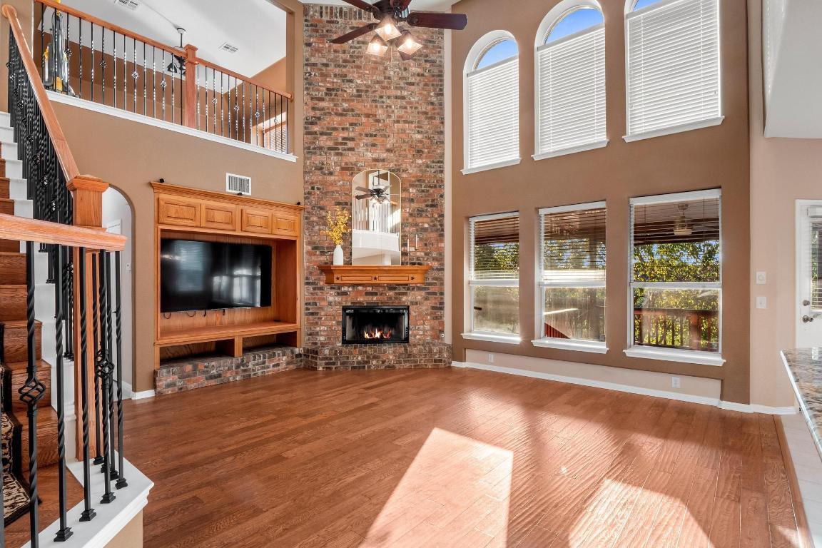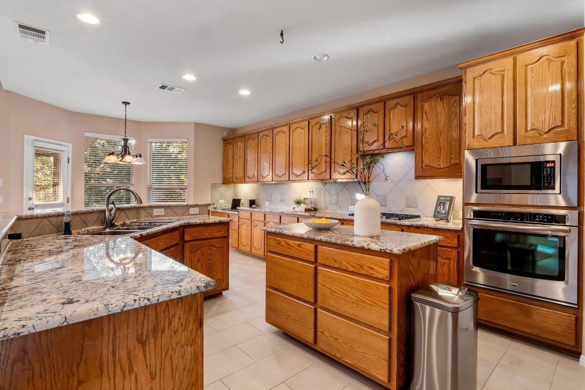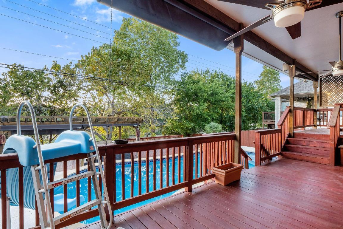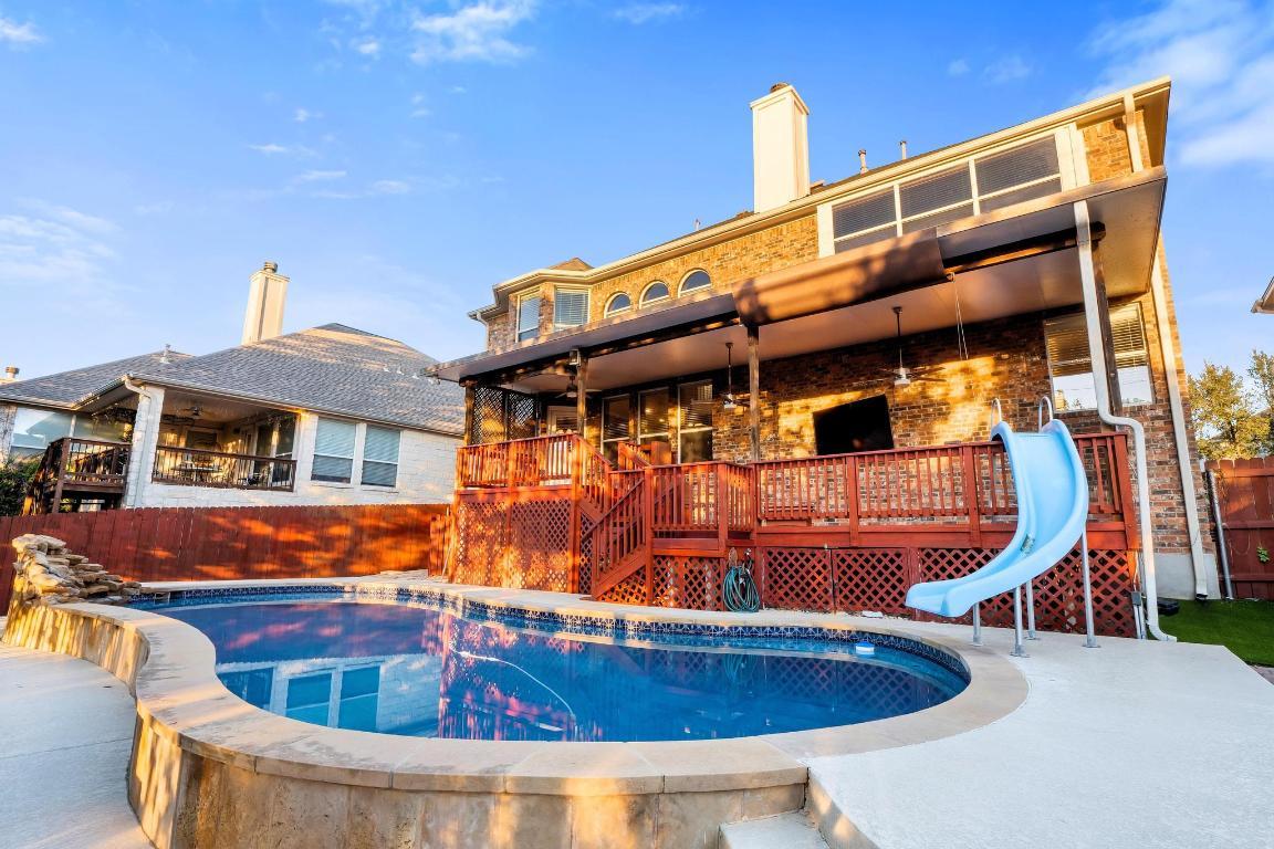 Experience luxury living in this stunning Cedar Park residence, thoughtfully designed for both elegance and entertaining. From the impressive curb appeal to the beautifully updated interiors, this home offers a perfect blend of style, comfort, and sophistication. The open floor plan showcases soaring ceilings, abundant natural light, and seamless flow between the living and dining spaces. The gourmet kitchen is an entertainer’s dream, featuring premium countertops, stainless steel appliances, custom cabinetry, and a spacious island ideal for gatherings. The primary suite offers a private retreat with a spa-inspired bath and generous walk-in closet, while additional bedrooms provide flexibility for family, guests, or a home office. Step upstairs to a private balcony where you can take in breathtaking Hill Country sunsets, a perfect place to unwind at the end of the day. Outdoors, the resort-style backyard is anchored by a sparkling pool, surrounded by lush landscaping and multiple areas to relax or entertain. The covered patio provides an inviting space for dining al fresco or enjoying evenings with friends and family. With its refined finishes, exceptional amenities, and elevated lifestyle, this home is truly a Hill Country gem.