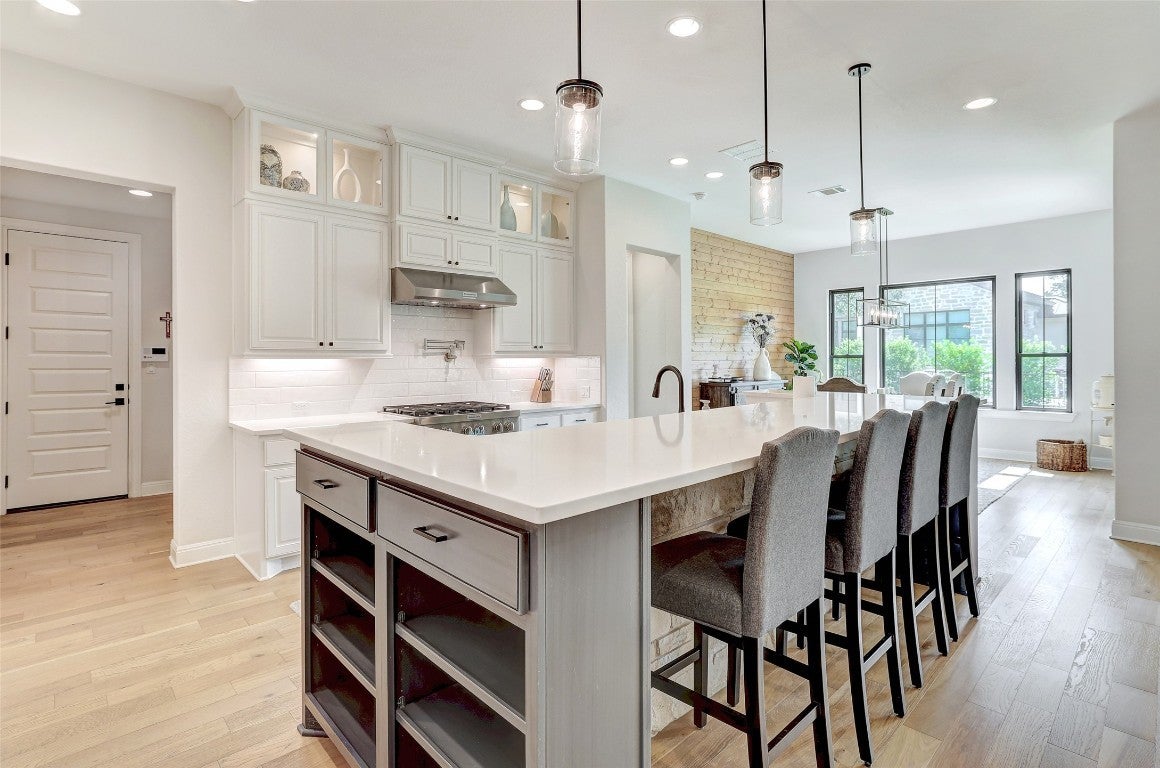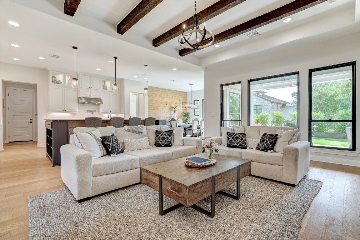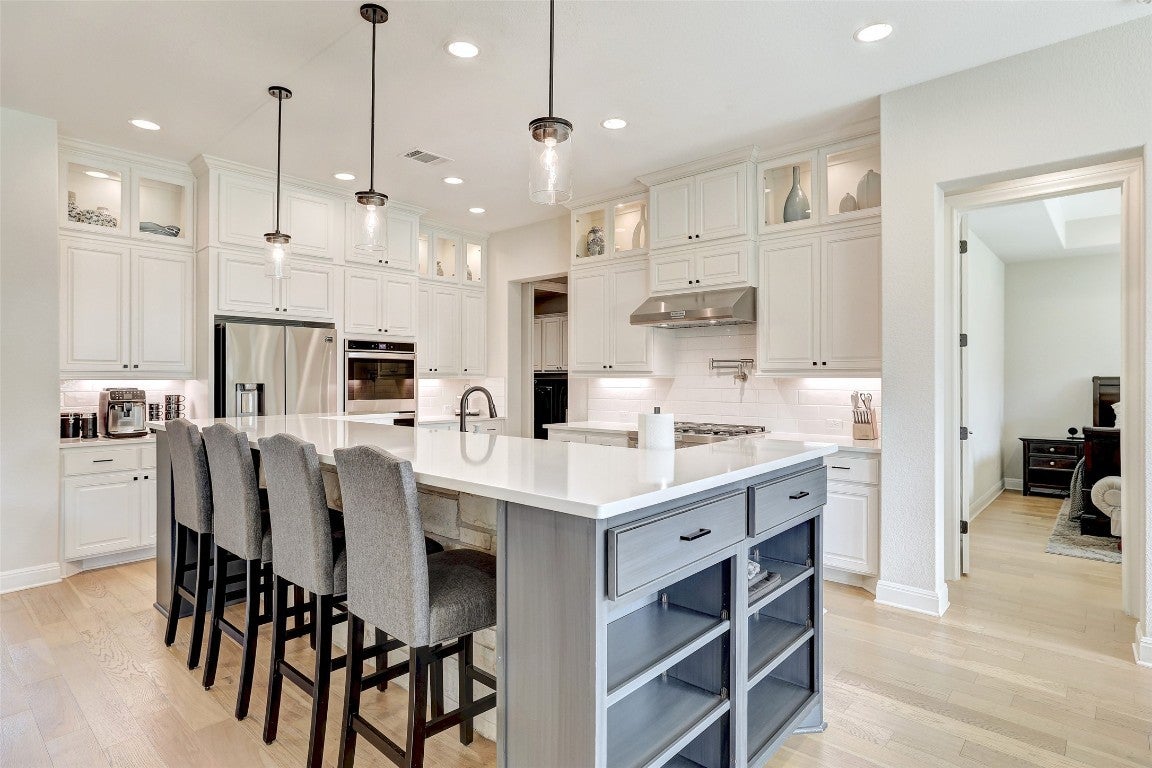 Luxury Living in Cimarron Hills – Resort-Style Golf Course Community Experience the pinnacle of the Hill Country luxury in the prestigious gated community of Cimarron Hills, where elegance meets resort-style living. Perfectly positioned on a beautifully treed lot next to a scenic walking trail, this exquisite one-story home offers access to an 18-hole Jack Nicklaus Signature Golf Course and world-class amenities including a private clubhouse, full-service spa, state-of-the-art fitness center, tennis and pickleball courts, and luxurious men’s and women’s locker rooms and lounges. Crafted with timeless style and lasting quality, this home features a durable metal roof and gorgeous Apex Oak flooring throughout most of the living spaces, combining warmth, elegance, and durability. The thoughtfully designed 3 or 4 bedroom, 2.5 bath layout includes a private dedicated office and a media room with a closet—easily adaptable as a 4th bedroom or versatile flex space w/closet. At the heart of the home, the chef’s kitchen impresses with Quartz countertops, a Bianca farmhouse sink, ceiling-height cabinetry with integrated lighting, double ovens, a 6-burner Kitchen Aid gas range with pot filler, and an incredible appliance bar inside a truly custom pantry. The spacious dining area and breakfast bar are ideal for everyday meals and entertaining. The family room is a showstopper with soaring beamed ceilings, a custom cocktail bar, and a stone fireplace, offering the perfect setting for both relaxing nights in and lively gatherings. The luxurious primary suite feels like a retreat, featuring a spa-style bath with a Bianca freestanding tub, separate shower, dual vanities, bidet, and an oversized walk-in closet. Throughout the home, custom penny gap accent walls add texture, charm, and architectural interest. Enjoy the best of Cimarron Hills lifestyle, just minutes from the historic Georgetown Square, where boutique shopping, wineries, top-rated dining, and local charm await.