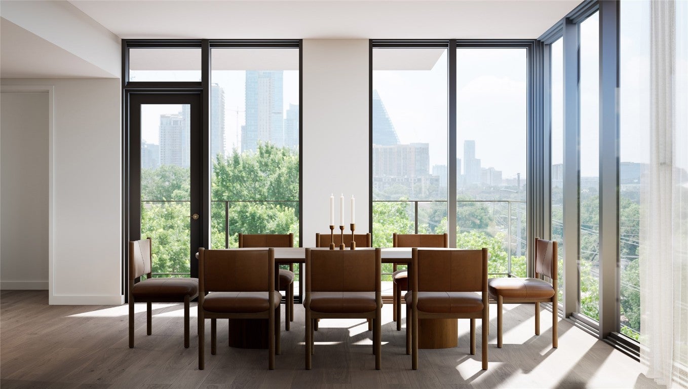 Residence 213 at The Belvedere offers panoramic southeast views of Lady Bird Lake, the Butler Hike and Bike Trail, and downtown Austin. Designed by KTGY Architects with interiors by Kim Lewis Design, this corner residence blends architectural sophistication with a rare connection to Austin’s most iconic outdoor spaces. Steps from Clarksville cafés and the energy of downtown, The Belvedere brings boutique mid-rise living to the heart of Old West Austin. A 24-hour attended lobby and concierge welcome residents home to an atmosphere of comfort and discretion. Landscaped by Nudge Design, the outdoor setting connects directly to the trail and lake, with shaded lounges, water features, and a resort-style pool anchoring the Wellness Level—complete with saunas, cold plunges, and a state-of-the-art fitness center. Additional spaces include an Owner’s Lounge, co-working suites, and a golf simulator, offering balance between work, wellness, and retreat. Inside, 2,340 square feet of open-plan living includes three bedrooms and three and a half baths. Finishes feature terrazzo and wood flooring, quartz surfaces, Bosch appliances, and spa-inspired baths curated by Kim Lewis Design. Type I concrete construction with acoustic glass ensures enduring quality and quiet comfort. Experience Austin’s lake-to-city lifestyle from a landmark Old West Austin address. Delivering Q3 2027. Limited-time Founders Program offers early buyers preferred pricing, a Kim Lewis Design consultation, and exclusive customization opportunities through Jan 30, 2026. Sales Gallery located at 504 Oakland Ave.