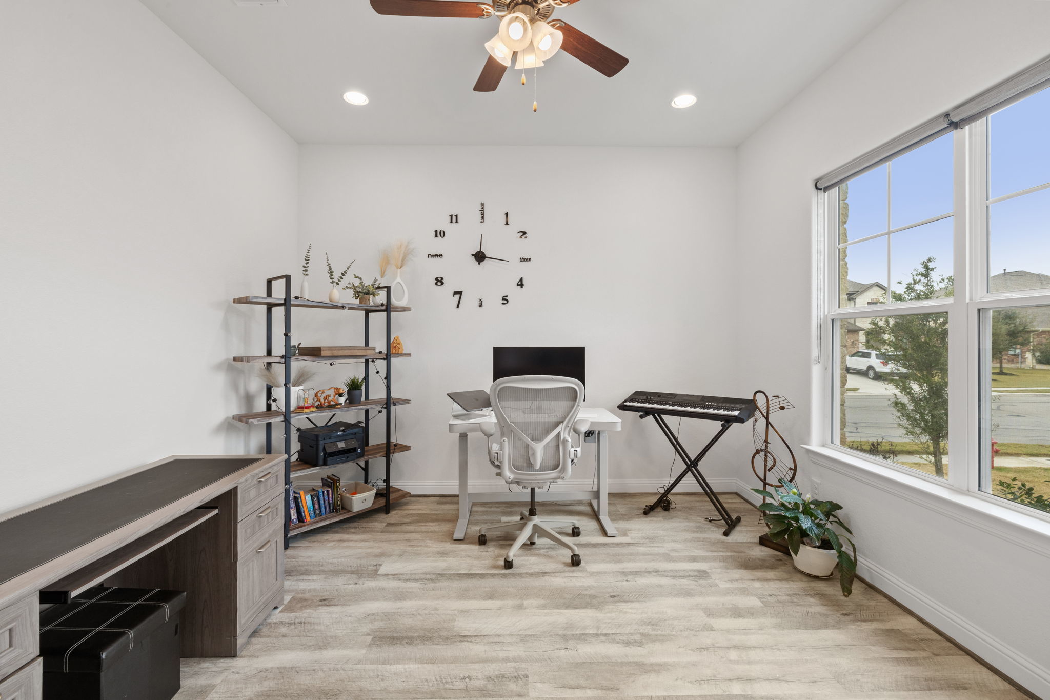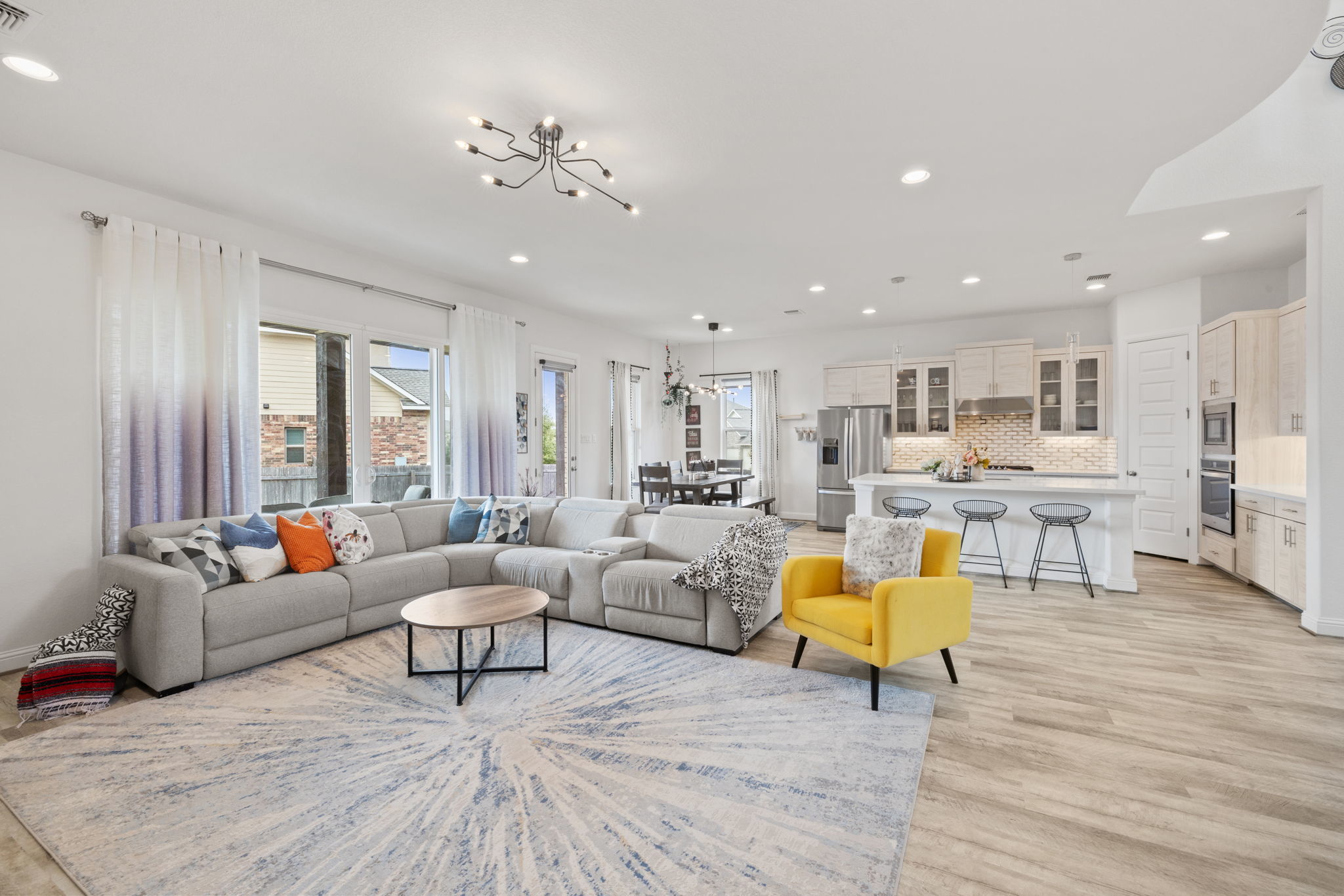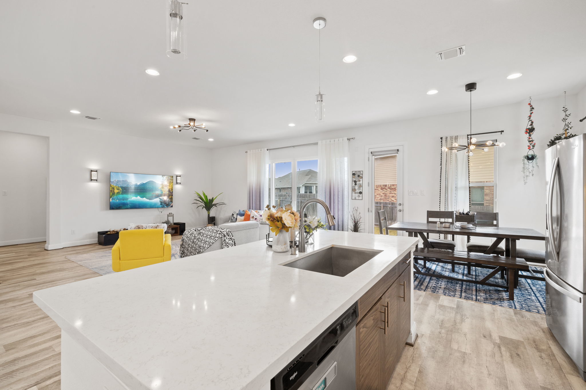 Welcome to 4301 Trey Edsel Dr in Pflugerville — a beautifully designed 5-bedroom, 4-bath home perfectly situated on a spacious corner lot in the highly sought-after Blackhawk neighborhood. With soaring high ceilings, walls of windows, and an open, airy layout, this home is filled with natural light and thoughtful upgrades throughout. The chef’s kitchen is the heart of the home, featuring a custom marble backsplash, stainless steel appliances, gas cooktop, oversized island, and seamless flow into the expansive living room — ideal for entertaining and everyday living. Luxury vinyl plank flooring runs throughout the downstairs living areas, with carpet reserved for the bedrooms and upstairs spaces for added comfort. A rare downstairs mother-in-law suite with a full bathroom offers privacy and flexibility for guests or multigenerational living. The dedicated home office provides the perfect work-from-home space. Upstairs, you’ll find a large loft/game room along with three generously sized bedrooms — two connected by a convenient Jack-and-Jill bath and a third with its own private bathroom. Step outside to enjoy the large fenced backyard and covered patio with ceiling fans, creating the perfect setting for outdoor gatherings year-round. Residents enjoy fantastic community amenities that are all a short walk from the house and include scenic walking trails, a resort-style pool, fully equipped gym, and playgrounds — offering something for everyone. This exceptional home combines space, style, and functionality in one of Pflugerville’s most desirable communities. Don’t miss the opportunity to make it yours!