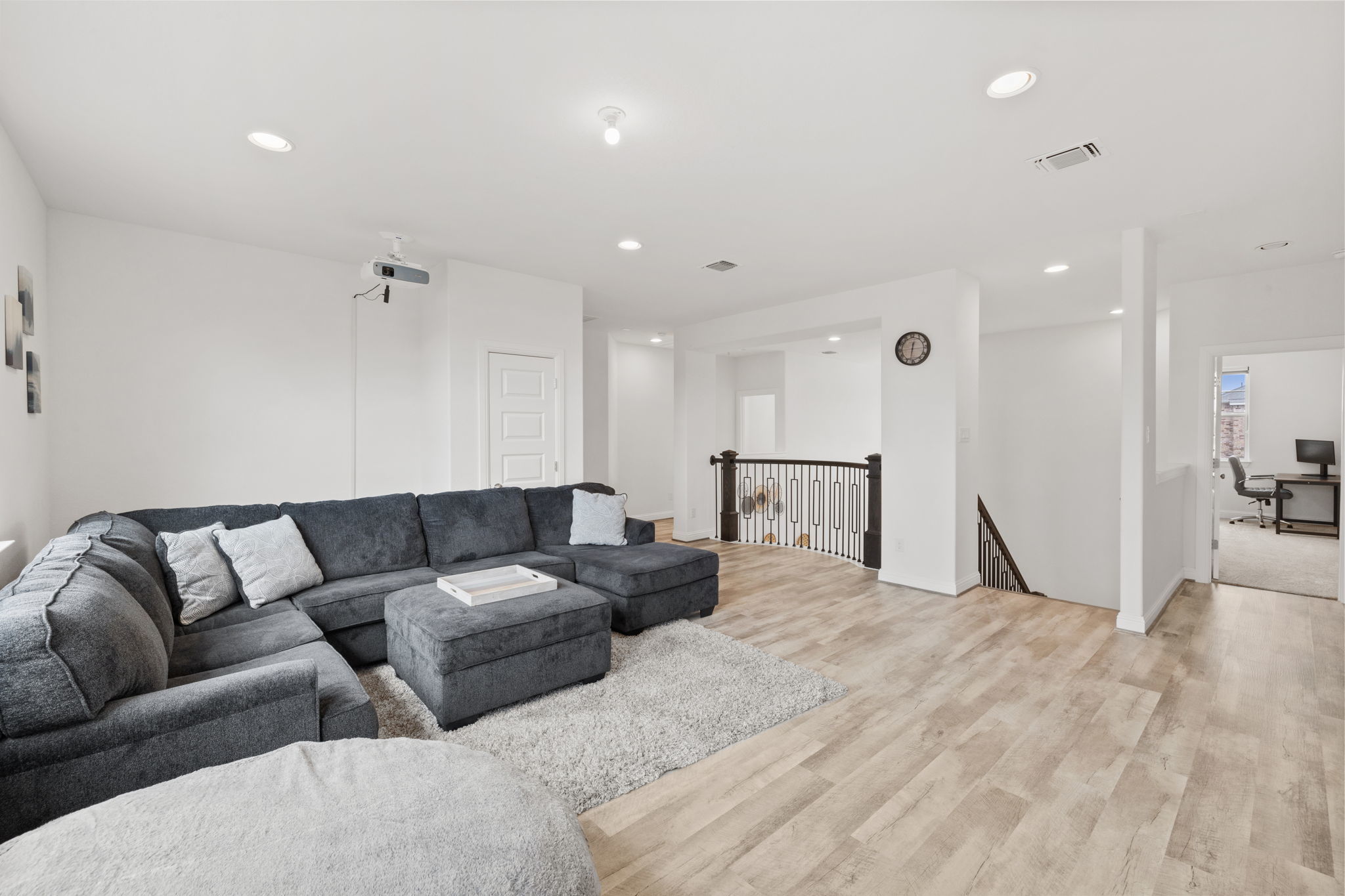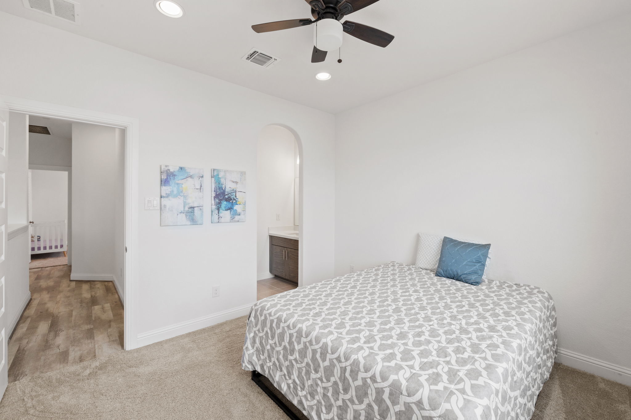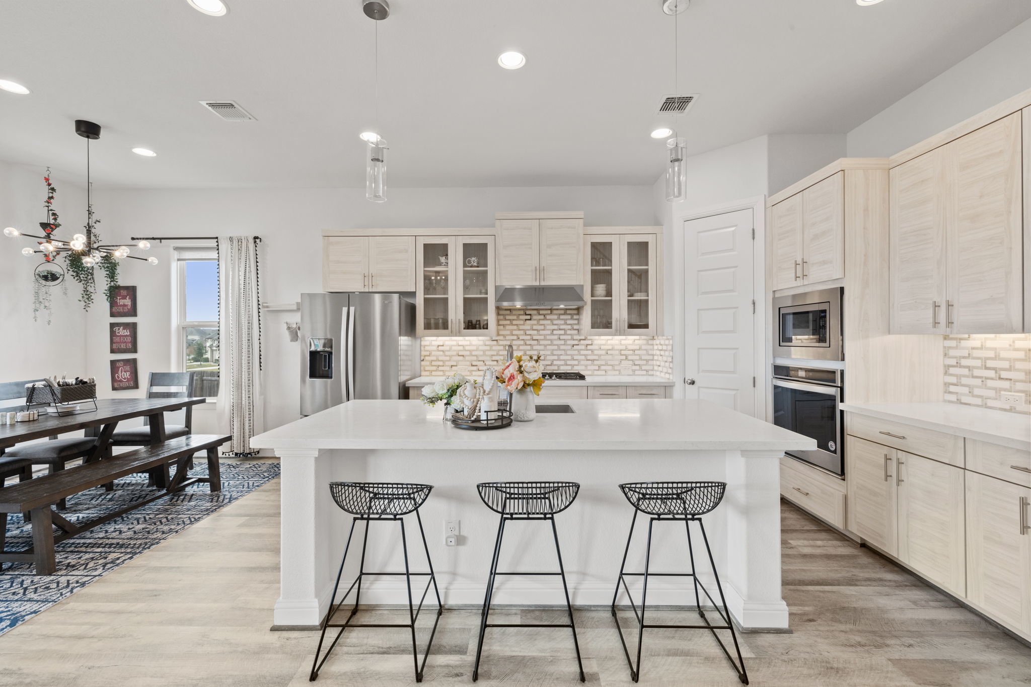 Welcome to 4301 Trey Edsel Dr in Pflugerville — a beautifully designed 5-bedroom, 4-bath home perfectly situated on a spacious corner lot in the highly sought-after Blackhawk neighborhood. With soaring high ceilings, walls of windows, and an open, airy layout, this home is filled with natural light and thoughtful upgrades throughout. The chef’s kitchen is the heart of the home, featuring a custom marble backsplash, stainless steel appliances, gas cooktop, oversized island, and seamless flow into the expansive living room — ideal for entertaining and everyday living. Luxury vinyl plank flooring runs throughout the downstairs living areas, with carpet reserved for the bedrooms and upstairs spaces for added comfort. A rare downstairs mother-in-law suite with a full bathroom offers privacy and flexibility for guests or multigenerational living. The dedicated home office provides the perfect work-from-home space. Upstairs, you’ll find a large loft/game room along with three generously sized bedrooms — two connected by a convenient Jack-and-Jill bath and a third with its own private bathroom. Step outside to enjoy the large fenced backyard and covered patio with ceiling fans, creating the perfect setting for outdoor gatherings year-round. Residents enjoy fantastic community amenities that are all a short walk from the house and include scenic walking trails, a resort-style pool, fully equipped gym, and playgrounds — offering something for everyone. This exceptional home combines space, style, and functionality in one of Pflugerville’s most desirable communities. Don’t miss the opportunity to make it yours!