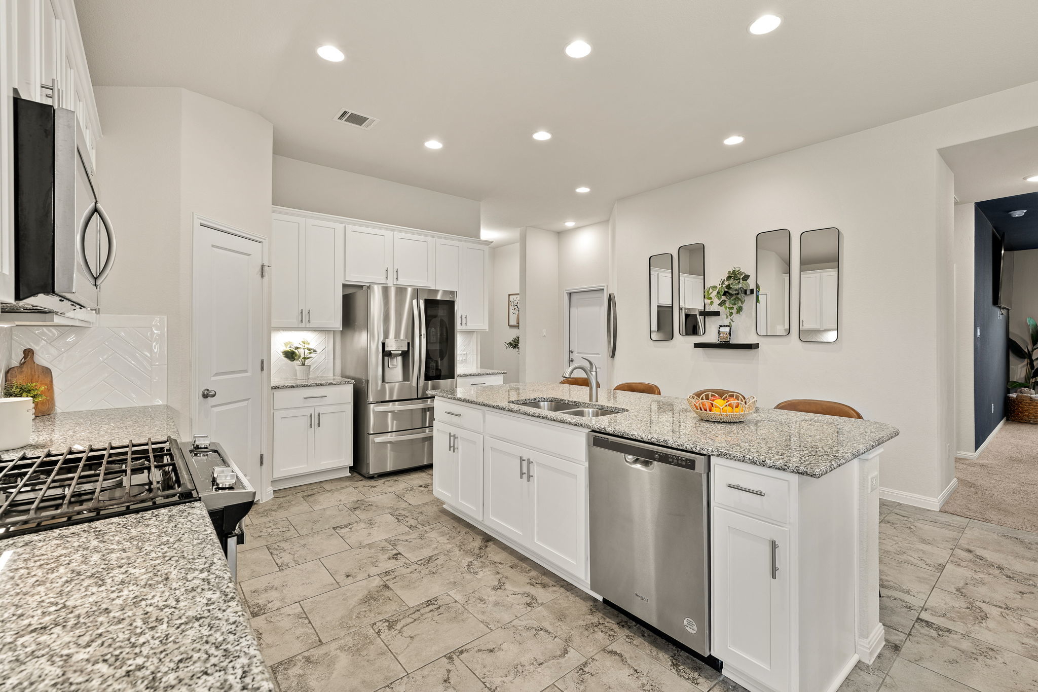 Dryer, Dishwasher, Gas Cooktop, Refrigerator, Washer, Built-In Gas Range