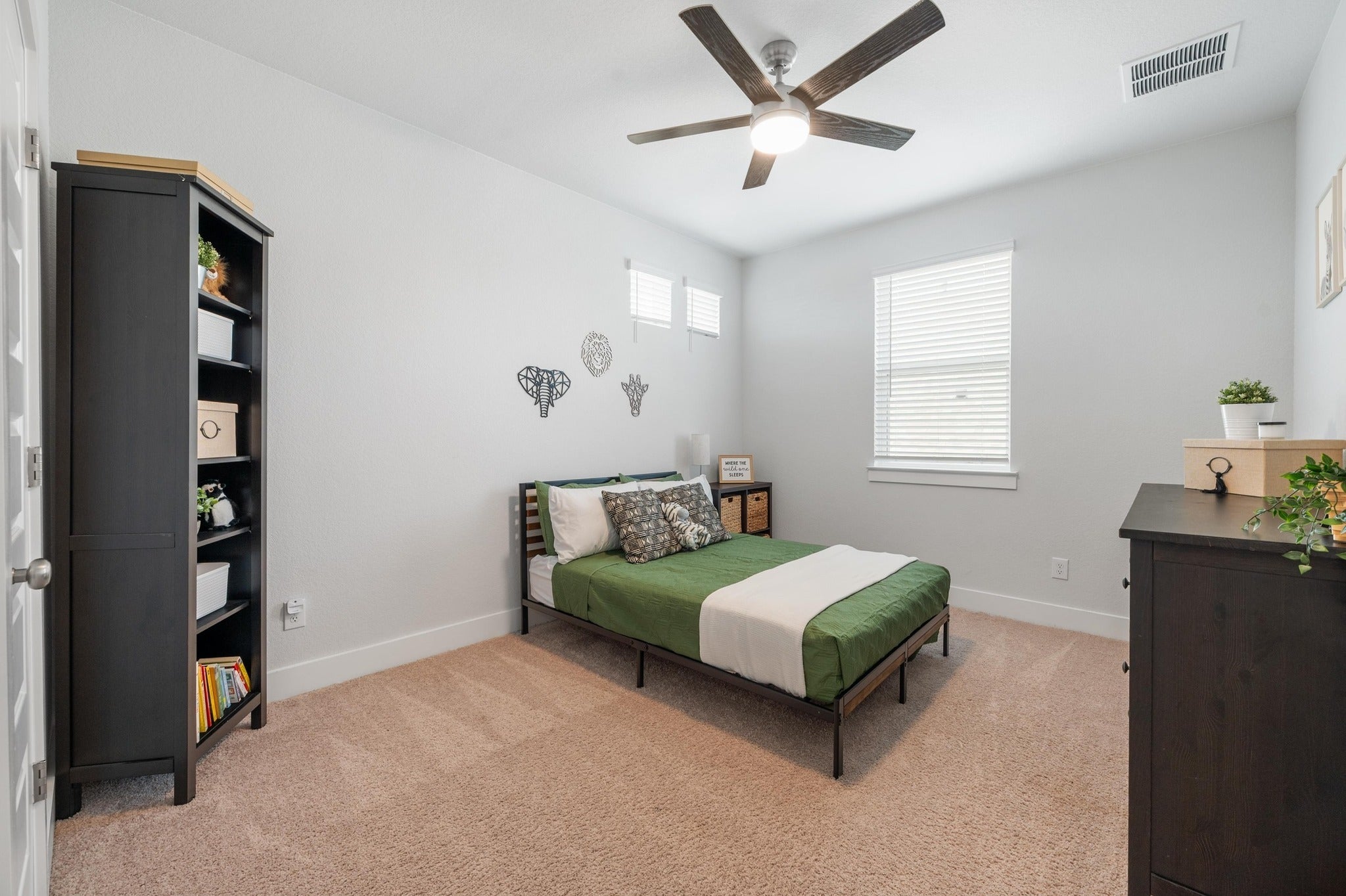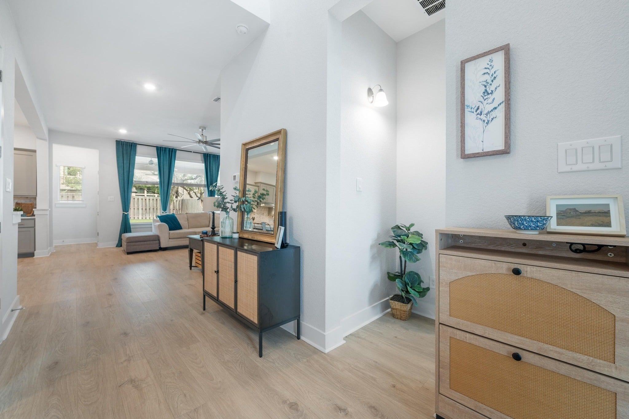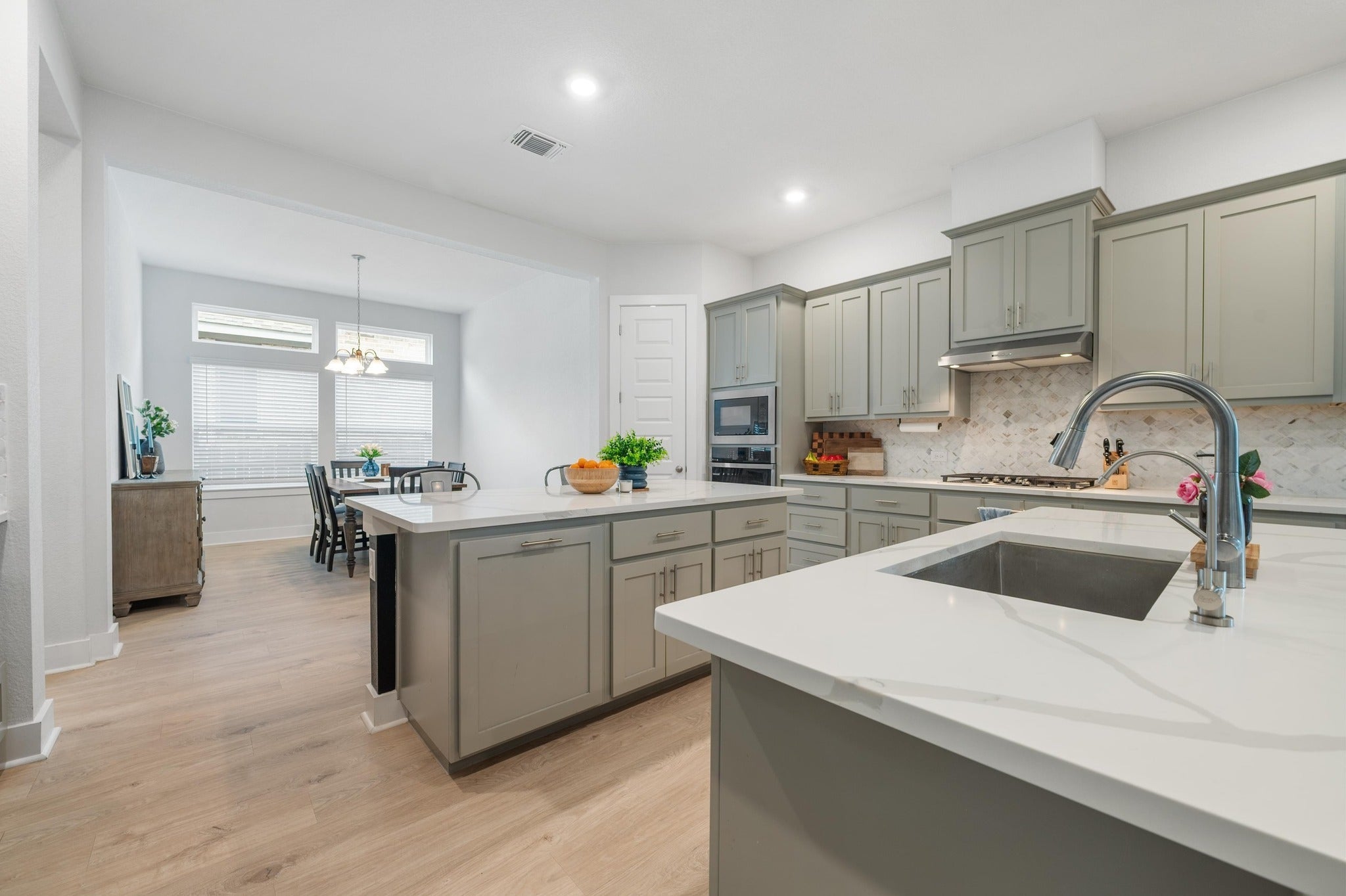 Where Life Feels Bigger and Beautifully Lived Tucked at the end of a quiet culdesac in Leander’s award winning Bryson community, this stunning 5 bedroom, 4.5 bathroom home offers 3,064 square feet of intentional design, comfort, and effortless style. The showpiece is the rare double island kitchen, creating two natural gathering spaces for holidays, homework, charcuterie nights, or lingering Sunday mornings with coffee and conversation. Abundant cabinetry, generous prep space, and seamless flow into the living and dining areas make entertaining feel easy and everyday living feel elevated. The main level blends luxury and flexibility with a serene primary suite featuring a spa inspired bath, dual vanities, soaking tub, walk in shower, and a spacious walk in closet. A private secondary bedroom with its own ensuite is ideal for guests, a home office, or multigenerational living, offering privacy without sacrificing connection. Upstairs, a spacious game room becomes the hub for movie marathons, game day celebrations, or study sessions. Oversized secondary bedrooms with walk in closets provide comfort and room to grow, including one with a private ensuite perfect for teens or long term visitors who appreciate their own retreat. Step outside to a backyard designed for easy living. Maintenance free turf keeps it green year round, while the covered patio invites outdoor dining, relaxed evenings, and weekend gatherings with friends. Life in Bryson means more than beautiful homes. Enjoy a full time activity director, resort style amenities, scenic trails, parks, year round events, and a dog park just steps away. Located near St. David’s Hospital, Northline, Cap Metro rail and bus lines, top rated Leander ISD schools, plus endless shopping and dining, this home offers the ideal balance of tranquility and accessibility. Beautifully maintained and thoughtfully designed, this Bryson gem is more than a home. It is where memories are made and the next chapter begins.