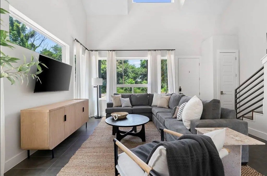 Welcome to your East Austin retreat! Tucked away on a private cul-de-sac, this modern home seamlessly blends style, space, and convenience. Natural light floods the open-concept design, highlighting the gorgeous tile and hardwood floors, soaring ceilings, and a chef’s kitchen equipped with quartz countertops, a gas cooktop, and a spacious island—perfect for cooking and entertaining. The first-floor owner’s suite offers a private escape with double vanities, a walk-in shower, and a generously sized closet. Upstairs, two additional bedrooms, a full bath, and a versatile second living area provide plenty of space for a home office, playroom, or lounge. Step outside to your private backyard, where a covered patio, firepit, and grill create the perfect setting for relaxation or gatherings. Prime Location! Walk to ACC, public transit, HEB, restaurants, and coffee shops. Plus, enjoy easy access to downtown, the airport, and everything East Austin has to offer!