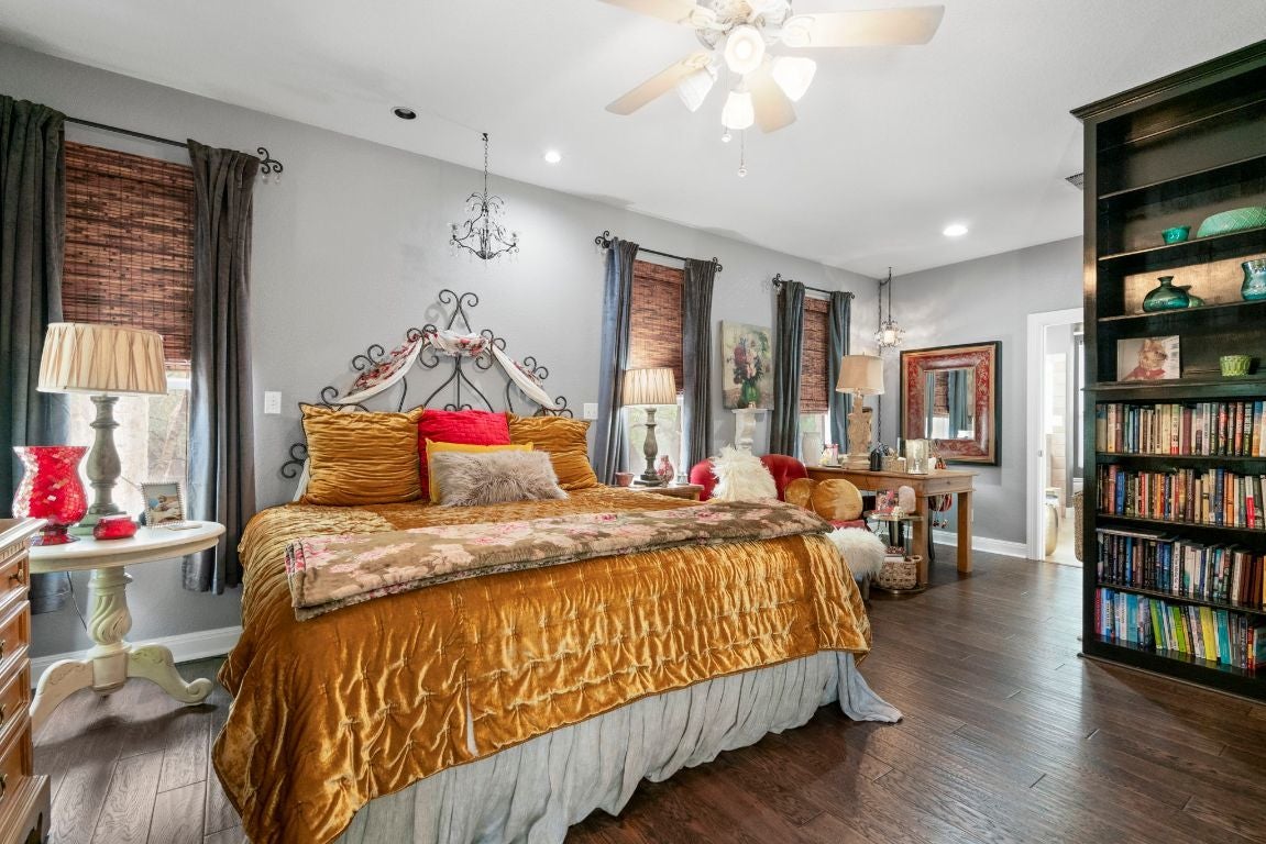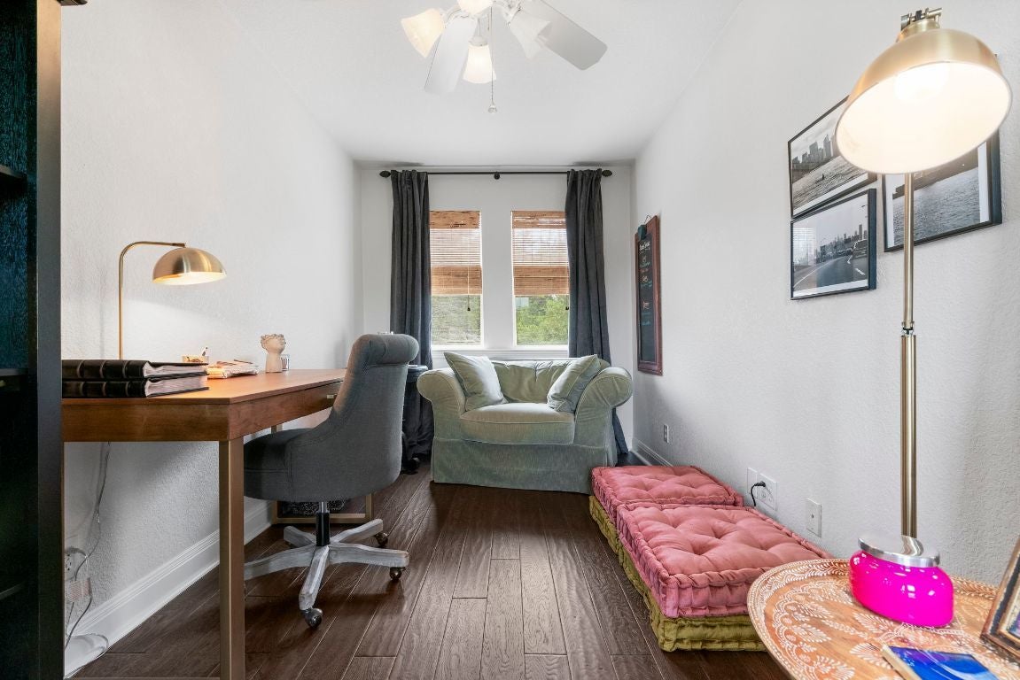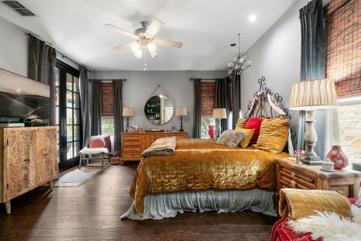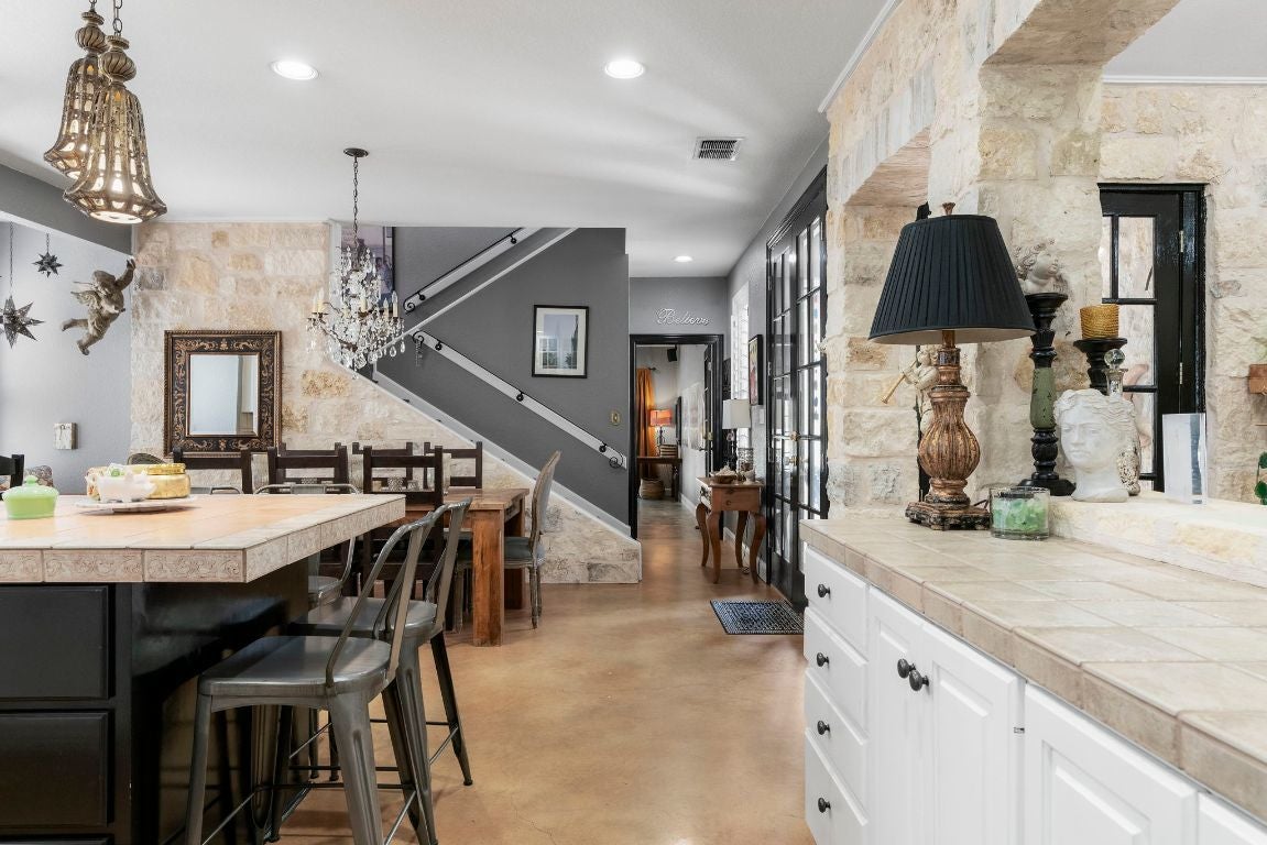 *SELLERS OFFERING $10K CREDIT TO BUYER TOWARDS CLOSING COSTS/ OR RATE BUY-DOWN, ETC* **SEE UPGRADES LIST IN ATTACHED DOCS/ LAST PHOTO IN MLS** Gorgeous Hill Country living in SW Austin with your own private backyard oasis featuring an inground pool and expansive entertainer’s patio. This elegant luxury home sits on over 1.5 acres of tree-filled land with a circular driveway that forks to the back of the property, where you’ll find a detached two-car garage and spacious driveway. Stained concrete flooring, recessed lighting, and a Texas-rustic-meets-modern-chic design add to the charm. The kitchen is the heart of the home, built for the home chef with a center prep island, wraparound bar seating, and a spacious dining area under an ornate chandelier. Enjoy sleek stainless steel appliances, a range set in a stone grotto, windowed cabinetry stacked to the ceiling, and extensive built-in pantry storage. Stay connected via a stone-framed opening to the living room. The main floor also hosts a deluxe primary suite with a spa-like bath and dual walk-in closets, plus a bonus flex living area with a bar, both with walk-out access to the back. Upstairs you will find two well-sized secondary bedrooms, a large full bath, and a home office with a charming terrace. Outdoor living shines with a sprawling fenced courtyard, sparkling pool, shaded gathering areas, and gardens. Convenient to retail, dining, and HEB at Belterra. Zoned to Baldwin Elementary, Small MS, and Bowie HS. No HOA, low 1.56% tax rate. Easy access to 290 and just 18 miles to Downtown Austin.