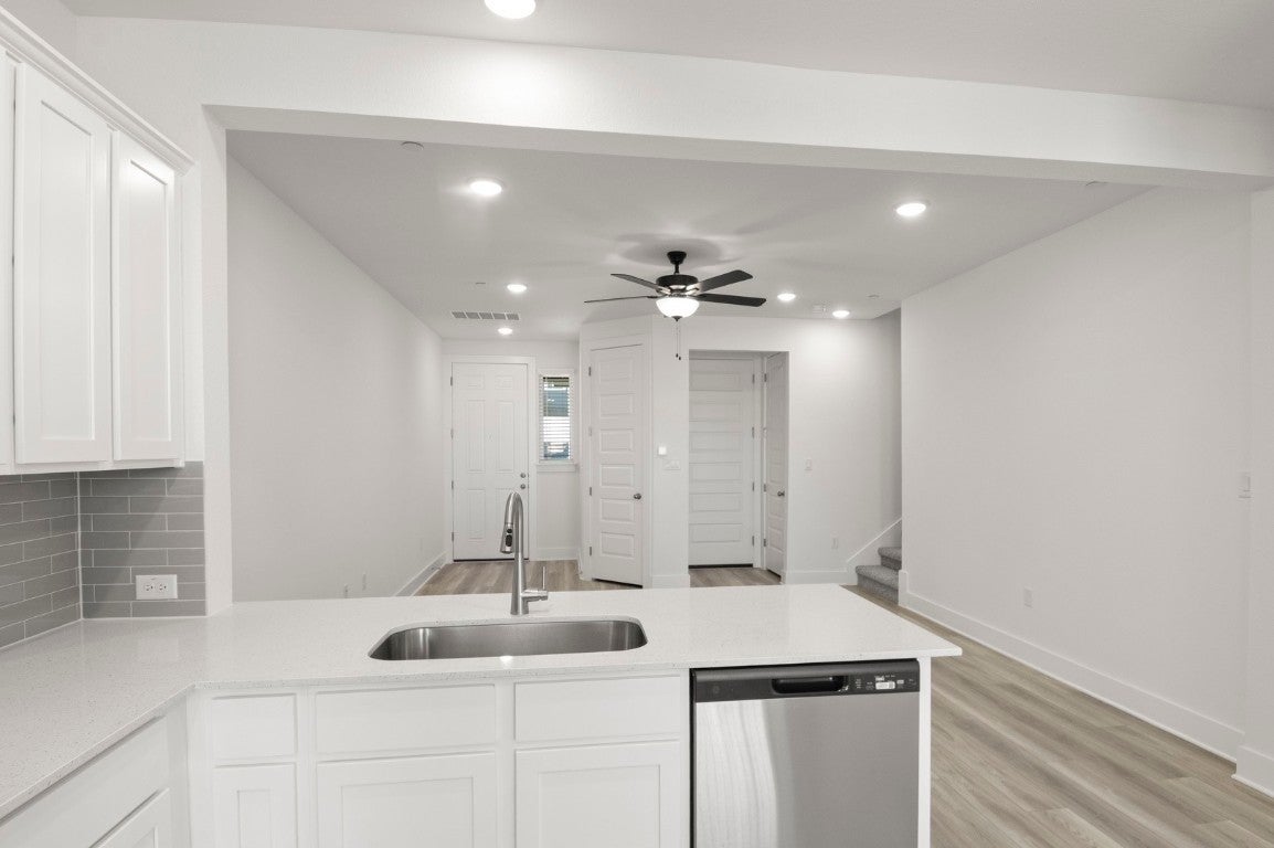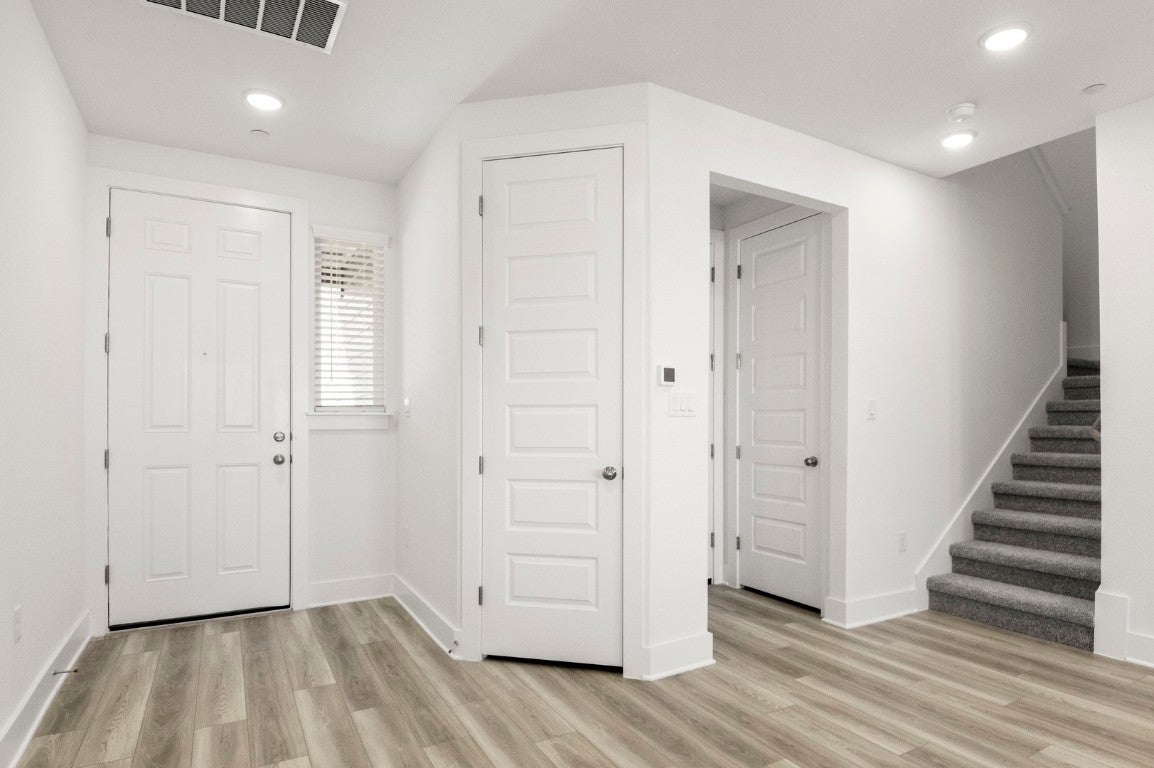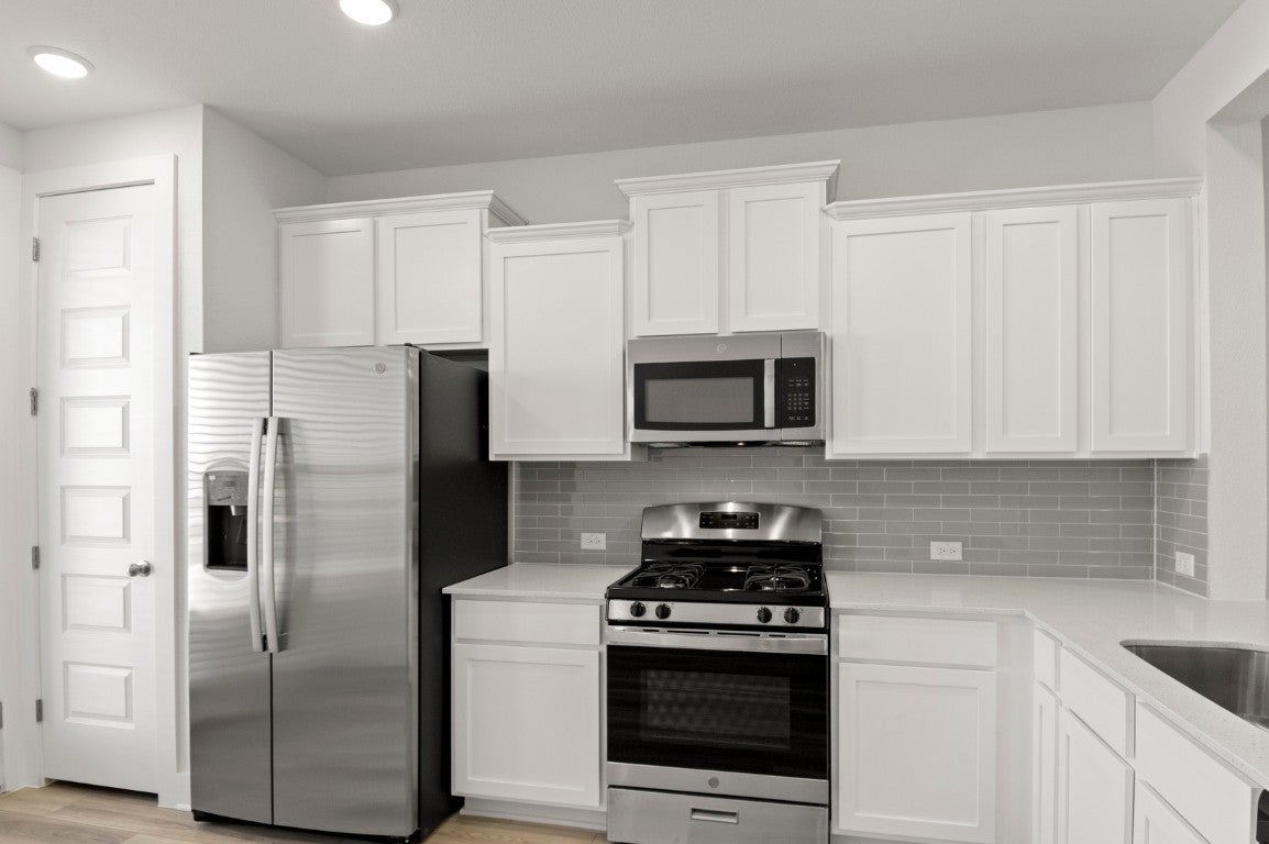 MLS# 6435508 - Built by Pacesetter Homes - Ready Now! ~ Welcome to 18909 Schultz Lane, Unit 1002, a move-in ready townhome in the heart of Round Rock that showcases modern finishes and thoughtful upgrades throughout. This beautifully maintained home offers vinyl plank flooring for a clean, contemporary look, along with blinds already installed and a refrigerator included for added convenience. The spacious primary suite features a double vanity and a sleek walk-in shower, creating a comfortable private retreat. Additional highlights include a walk-in attic and extra storage room, a water softener loop, and a two-car garage providing ample space for storage and parking. Designed for both style and functionality, this townhome delivers low-maintenance living with modern comforts in a highly desirable location.
