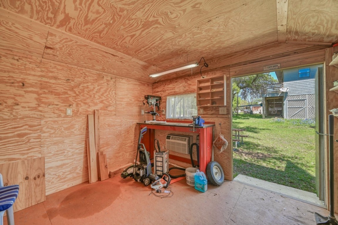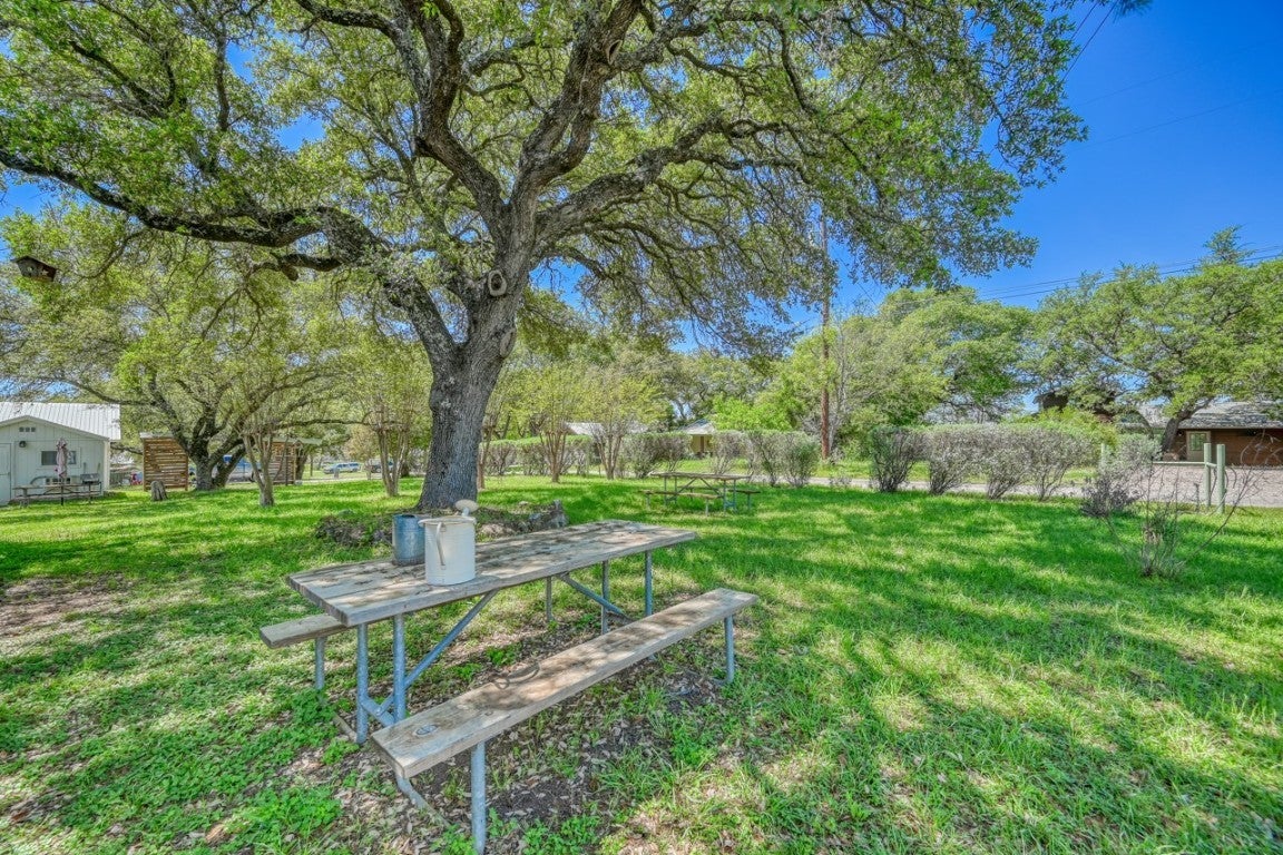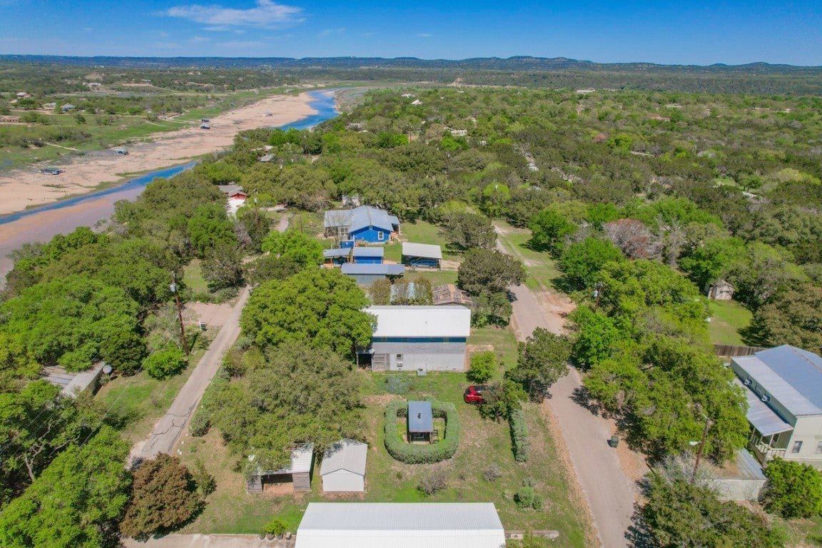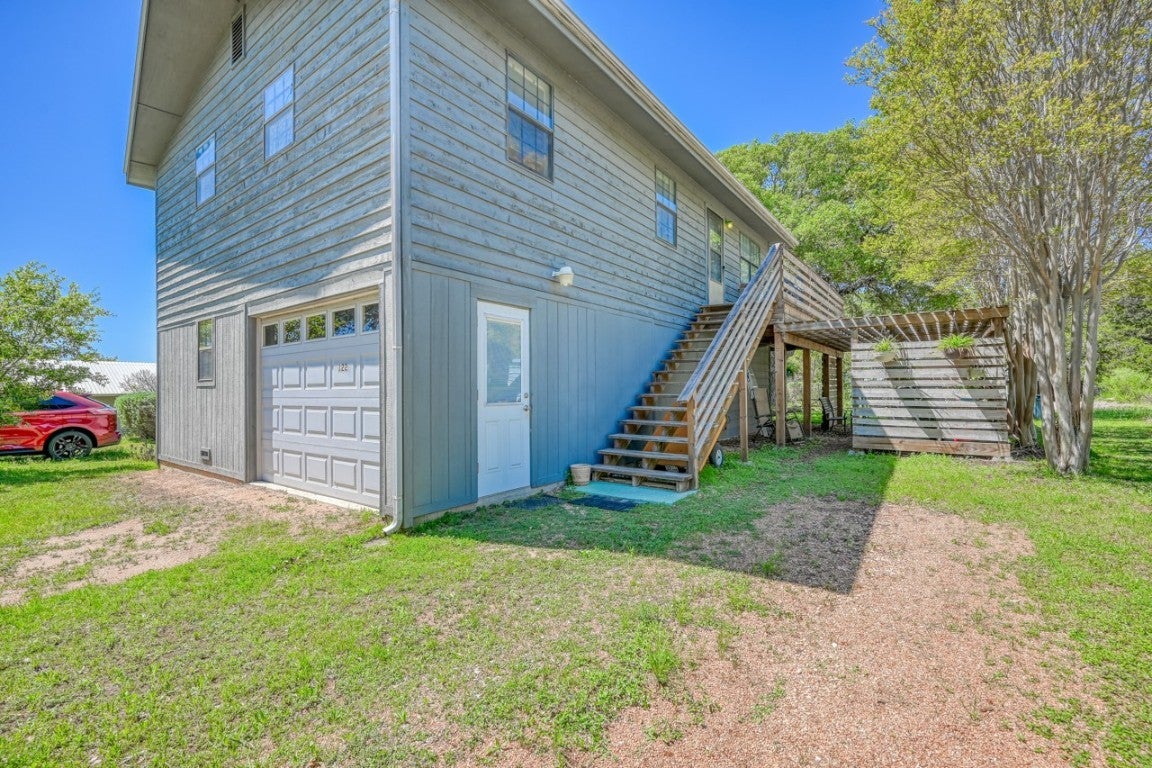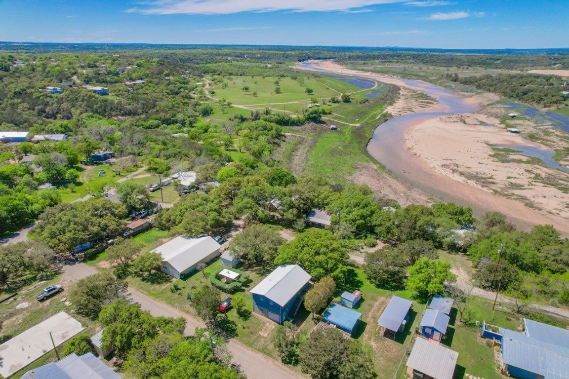 Discover the lake lifestyle with Lake Travis living in this custom home, never on the market before, in the quiet community of Eagle's Bluff, Spicewood, TX. This home may make an excellent multi-generational option. Downstairs boasts an open large area with window/wall ac and electric heater, laundry/kitchenette, full bathroom, and additional room that is referenced as the third bedroom, alongside the one-car garage. Ascend upstairs to find the main living and dining, full kitchen, two bedrooms, and full bathroom. Large balcony extends across the back of the house. Tranquil setting is complemented by a private screened chiminea area for lounging and relaxing. Storage building/workshop is perfect for the hobbyist and attached to the two-car carport. This striking residence is perched on two generously sized lots, presenting a unique opportunity to own a piece of paradise with unparalleled potential for customization and expansion. With its blend of comfort and access to nature's finest, it's poised to be the backdrop for your most cherished moments. Welcome to your Lake Travis sanctuary, where every day feels like a getaway. This property has tons of opportunities and is priced to sell. Check it out now before it is gone!