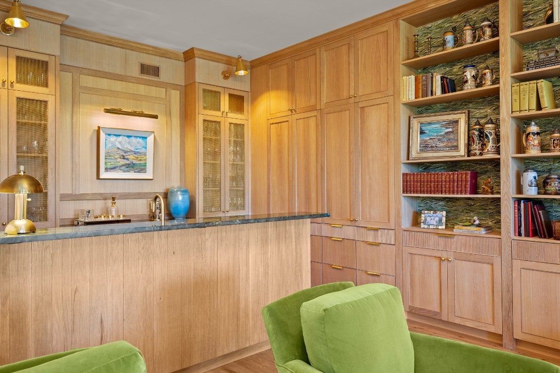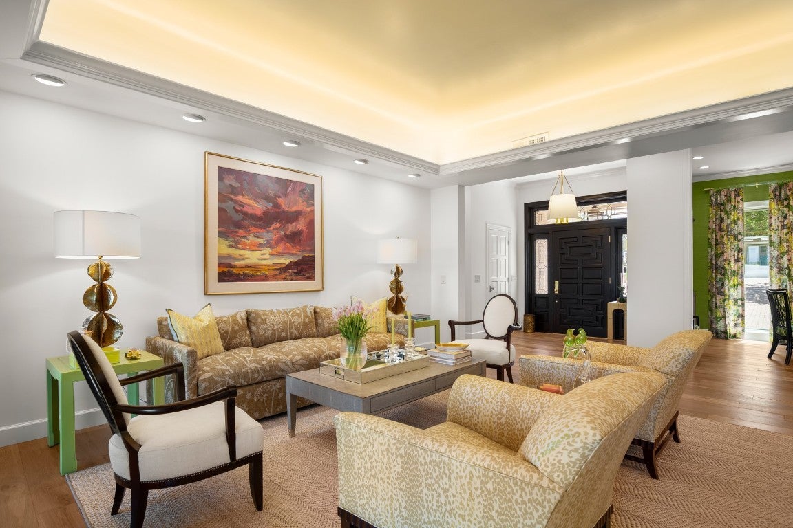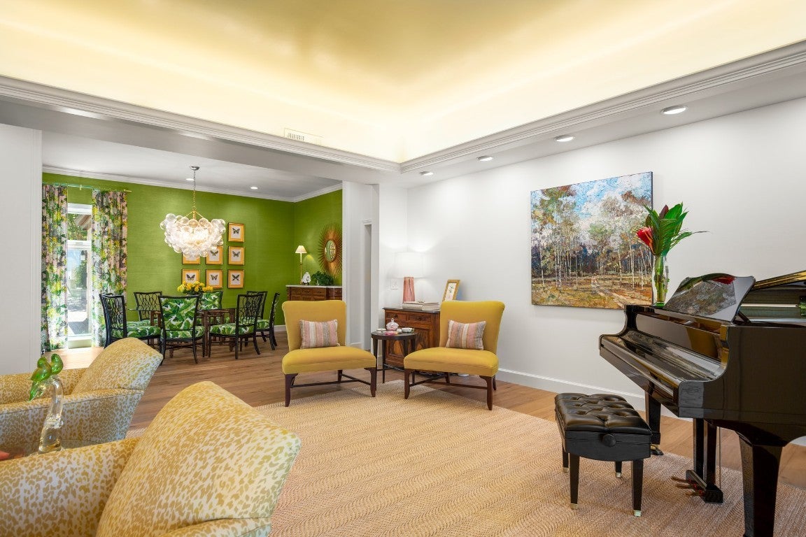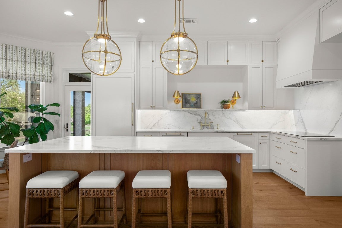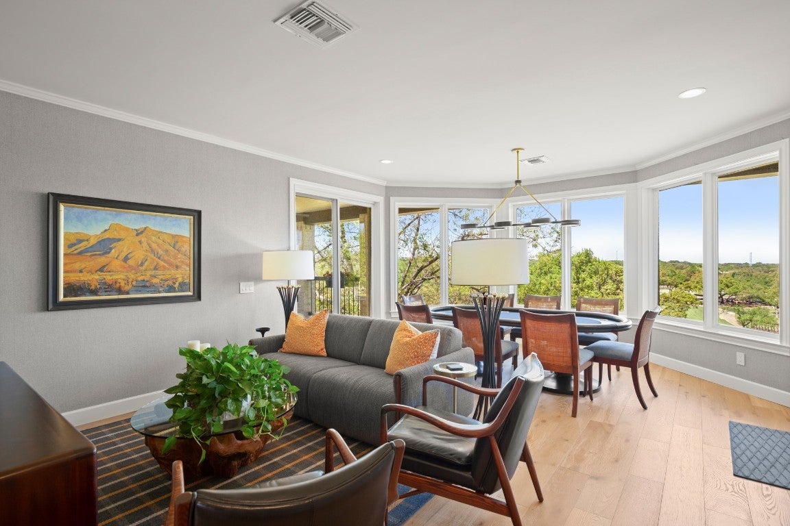 Wake up every morning in your own Palm Beach-inspired golf resort. This picturesque traditional family home has been renovated to perfection and sits on a private lot nestled in a cul-de-sac and on fairways #13 and #14 of The Hills of Lakeway golf course. Flawless interior design touches in every room, this vibrant family home is the ideal property for those seeking stunning views and quick access to the course and community clubhouse. This colorful two-story home features four bedrooms, four full and two half baths. A gourmet kitchen in the center of the home offers panoramic views and a breakfast nook overlooking the pond. The spacious primary bedroom on the first level includes breathtaking views of the course with a private fireplace, lounge area, and large walk-in closet and shower. There are two light-filled living areas downstairs, with a fireplace and formal dining, and an elevator to the second level, where the airy designs and classical details for each space continue. The second primary suite upstairs features a private balcony overlooking endless views of the greens. There are also two additional bedrooms on the second level, including an optional living/game room featuring a wet bar, and a study. Outside, the impressive driveway leads to a spacious two-car and golf cart garage, along with an attached workshop and garden room. The oasis-like pool is surrounded by lush greenery and opulent oak trees that offer additional privacy and natural ambience. Absolutely brimming with old-world glamor and sophistication with a modern twist, this home is sure to transport you to your own personal paradise!
