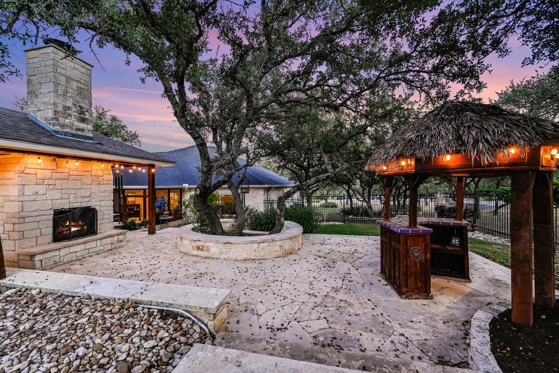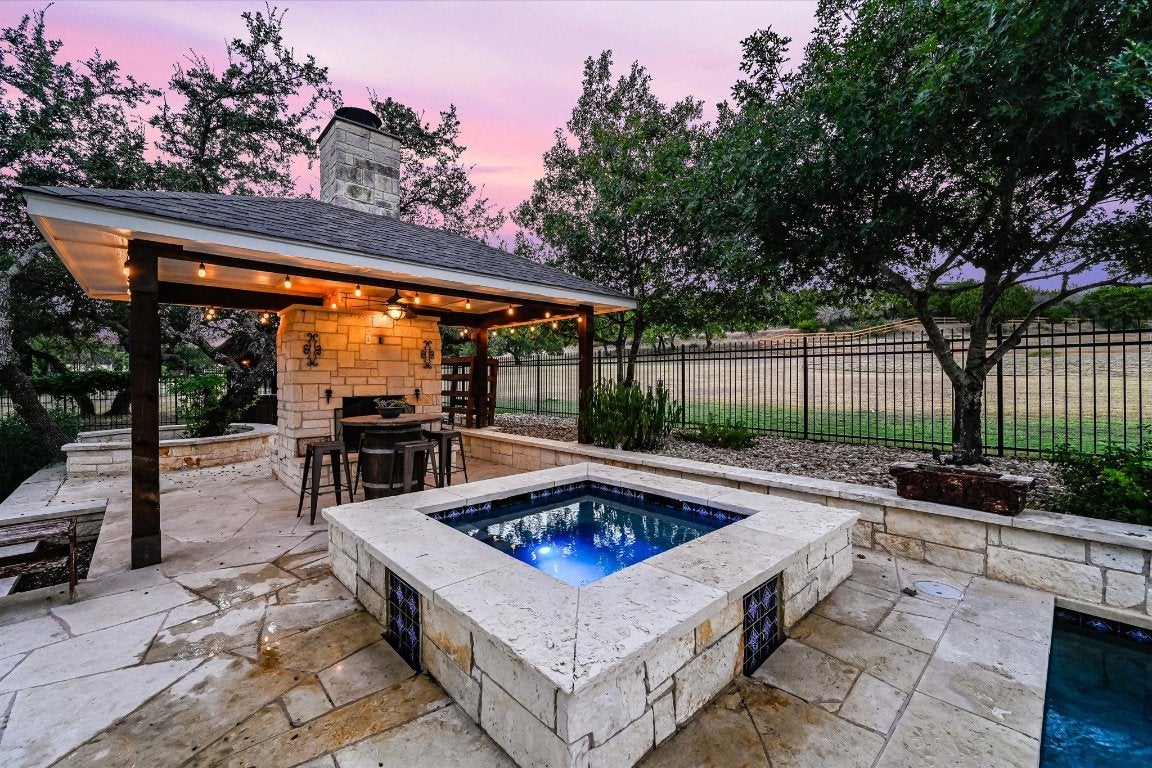Welcome to refined Hill Country living in the prestigious gated community of La Ventana. This elegant single-story residence offers the perfect balance of luxury, comfort, and Texas charm—set on a sprawling 1.86-acre flat lot w/ mature trees, open views, and serene surroundings. The home features five spacious bedrooms and three bathrooms, thoughtfully designed across one level for ease and flow. At its heart is the fully remodeled kitchen, boasting quartz countertops, high-end stainless steel appliances, custom cabinetry, & a large breakfast bar. Every detail reflects quality craftsmanship & timeless style, making it a true centerpiece for both cooking & gathering. Outdoor living is at its best here. A huge screened-in back porch opens to a sprawling patio that wraps around the sparkling pool, hot tub, & outdoor fireplace. Whether hosting friends or enjoying a quiet evening under the stars, this space offers the ultimate retreat. Covered porches at the front & back further enhance the seamless indoor-outdoor lifestyle. Life in La Ventana is more than a neighborhood—it’s a community designed for relaxation & recreation. Amenities include a clubhouse with indoor and outdoor gathering spaces, fitness room, and pavilion with fireplace, along with three resort-style swimming pools and a spa. Residents also enjoy tennis courts, a sand volleyball court, putting green, driving range, children’s play areas, and horseback riding trails throughout the property. In true Texas tradition, La Ventana even offers ownership in its iconic longhorn herd. Perfectly located, the home is just 45 minutes from Austin and 10 minutes to the heart of Dripping Springs, w/ easy access to natural swimming holes, award-winning wineries, craft breweries, distilleries, scenic parks, trails, & lakes. Add in low tax rates & highly ranked public schools, & 786 Ranchers Club Lane becomes more than a home—it’s a lifestyle. A private Hill Country retreat where every day feels like vacation.