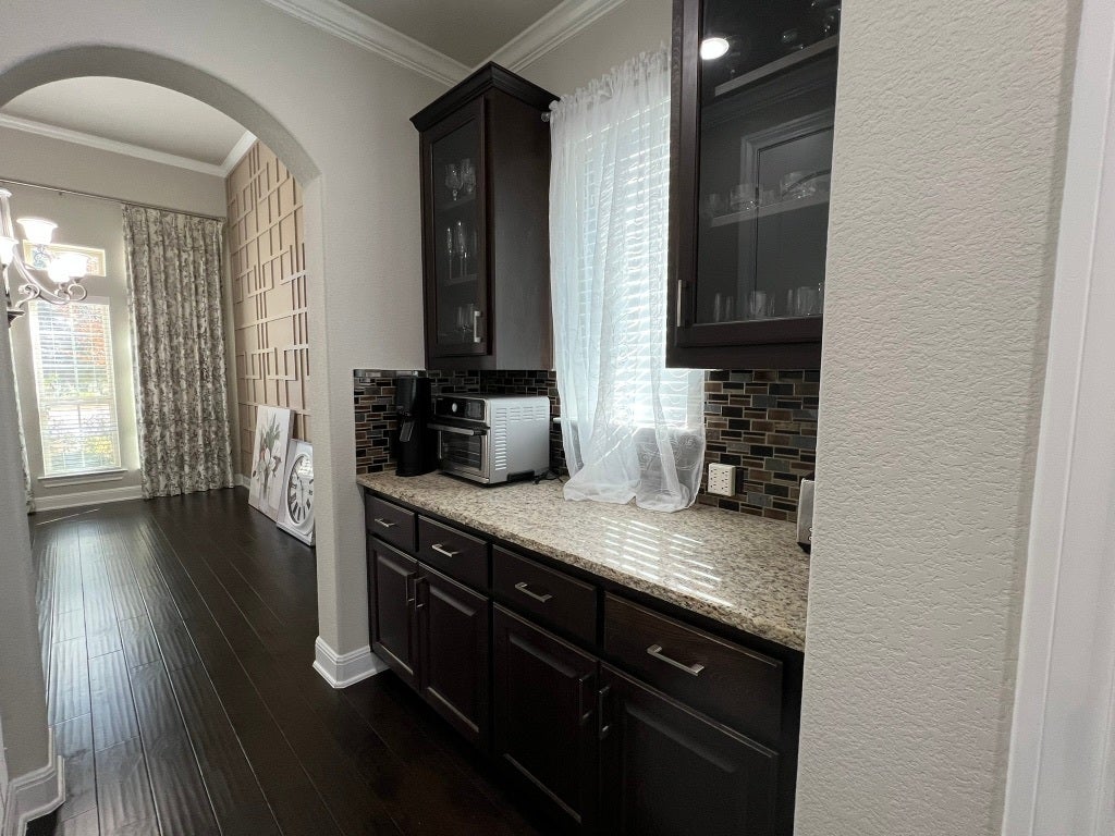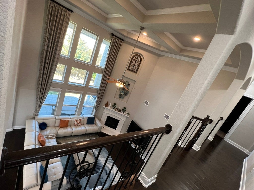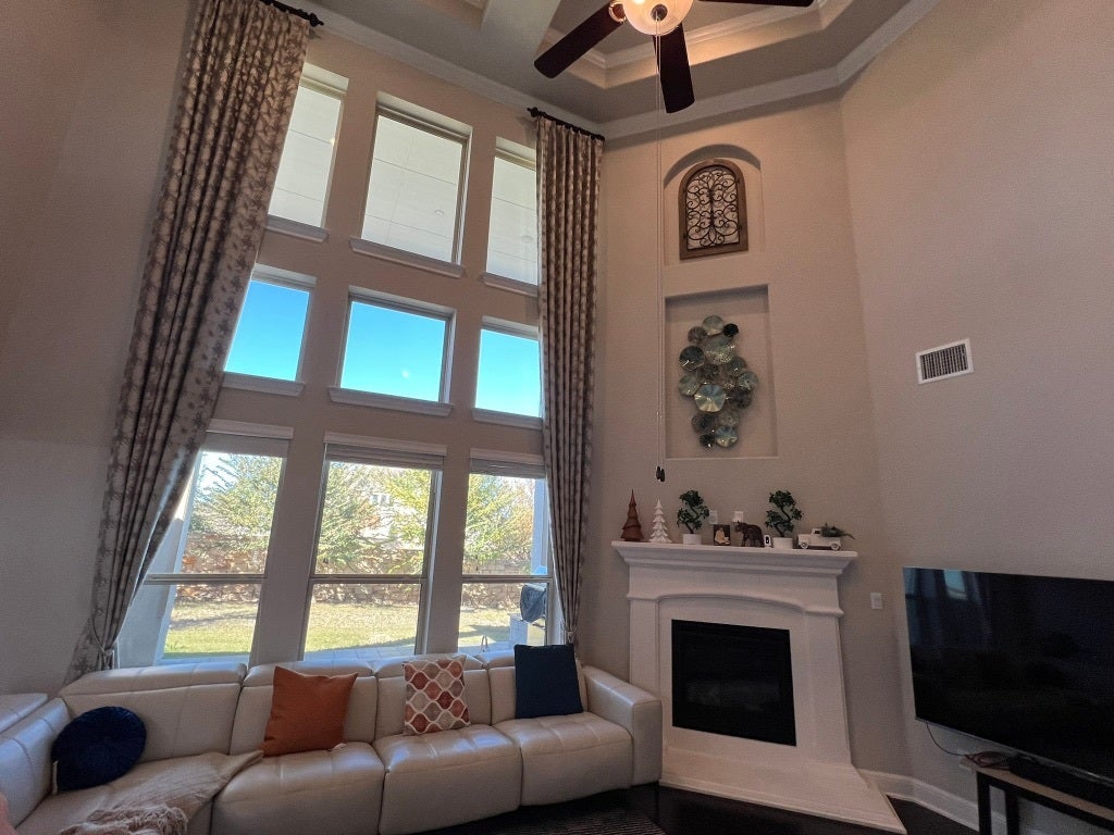 Meticulously crafted with exceptional attention to detail, this beautiful residence offers an elevated living experience where elegance meets everyday comfort. From the moment you enter the grand foyer, soaring ceilings create a sense of openness and architectural impact. Designer accent walls throughout the home add sophistication and personality, enhancing the modern aesthetic while providing the perfect backdrop for your décor. The expansive open floor plan seamlessly connects the main living areas, making the home ideal for both daily living and hosting unforgettable gatherings. A dedicated, light-filled office offers a quiet and inspiring space for remote work or study. The spacious game room serves as a central hub for entertainment and relaxation, while the private media room delivers an immersive cinematic experience, perfect for movie nights and game-day events. Formal dining is elevated in the elegant dining area, thoughtfully designed for hosting family celebrations and special occasions. At the heart of the home, the gourmet kitchen impresses with high-end appliances, abundant cabinetry, premium finishes, and a large center island with seating—combining beauty, functionality, and convenience for the modern lifestyle. Step outside to a meticulously landscaped backyard that extends the living space outdoors. The covered patio provides a serene setting for morning coffee, evening gatherings, or quiet relaxation. An automatic patio shade adds comfort and versatility, while custom-made curtains throughout the home enhance style and privacy. Additional upgrades include epoxy-coated garage flooring and overhead storage, offering durability and organization. Furniture is negotiable. Ideally located in Leander with easy access to top-rated schools, shopping, dining, and major roadways, this home offers refined living, thoughtful design, and exceptional value. Motivated seller. Seller is a licensed real estate agent.