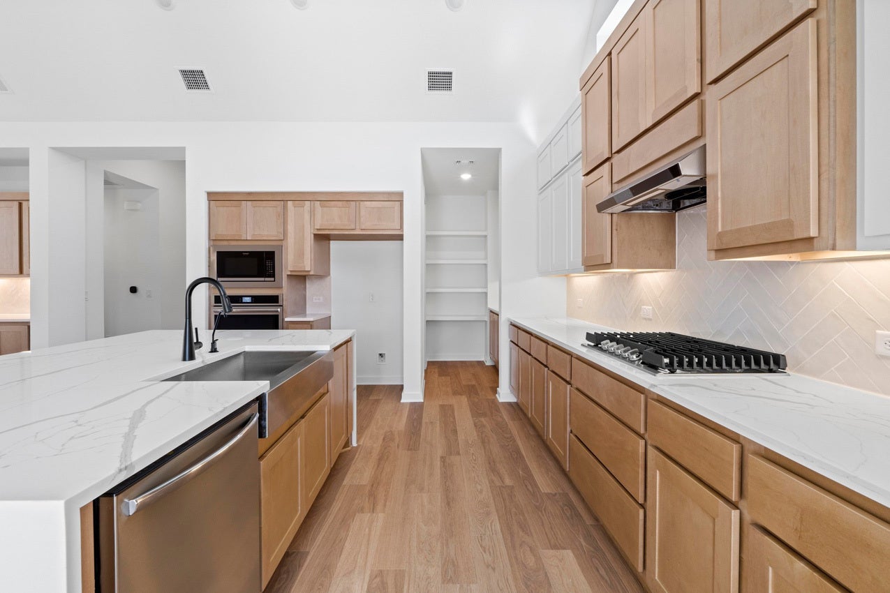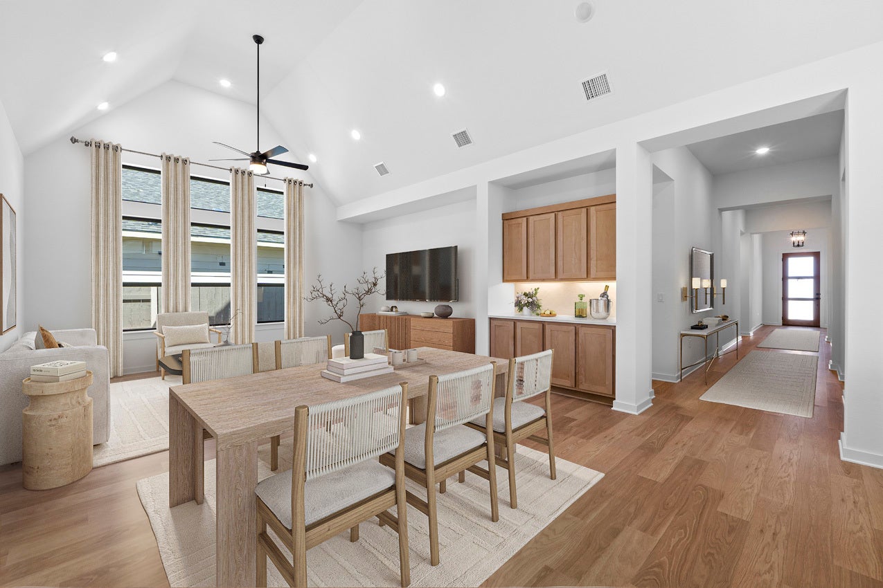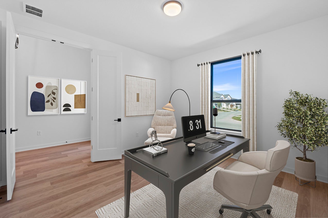 This 2,546-square-foot home offers a perfect blend of modern living and functionality, featuring 4 bedrooms and 4 bathrooms. Upon entering, you are welcomed by a spacious entryway that leads you to the heart of the home. The open concept layout seamlessly connects the living, dining, and kitchen areas, creating an idea space for both entertaining and everyday life. The primary suite is thoughtfully situated at the back of the home, providing a private retreat complete with a luxurious ensuite bathroom. At the front of the home, a dedicated study offers a quiet and focused space for work or relaxation. Additional features include a two-car garage that provides ample storage and convenience. This home was designed to cater to contemporary lifestyle, offering both style and practicality in every detail. Optional upgrades include- -Custom Enhanced Pantry - Extended outdoor living - Extended primary suite - Freestanding tub with shower in primary bath - Built in hutch in dining room - Built in cabinets in family room - Bath ILO storage