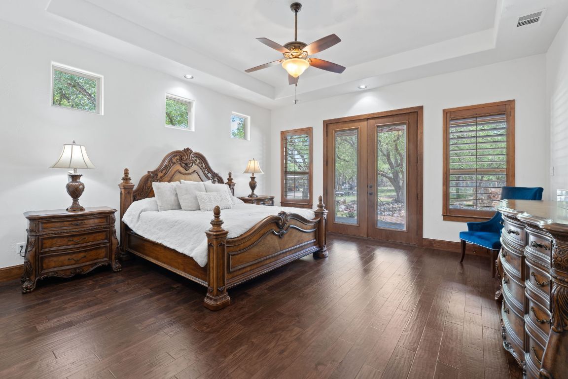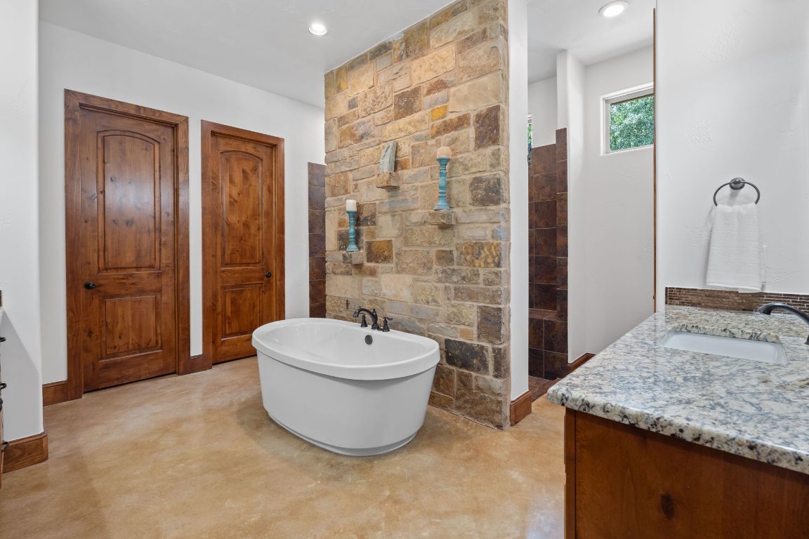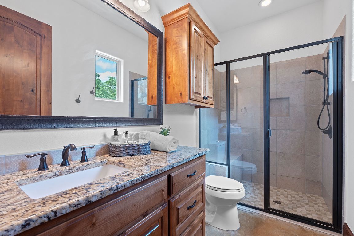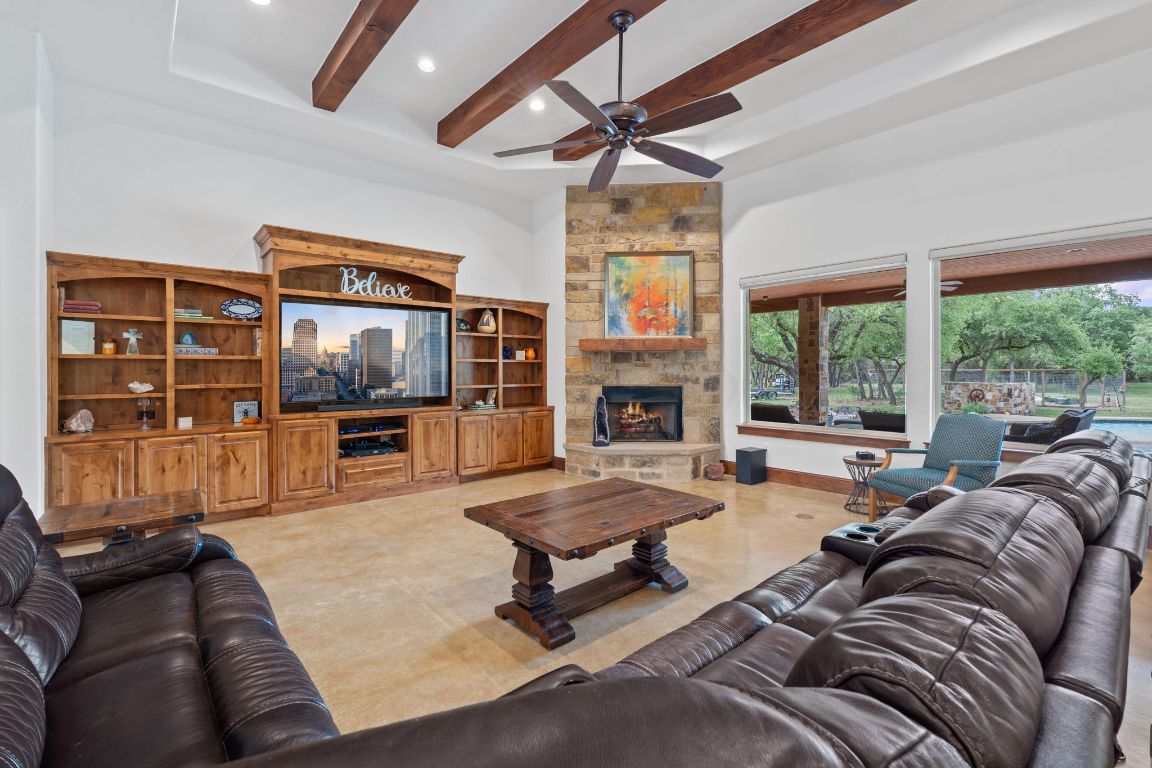 Stunning 4,043 sq ft single story custom home on 5 private acres in Georgetown, with an optional additional 8-acre tract available—perfect for maintaining a wildlife exemption. This thoughtfully designed 3 bedroom, 4 bath property has a separate game room with wet bar and a study that includes beautiful built-in cabinetry. Custom features throughout include whole-home foam insulation, stained concrete floors, wood floors in the master suite, and custom knotty alder doors and cabinetry. The spacious kitchen showcases a large island and an oversized gas cooktop, double ovens, and reverse osmosis system. Plantation shutters, remote control roller shades, and designer finishes add luxury touches throughout. Enjoy year-round entertaining with a massive covered patio (1,100+ sq ft), outdoor kitchen, fire pit, and gas fireplace, all overlooking the saltwater pool. The home is prewired for audio in the family room, outdoor patio, pool area, kitchen, and media room. Security and efficiency are top-notch with CCTV cameras, monitored alarm system, water softener, and two tankless propane water heaters. The oversized 2-car garage features epoxy floors and a storage/workshop area, and a long concrete drive with room to park 8+ vehicles. Bonus shop building includes bathroom, foam insulation, 3 roll-up doors, and RV electrical hookup. Additional highlights: chicken coop, raised garden beds with irrigation, automatic sprinkler system, and each guest bedroom has a private en-suite bath. No HOA allows for hassle free living in one of the most desirable areas in Georgetown.