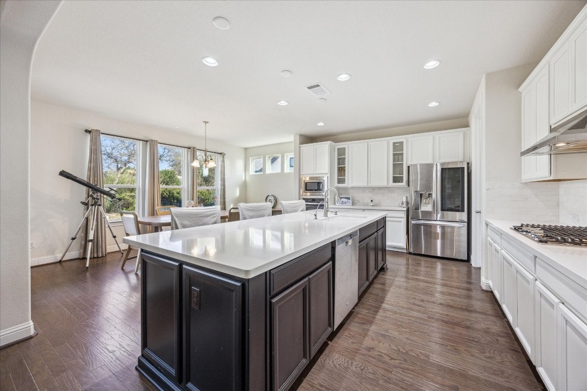 Nestled in the rolling hills of Spicewood, this 4-bedroom home offers a peaceful retreat in the highly sought-after Lake Travis ISD. Backing to a lush greenbelt, it provides privacy and a scenic backdrop, while still being minutes from Lake Travis, shopping, and dining. Built with longevity in mind, the home features a clay tile roof, an oversized garage, and an open floor plan designed for comfortable living. The kitchen, with its granite countertops and spacious island, is perfect for gathering, while large windows fill the home with natural light. The primary suite offers a private escape with a walk-in closet and spa-like bath. A prime location and the charm of Hill Country living, this home is ready to welcome its next owners.