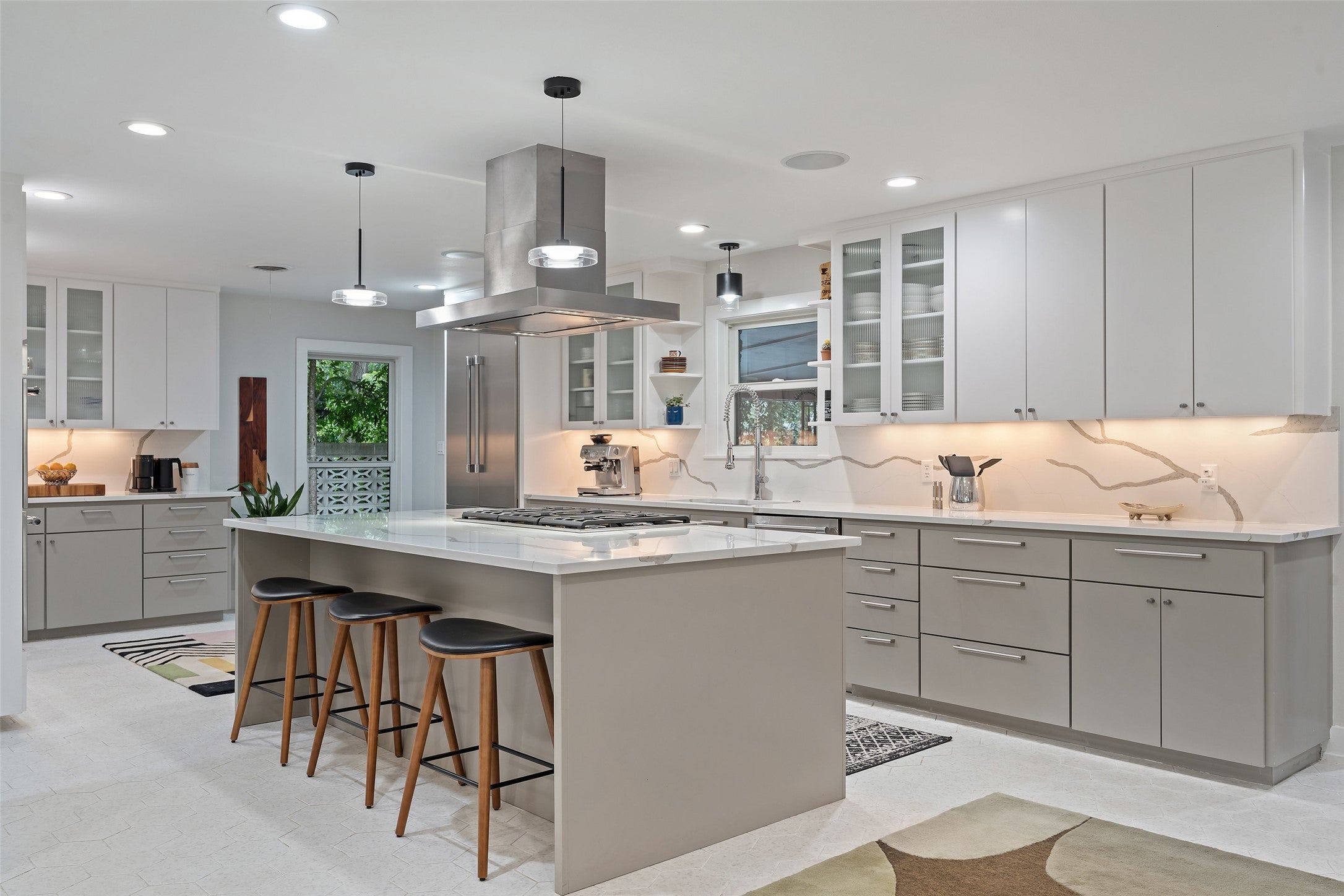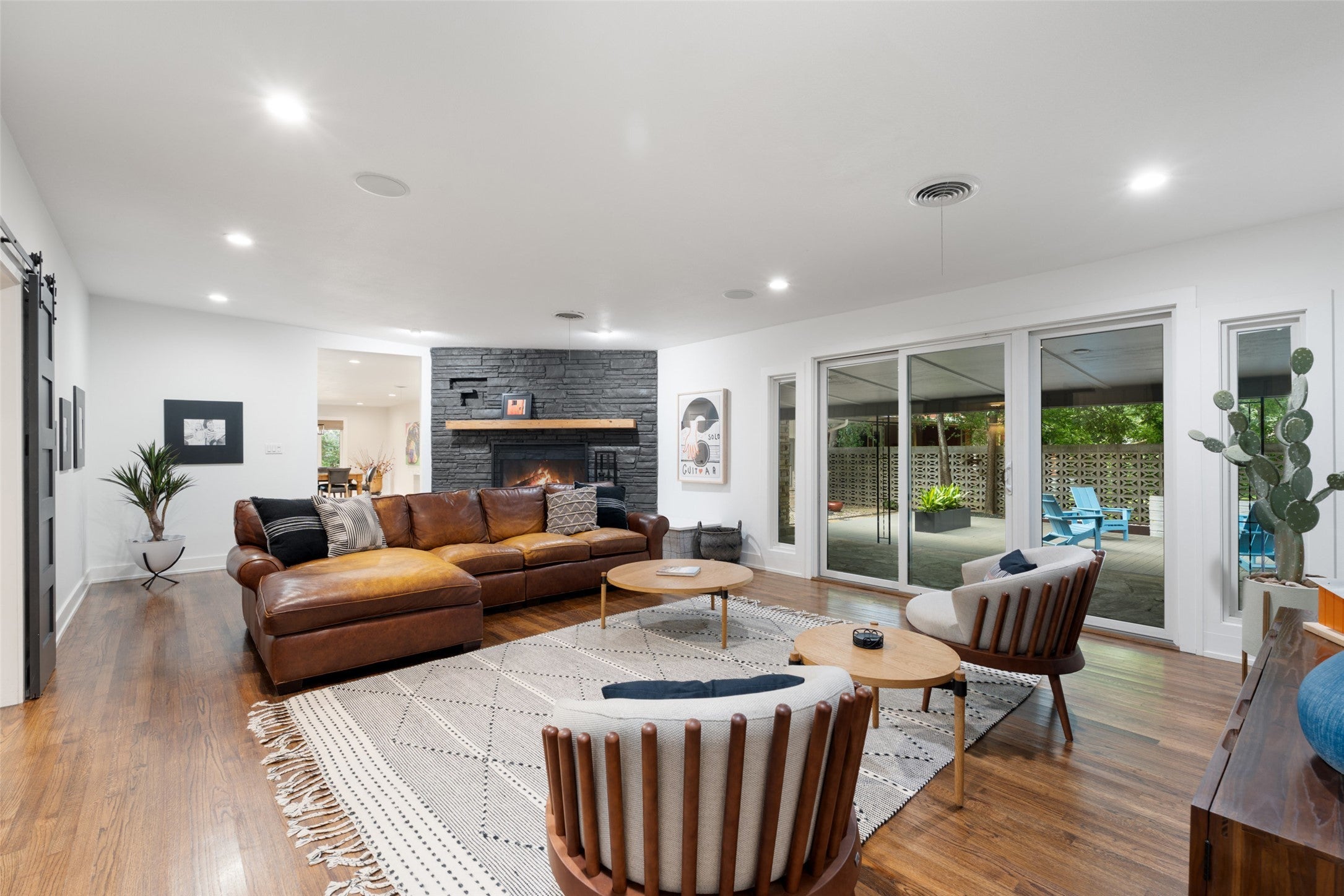 Iconic Mid-Century Modern architecture meets the heart of Old Town Georgetown. Situated on one of the area’s most coveted streets, this 1960s gem perfectly preserves its original soul—clean architectural lines, authentic bathroom tile, and a striking large-scale stacked stone fireplace—while offering the modern updates today’s lifestyle demands. The expansive .4-acre lot is an entertainer’s dream, featuring a covered patio, breeze-block accents, and a deck with tranquil water fountains. BONUS SPACE: A detached 468 sq. ft. studio (not included in primary sq. ft.) equipped with electricity offers endless potential as a high-end home office, art studio, or poolside retreat. All this, just 6 blocks from the "Most Beautiful Town Square in Texas."