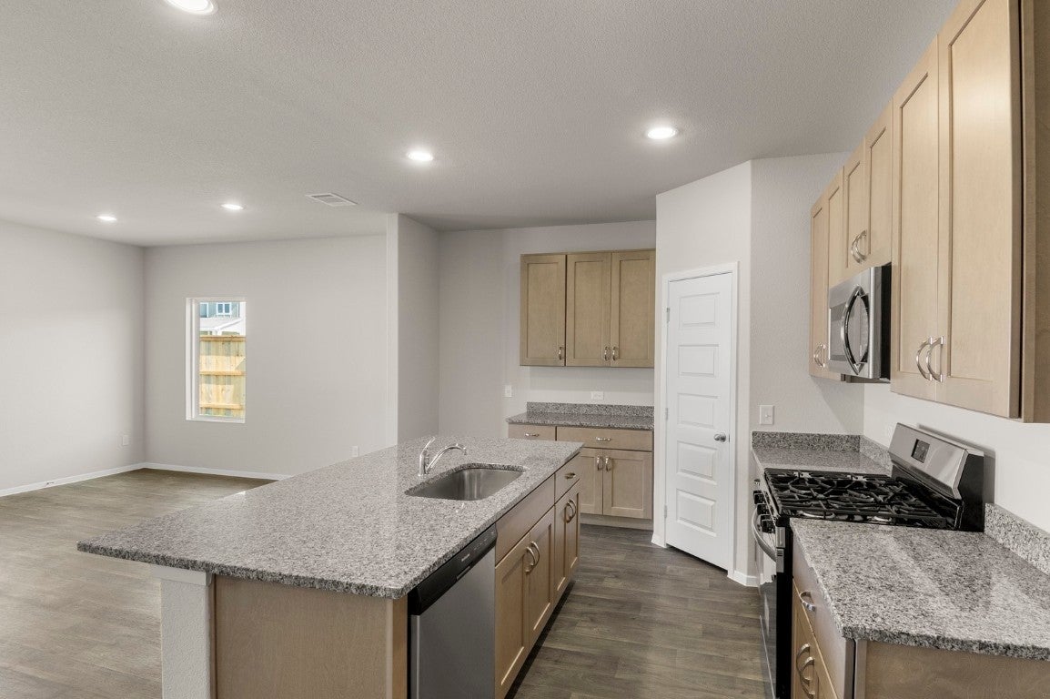 MLS# 6815953 - Built by Brohn Homes - Ready Now! ~ Welcome to 5416 Murano Drive, located in the luxurious Cloverleaf community. This new construction home brings warmth and charm with interior finishes such as wood-look vinyl flooring and carpet, light brown shaker-style cabinets with nickel hardware, and raised bathroom vanities with Silestone countertops. As you walk into the kitchen, you'll see plenty of room to store, prep, cook, and eat with durable 3cm granite countertops, 42-inch cabinet uppers, a center island, a corner pantry, and upgraded stainless steel appliances. Retire to the primary suite, where a walk-in shower, walk-in closet, dual vanity, and semi-private water closet make relaxing easy. Enjoy the Cloverleaf community in Austin, just minutes away from downtown and IH-35. The premium community is ideal for an active lifestyle, with nearby experiences such as hiking trails, golf, swimming in Barton Springs, shopping on South Congress, or indulging in the local cuisine!