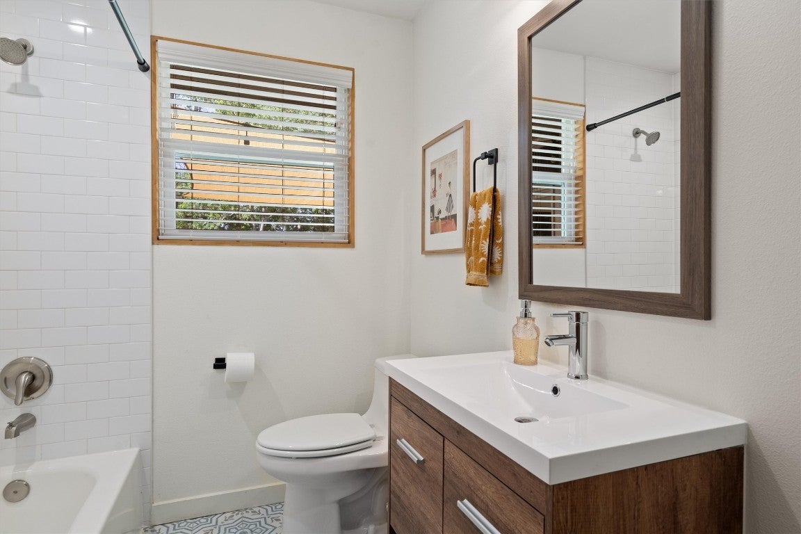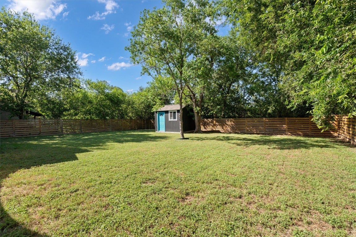 Discover modern charm and true East Austin character at 5610 Northdale Drive. This updated single-story home stands out from the typical cookie-cutter layout, offering style, personality, privacy, and a spacious corner lot—all with no HOA restrictions. Step inside to a bright, open-concept floor plan featuring soaring ceilings, abundant natural light, and brand-new luxury vinyl plank flooring (installed 7/2025). The living room centers around a painted white stone fireplace, complete with custom built-ins and bench seating, creating an inviting space for relaxing or entertaining. The modern kitchen is beautifully equipped with quartz countertops, painted cabinetry with pull-out drawers, a designer tile backsplash, stainless steel appliances, a breakfast bar, and playful accent wallpaper. It’s the perfect blend of functionality and style. The primary suite offers a peaceful retreat with a walk-in closet and a spa-inspired ensuite bathroom, including a rainfall shower. Two additional bedrooms provide flexibility for guest space, a home office, or hobby room. Out back, enjoy a private, tree-shaded yard with no rear neighbors. The expansive lot offers endless possibilities—add a pool, start a garden, or create your dream outdoor entertaining area. A bonus storage shed adds extra convenience for tools and gear. Located in high-demand East Austin, you’re just minutes from East Austin College Prep, major highways, the airport, downtown, grocery stores, restaurants, parks, and top employers. If you’re searching for a move-in-ready home with modern updates, unique character, and unbeatable location, 5610 Northdale Drive has it all.
