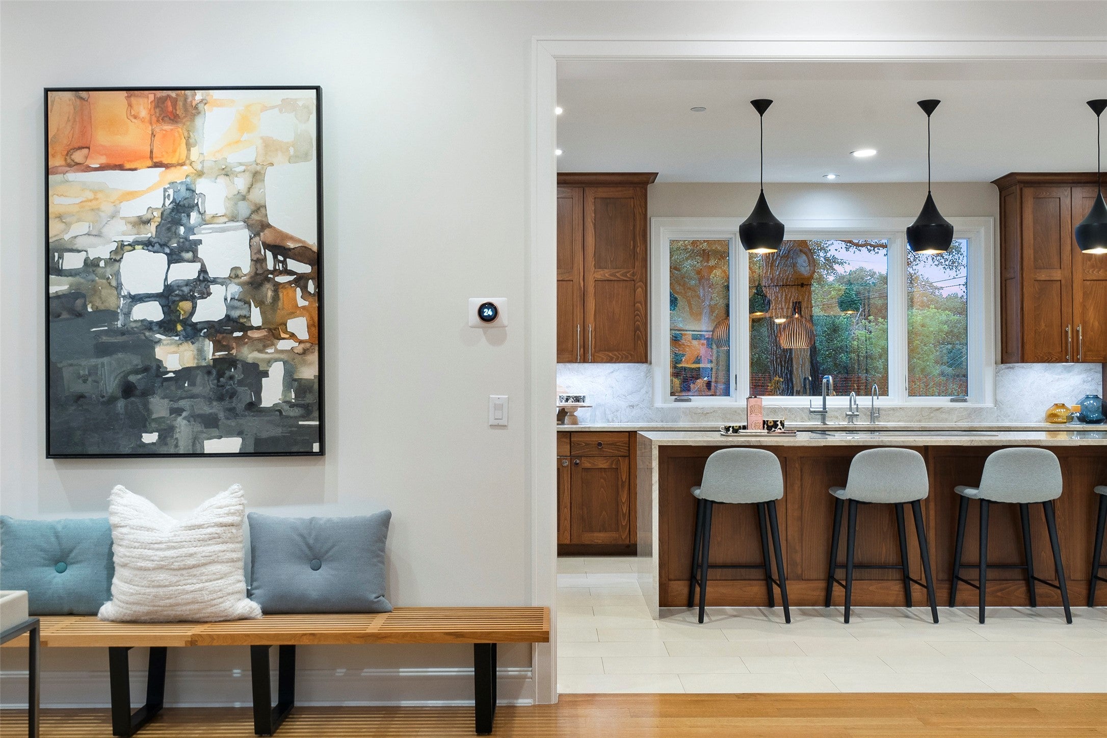 Situated on a wide, oak-lined street in the heart of Rollingwood and within the top-rated Eanes ISD, this stunning, recently updated home offers luxurious living just minutes from downtown Austin. Designed with large families in mind, the flexible floor plan features 5 spacious bedrooms with en-suite baths, plus a study and den—which could function as a 6th bedroom—both with sweeping views of the downtown skyline. The main living area is anchored by a fully remodeled chef’s kitchen, equipped with an impressive Miele appliance suite that includes a steam oven, built-in coffee maker, wine refrigerators, and two full-size Miele refrigerators with freezers. Just off the kitchen, the formal living room features a striking contemporary marble fireplace, while the open dining area is accented by modern Scandinavian chandeliers—creating a warm and inviting space ideal for entertaining. The newly remodeled primary suite offers a spa-like bathroom with double vanity, LED mirrors and spacious his-and-her closets. Additional highlights include an elevator, new roof, and fresh interior and exterior paint completed in 2025. A coveted membership to the Western Hills Athletic Club transfers to the buyer at closing, rounding out this exceptional offering in one of Austin’s most desirable neighborhoods.