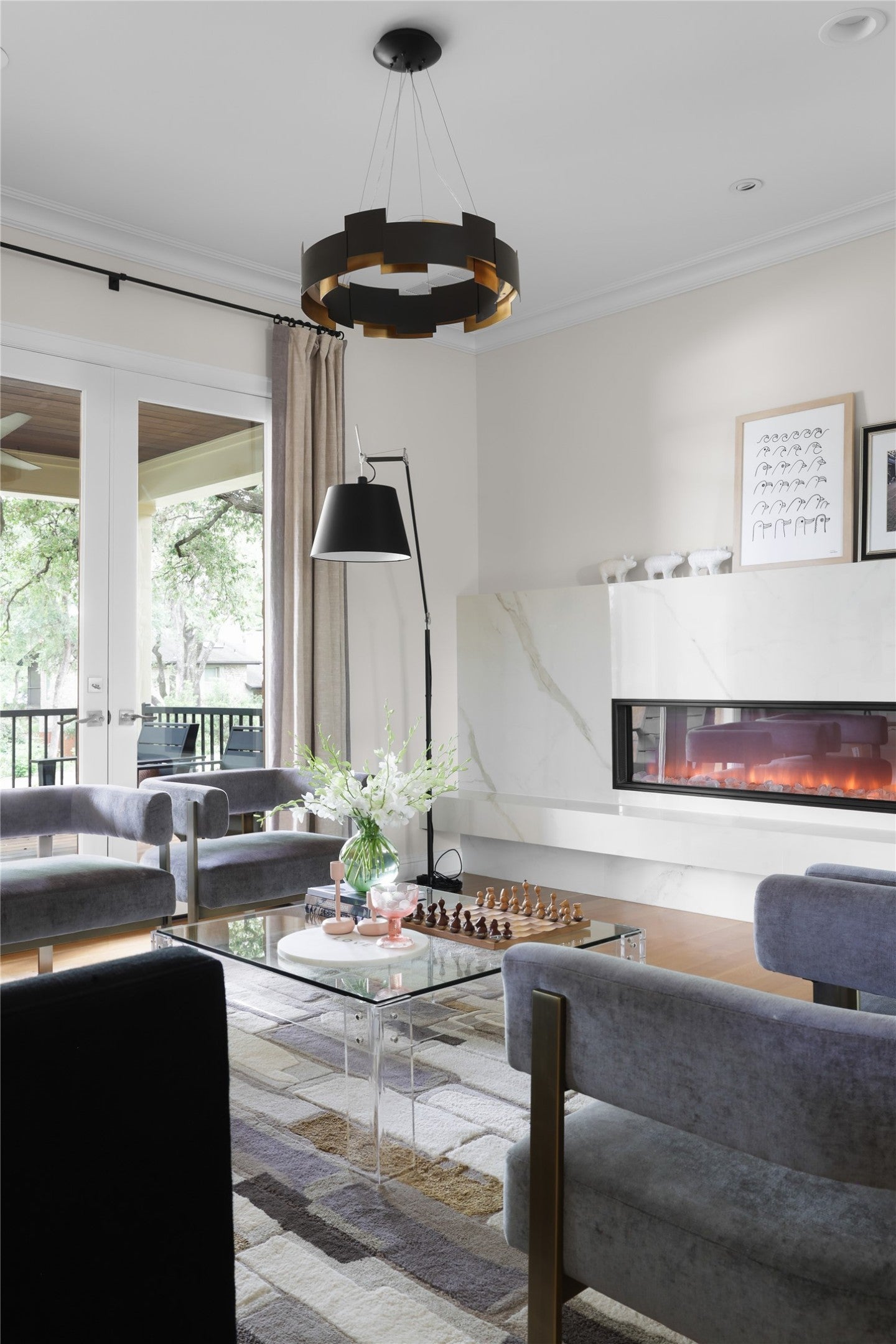 Living Room, Decorative, Electric, Raised Hearth, Ventless